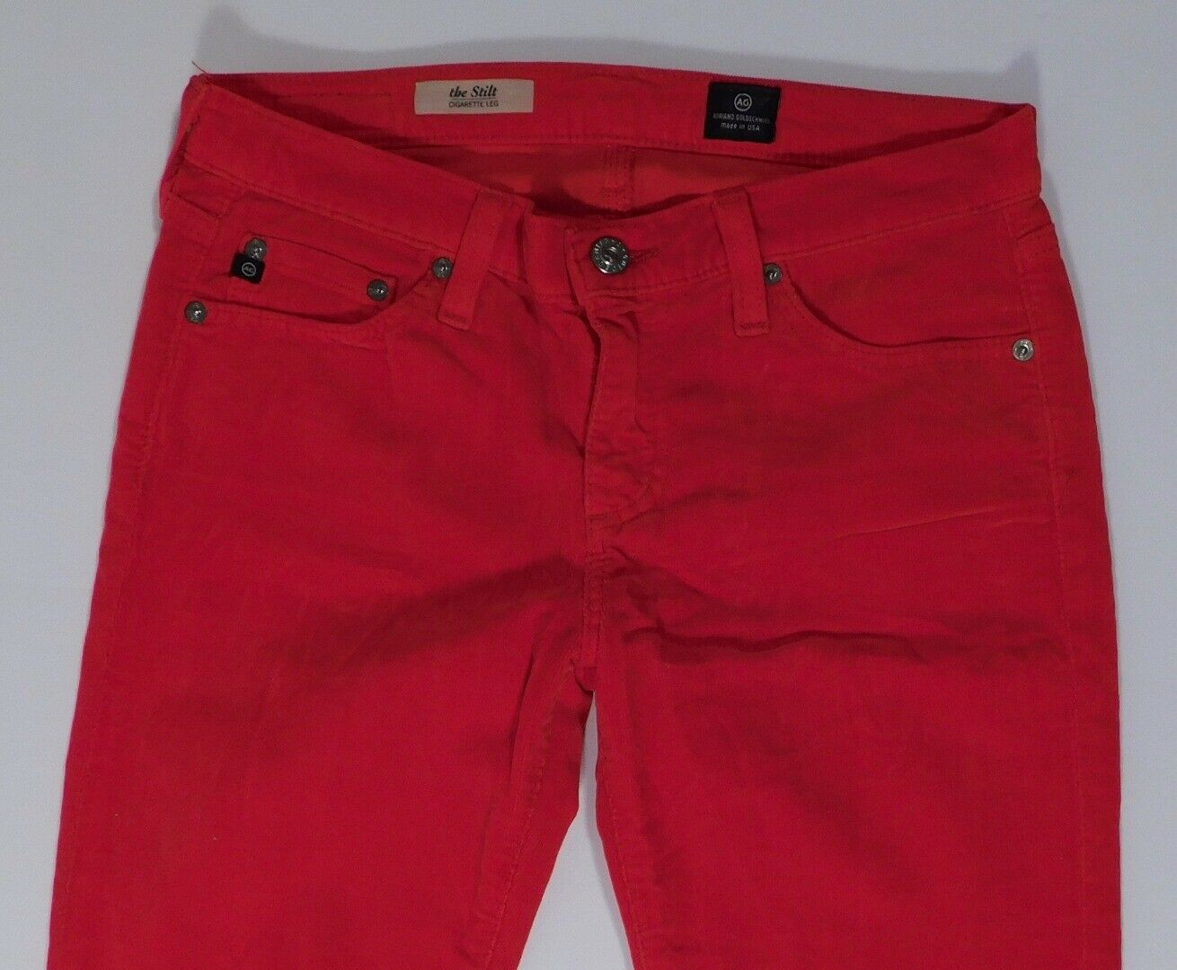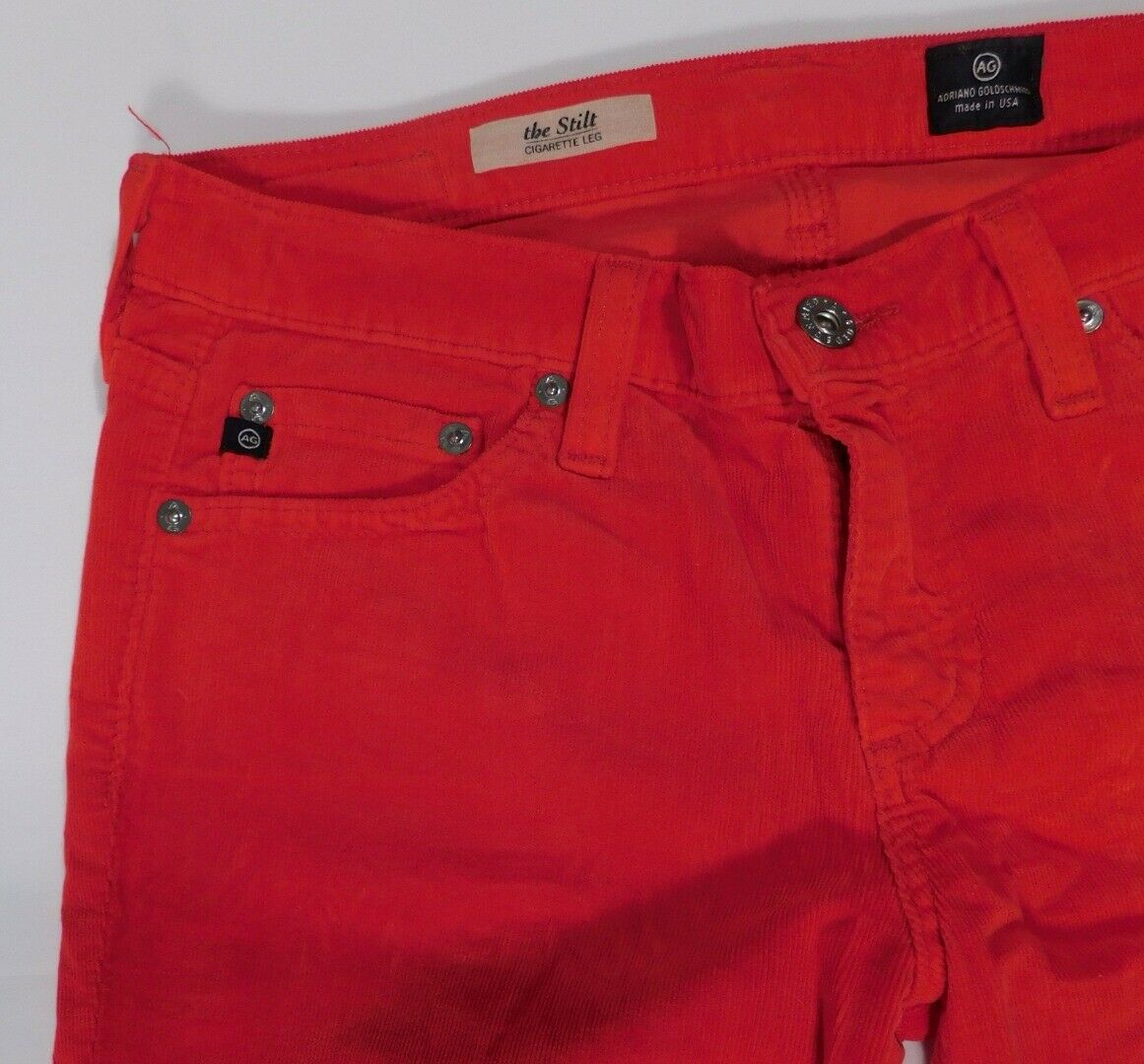 ADRIANO GOLDSCHMIED AG Red Pinwale Corduroy “The Stilt Cigarette Leg” Pant Sz 27R