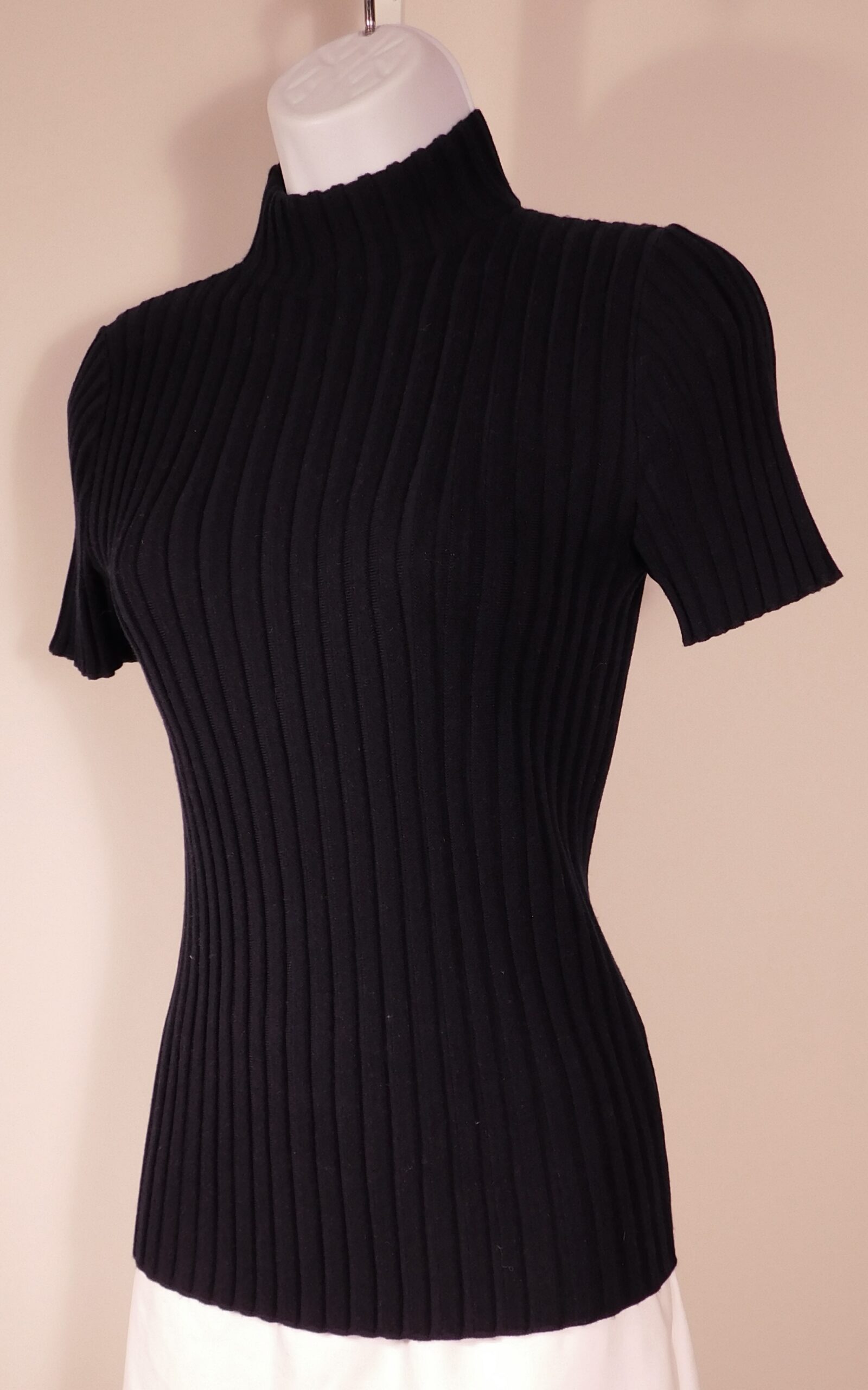 AKRIS PUNTO Women’s Navy Blue Mock-Neck Short-Sleeve Reverse Rib Knit Sweater Sz 6 ($625)