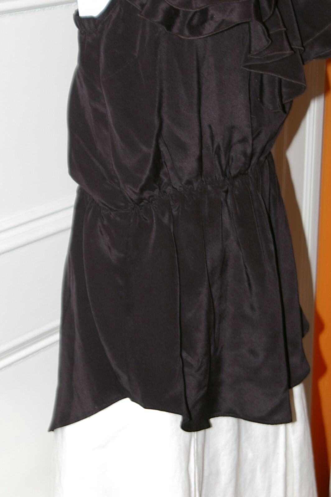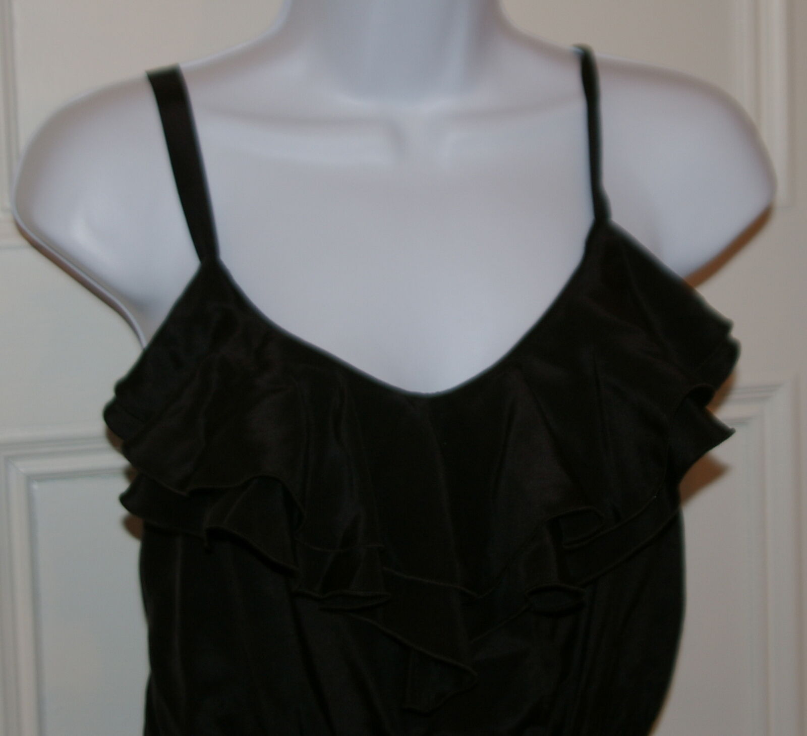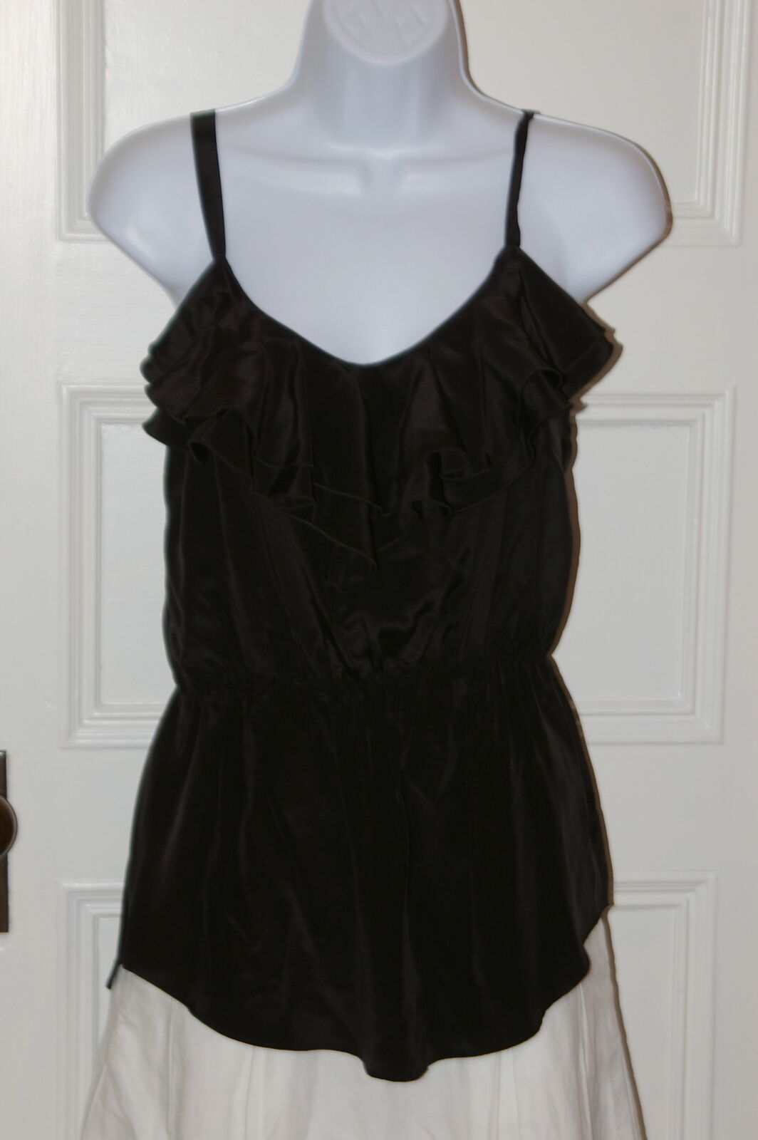 AMANDA UPRICHARD 100% Silk Cami in Black w/ Ruffled Neck & Elastic Waist Sz S