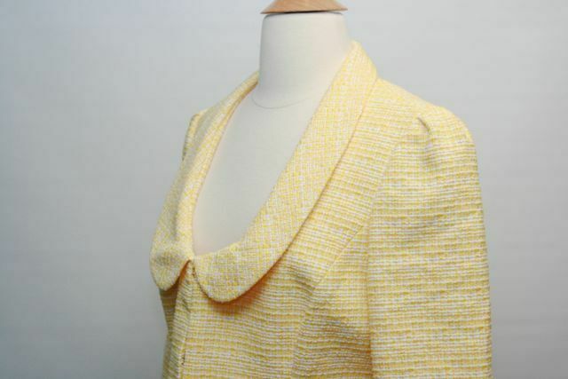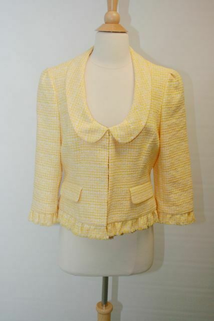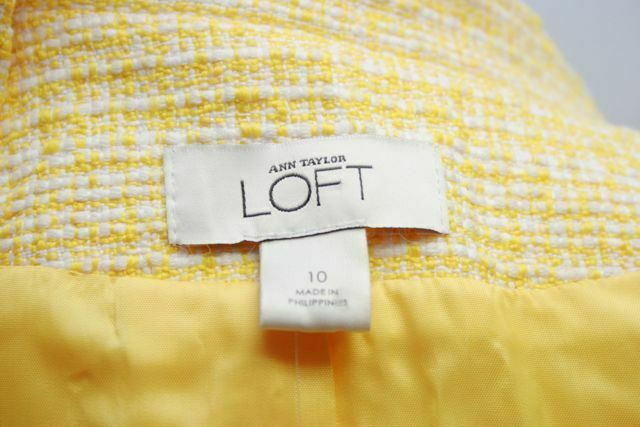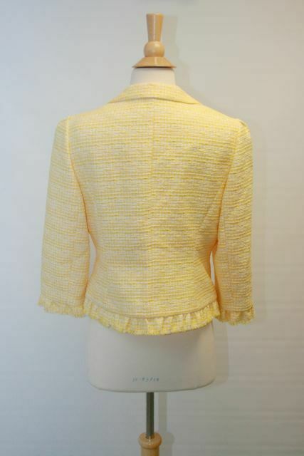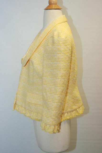ANN TAYLOR LOFT NWT 3/4 Sleeve Cropped Blazer Ruffled Hem/Cuffs Yellow/White Sz 10