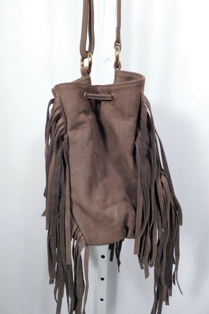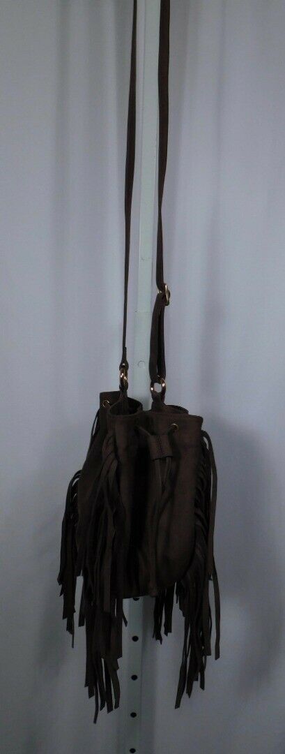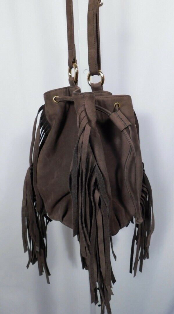 B-LOW THE BELT Brown Suede Fringe Bucket Bag Handbag