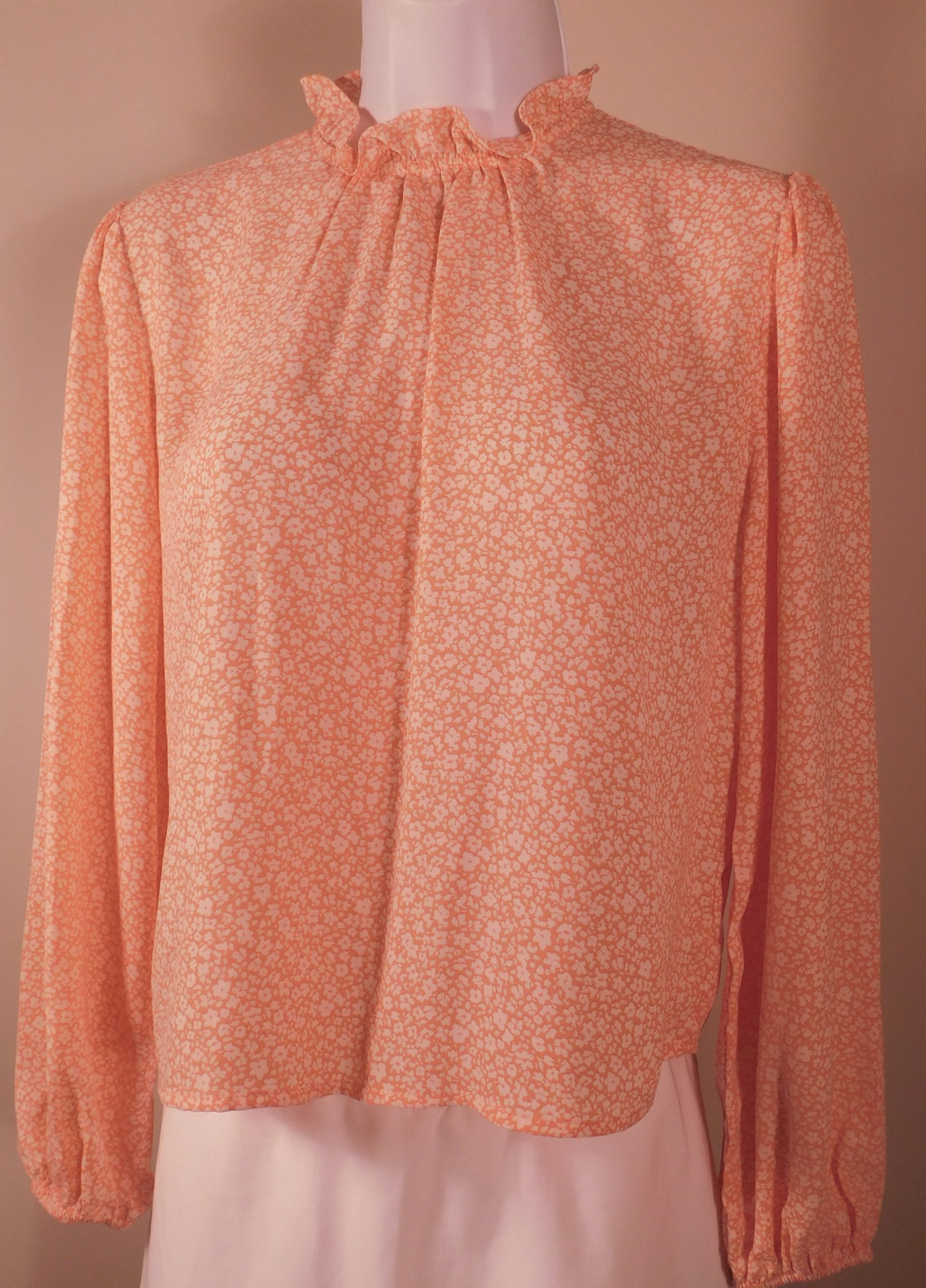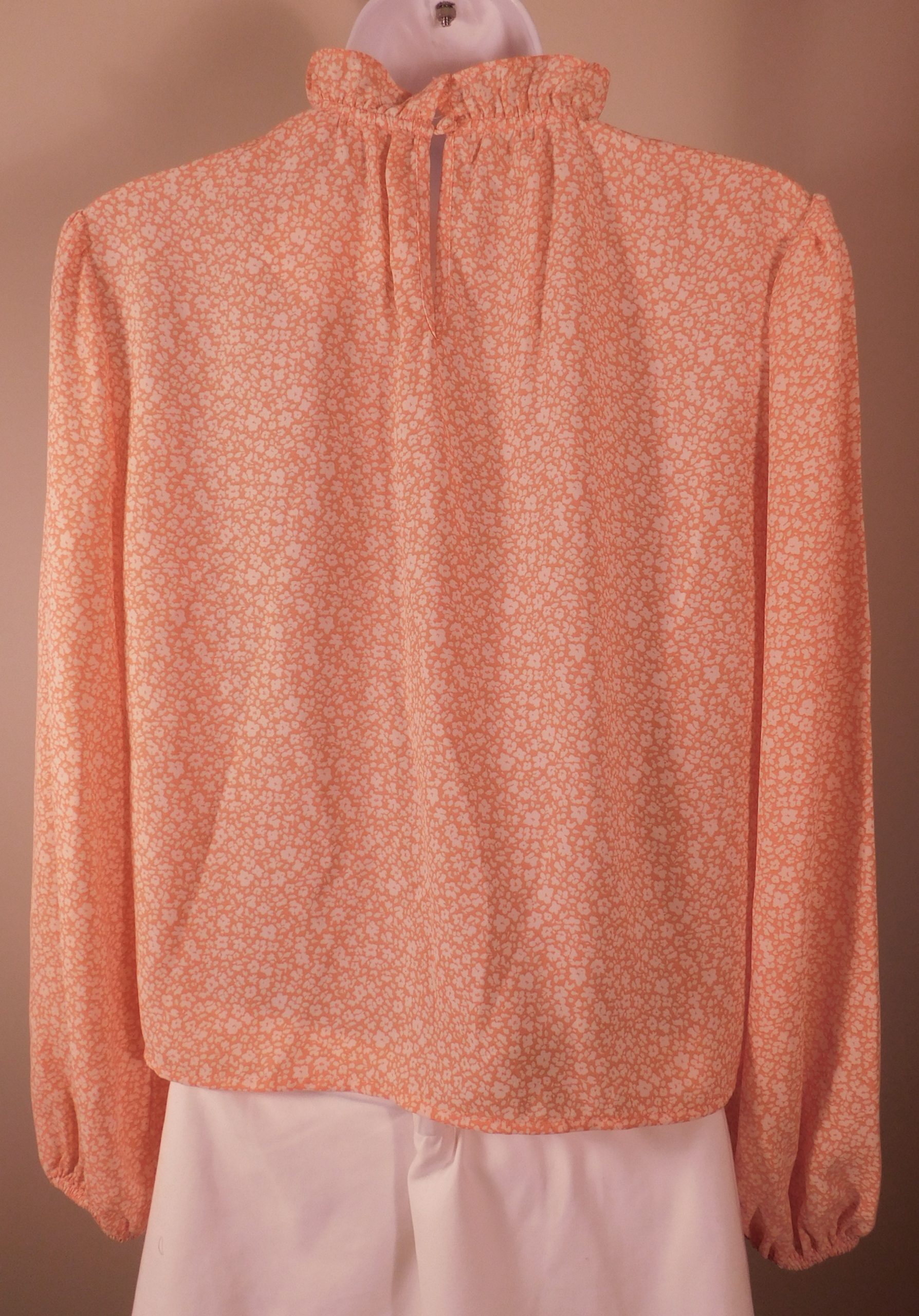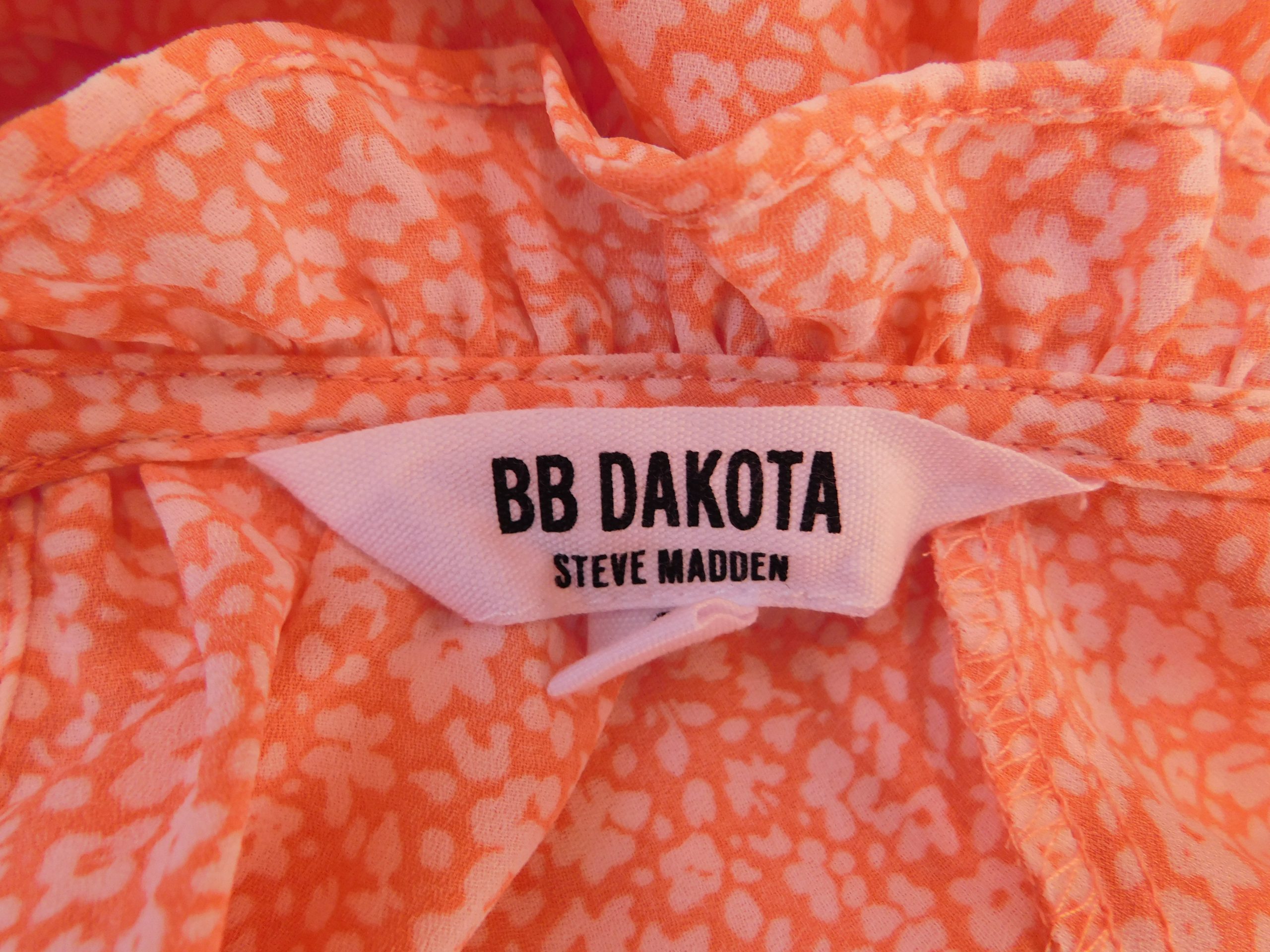 BB DAKOTA STEVE MADDEN Women’s Orange White Floral Long Sleeved Ruffle Neck Blouse Sz S