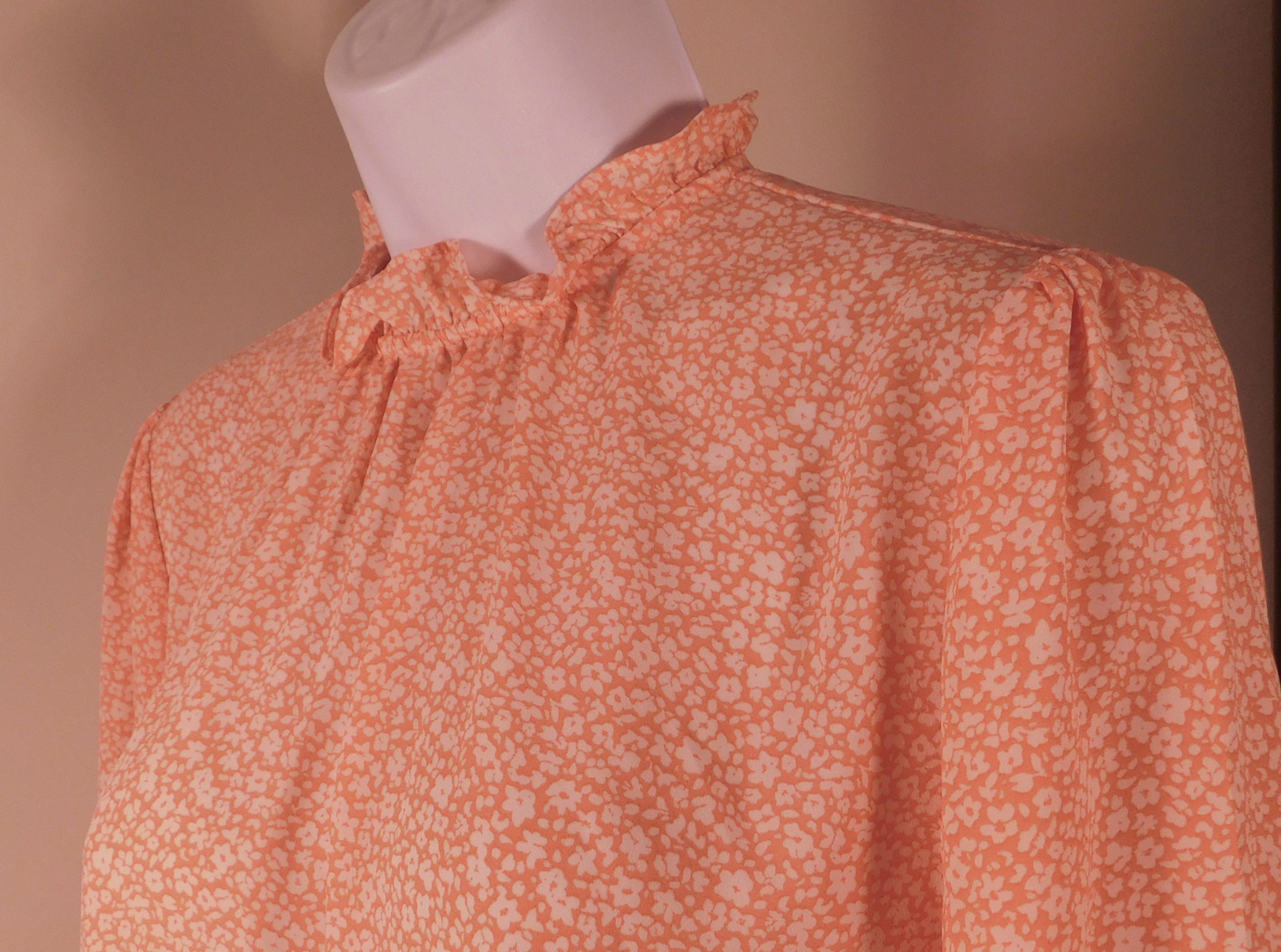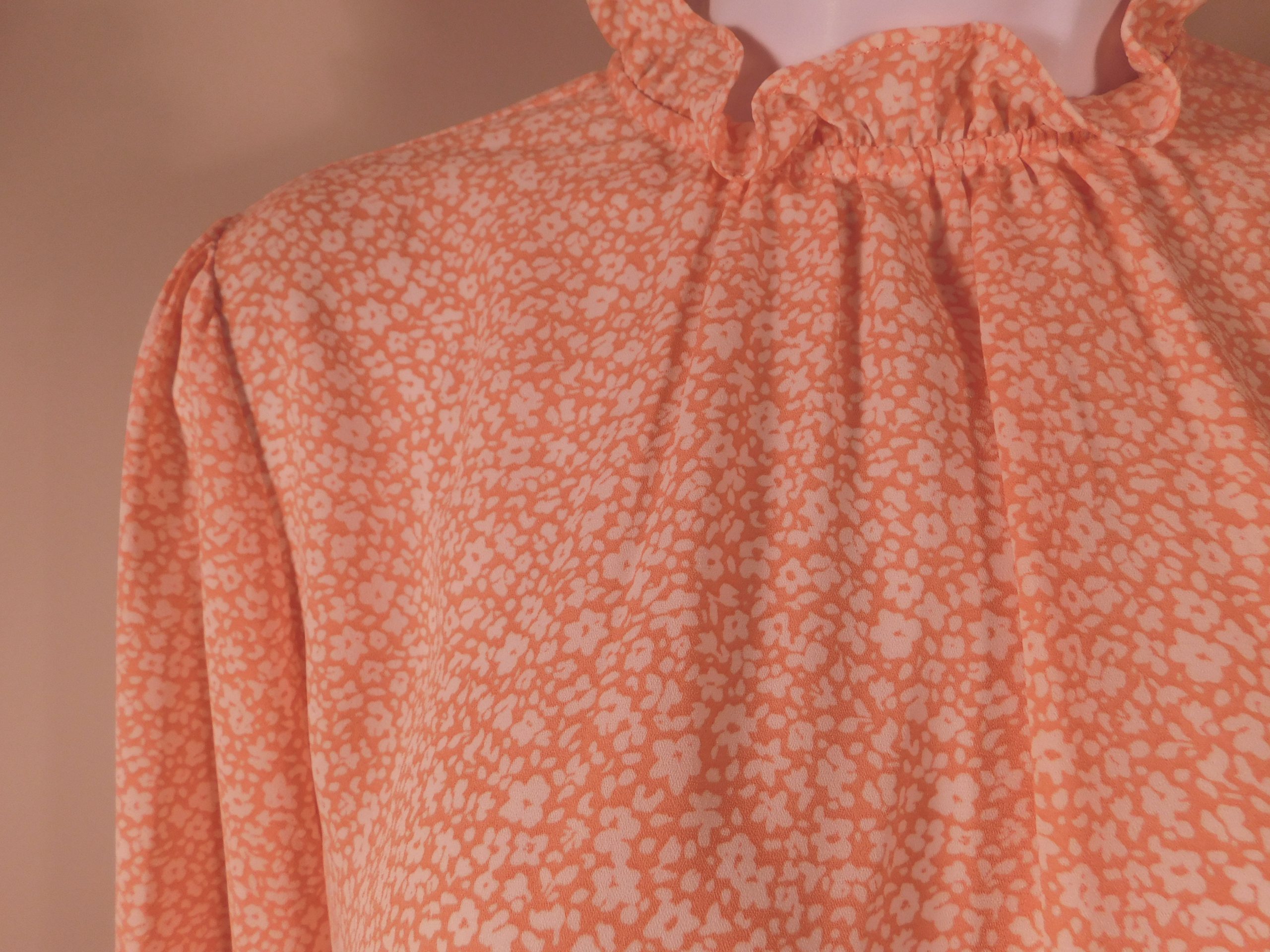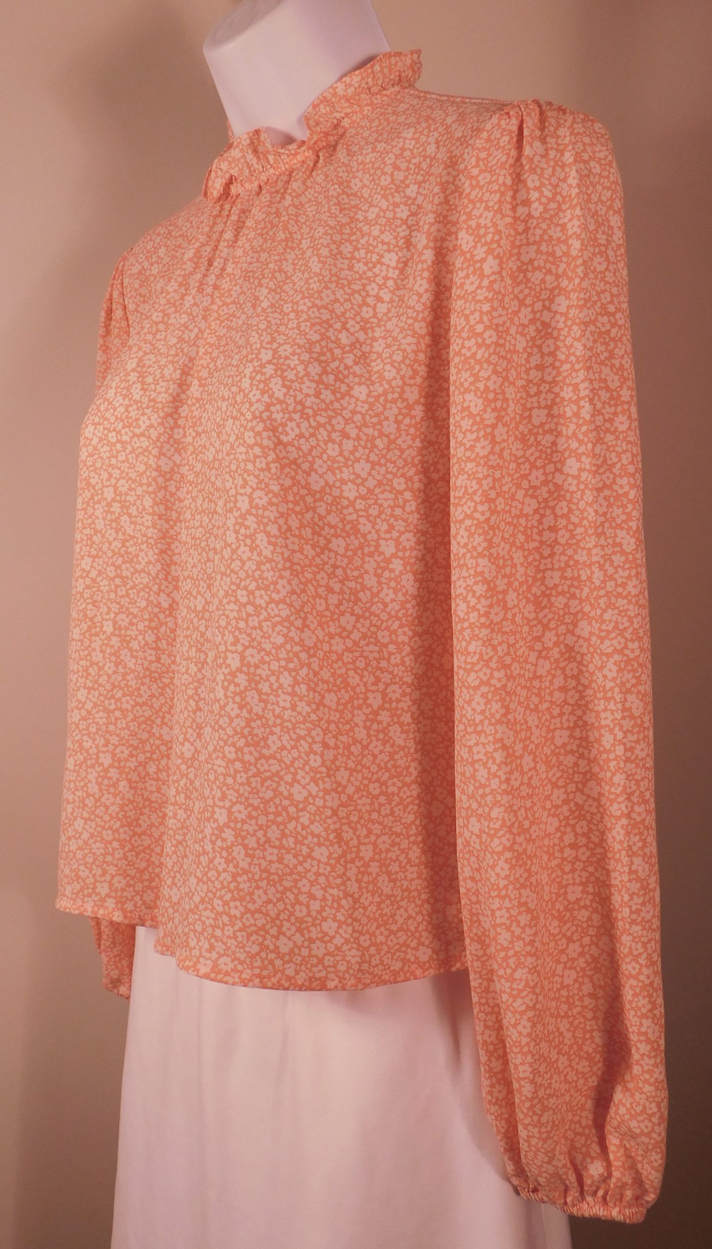 BB DAKOTA STEVE MADDEN Women’s Orange White Floral Long Sleeved Ruffle Neck Blouse Sz S