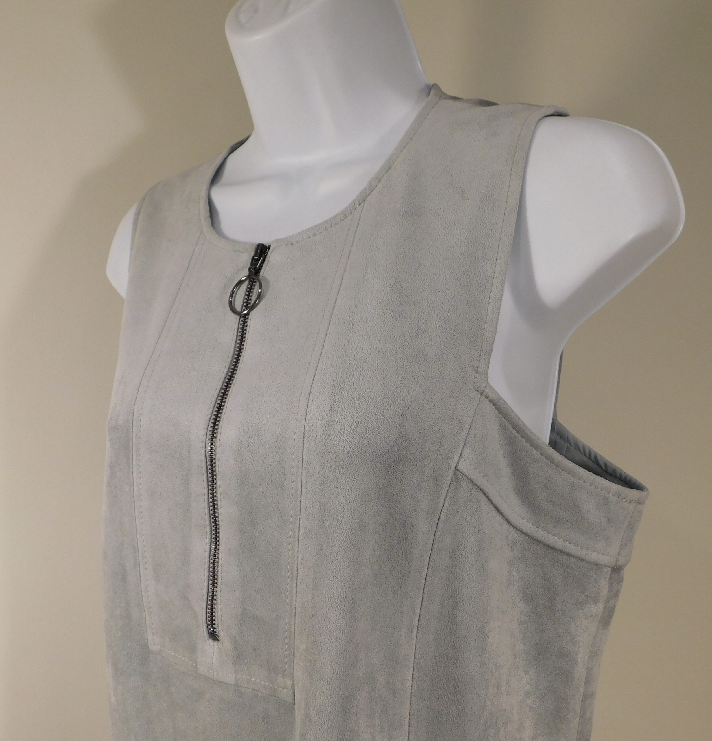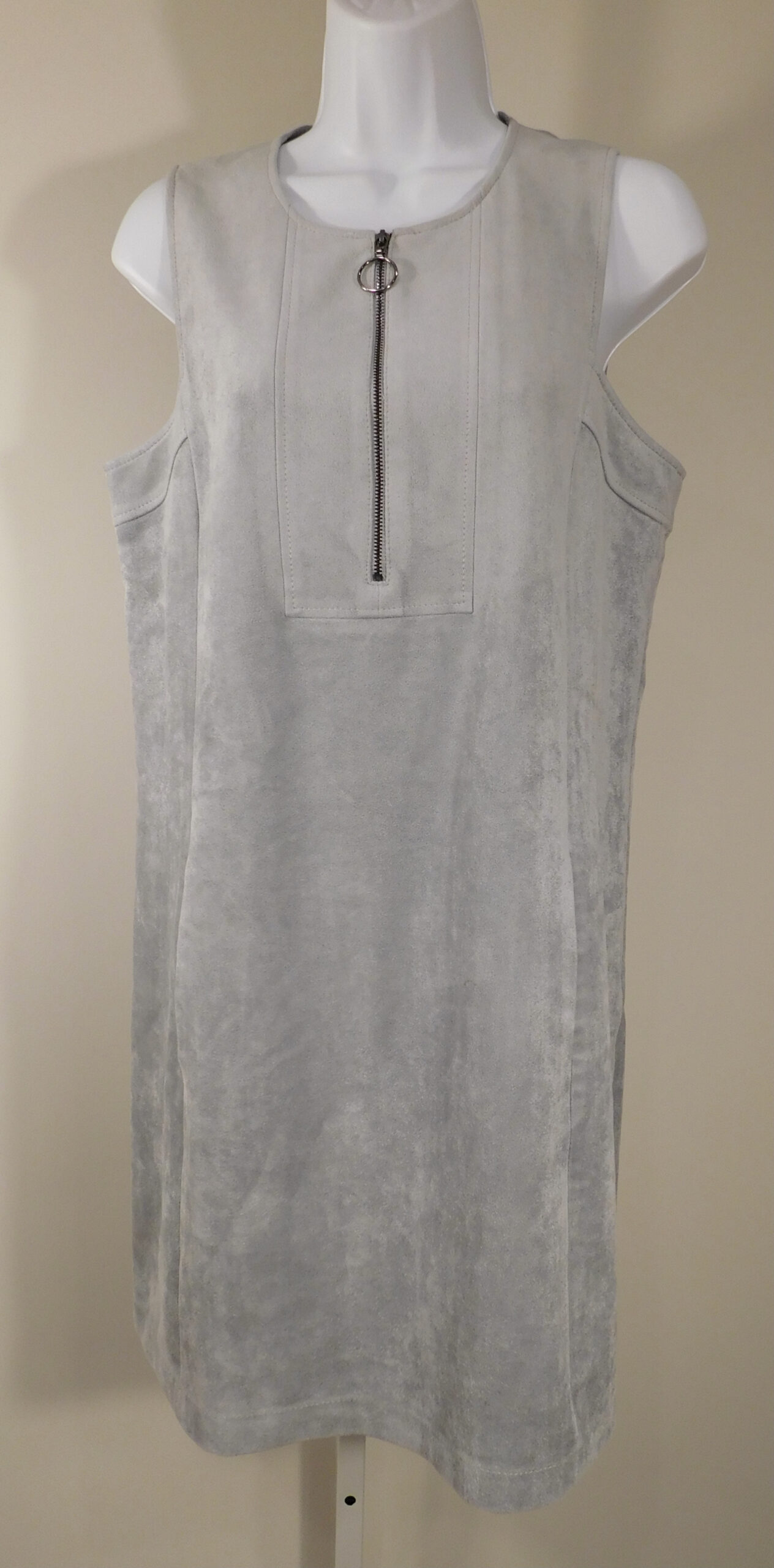 BCBG MAXAZRIA Women’s Gray Faux Suede Sleeveless Scoop-Neck Dress Sz S