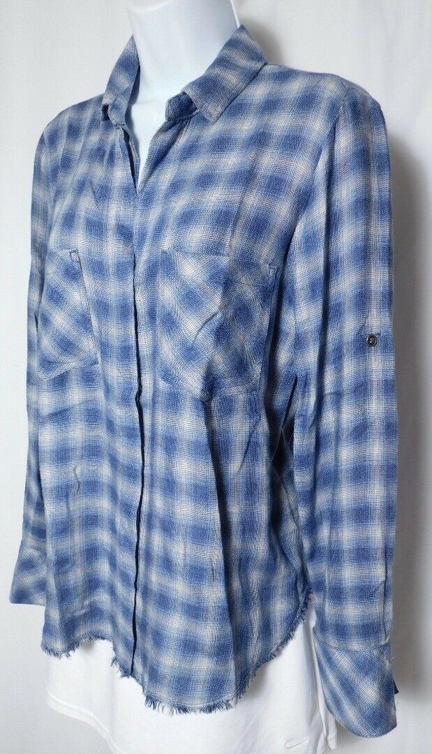 BELLA DAHL Women’s Blue Plaid Raw-Hem Button-Down Shirt Sz S