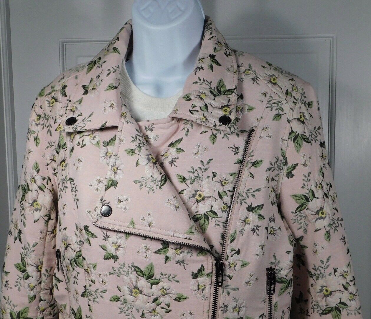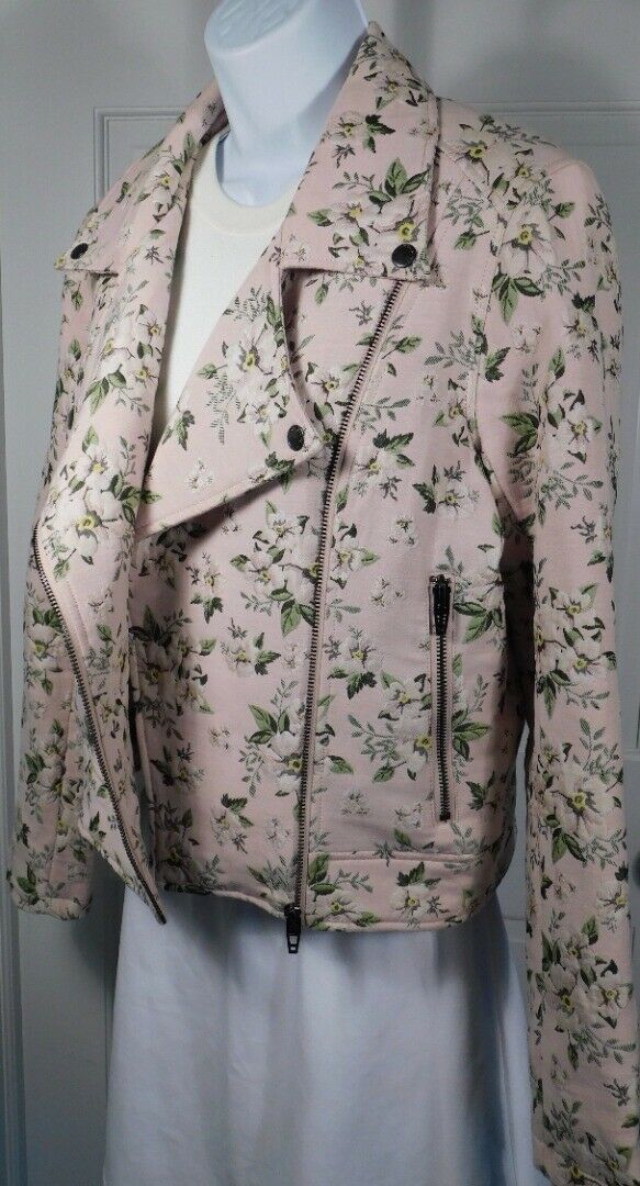 BLANK NYC Women’s Pink Floral Wild Flower Moto Zip Front Jacket Sz M