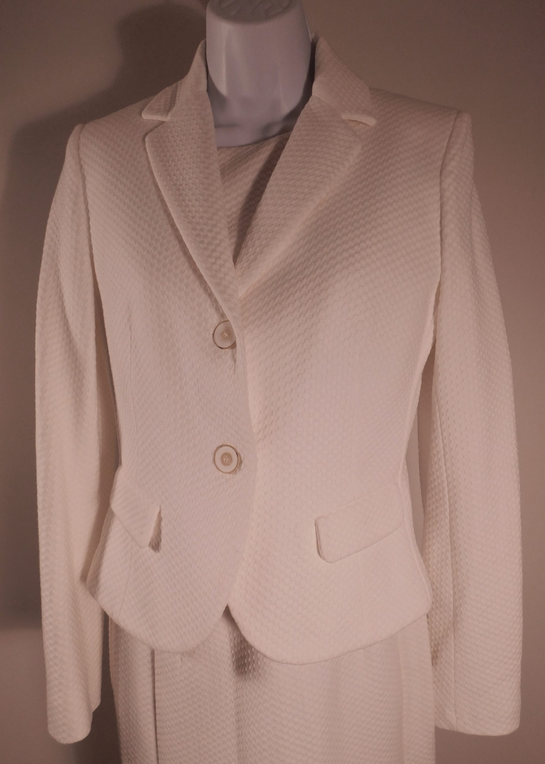 BLUE LES COPAINS Women’s White Cotton Knit Textured 2 Button Blazer Sz 42