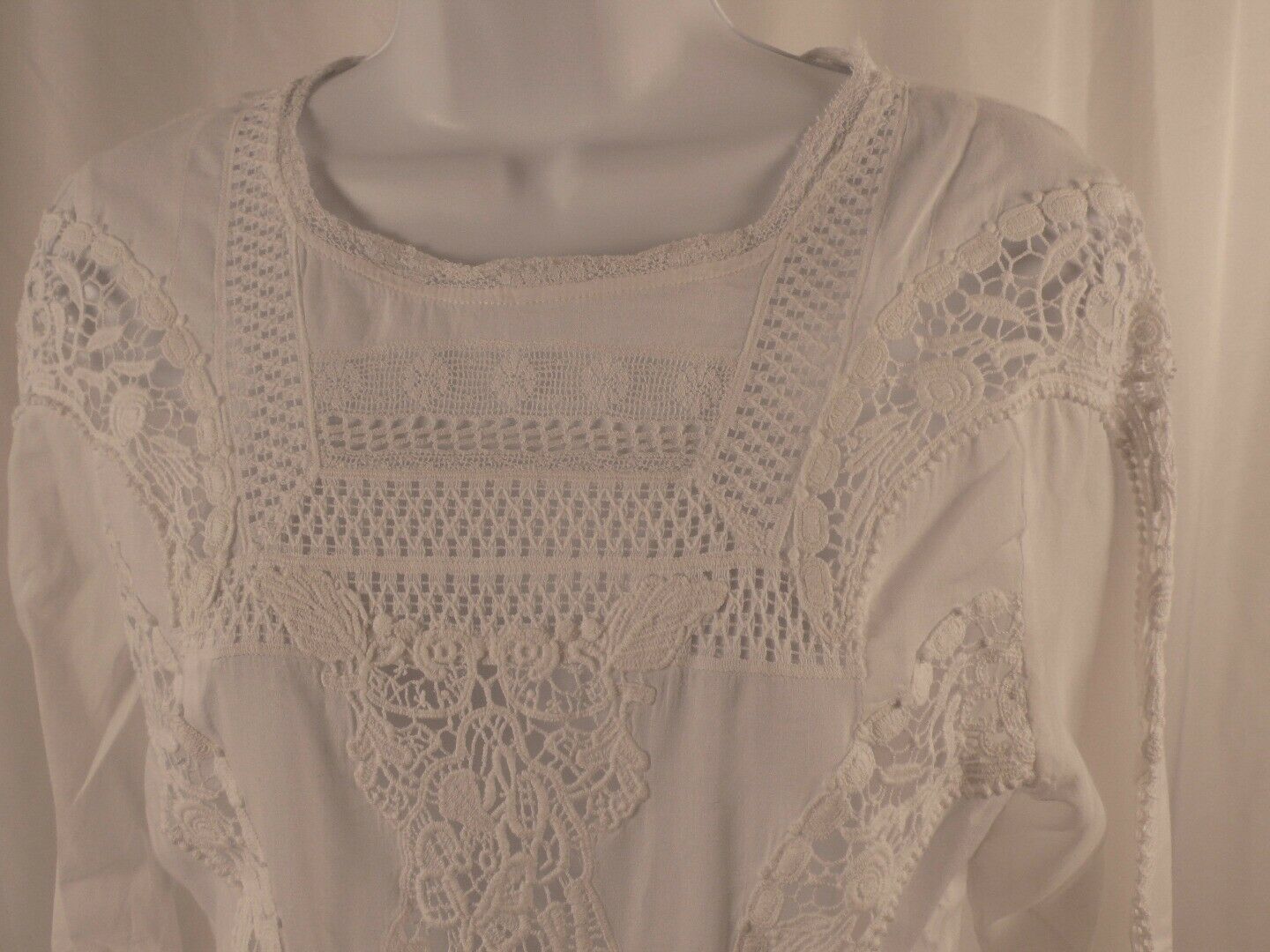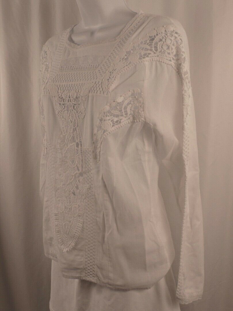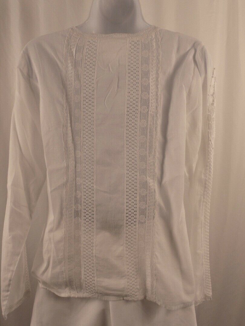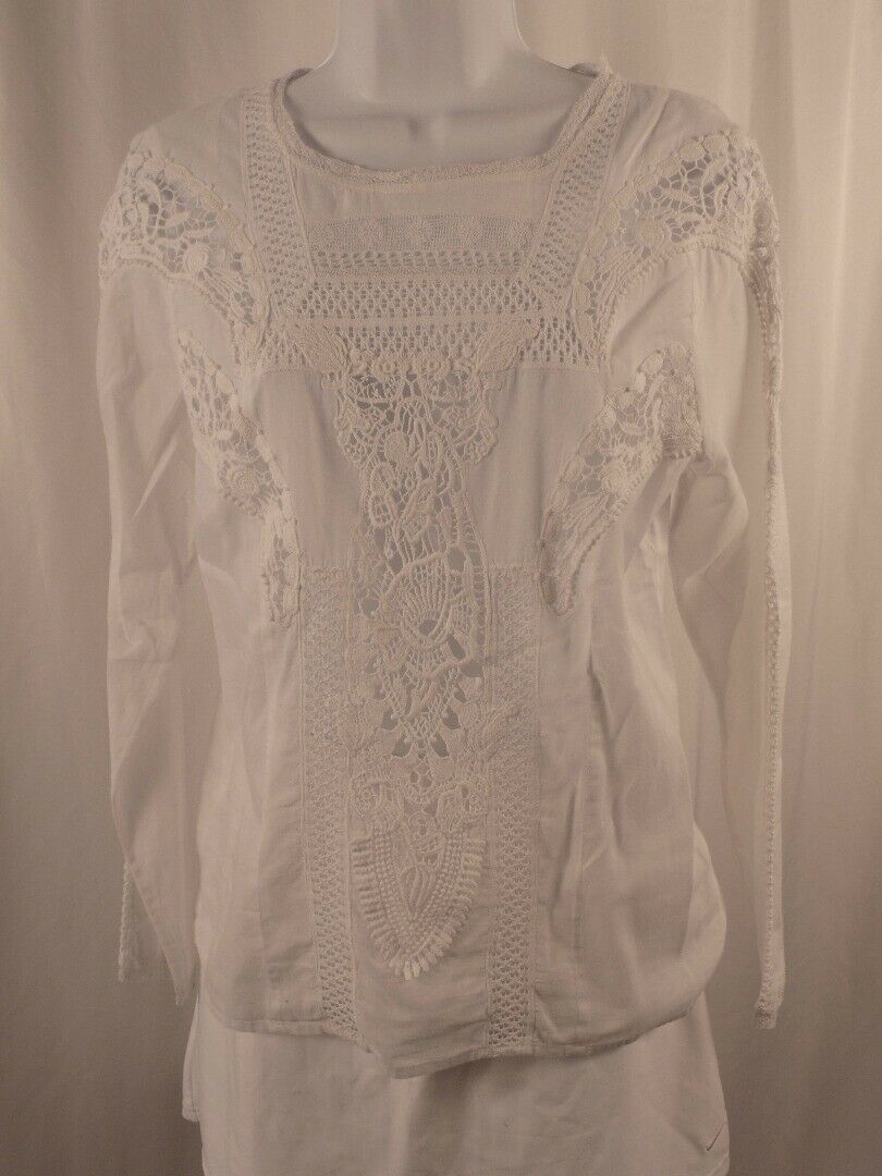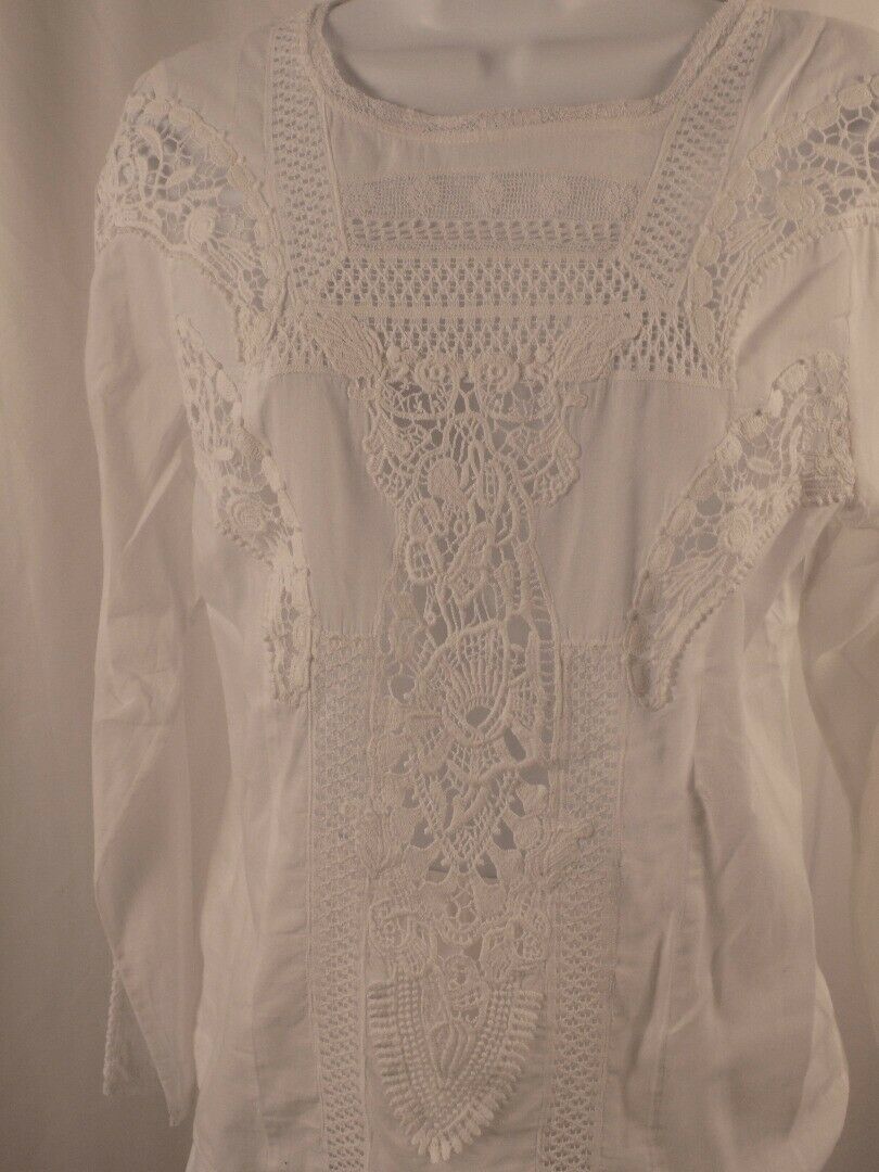 BONHEUR Women's White Cotton Lace Long Sleeve Oiseaude Paradis Tunic Blouse Sz M