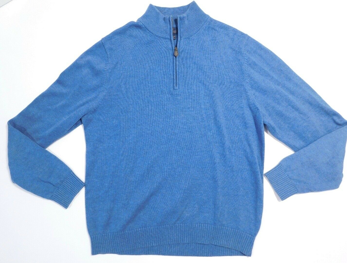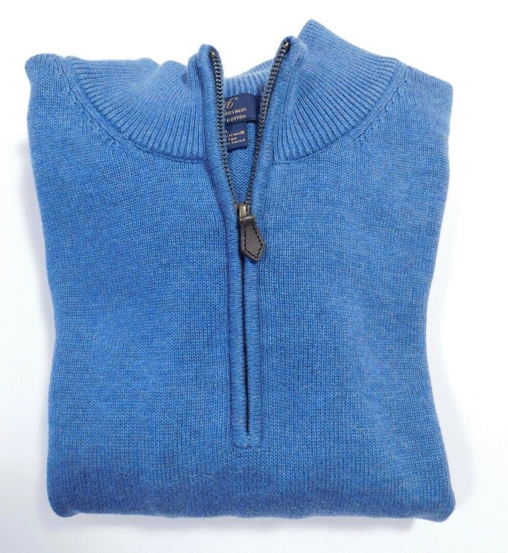 BROOKS BROTHERS “346” Men’s Blue Mock Neck 1/4 Zip Cotton Sweater Sz L