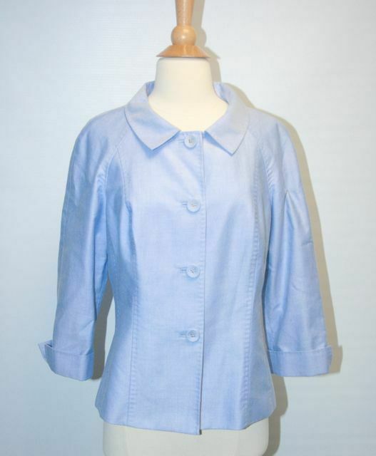 BROOKS BROTHERS Womens 100%Supima Cotton 3/4-Sleeve Lightweight Jacket Blue Sz 8