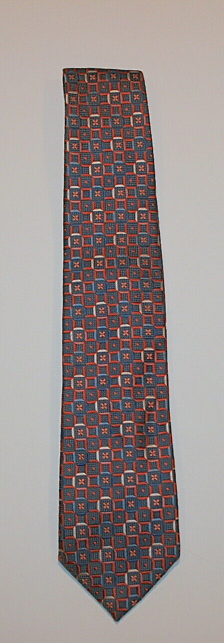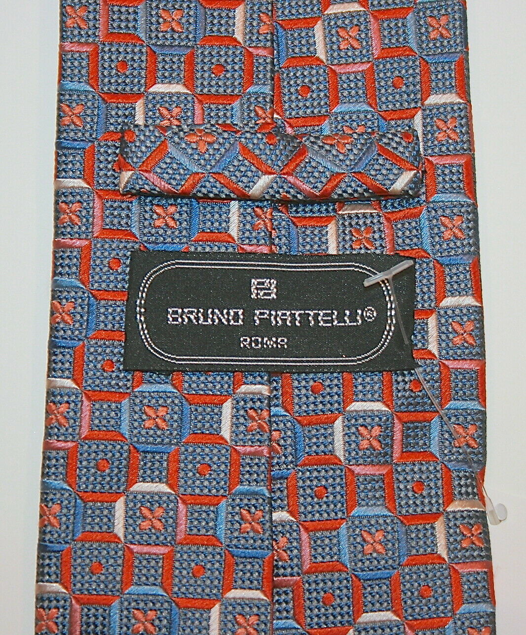 BRUNO PIATELLI 100% Silk Blue Orange & Gray Geometric Pattern Neck Tie