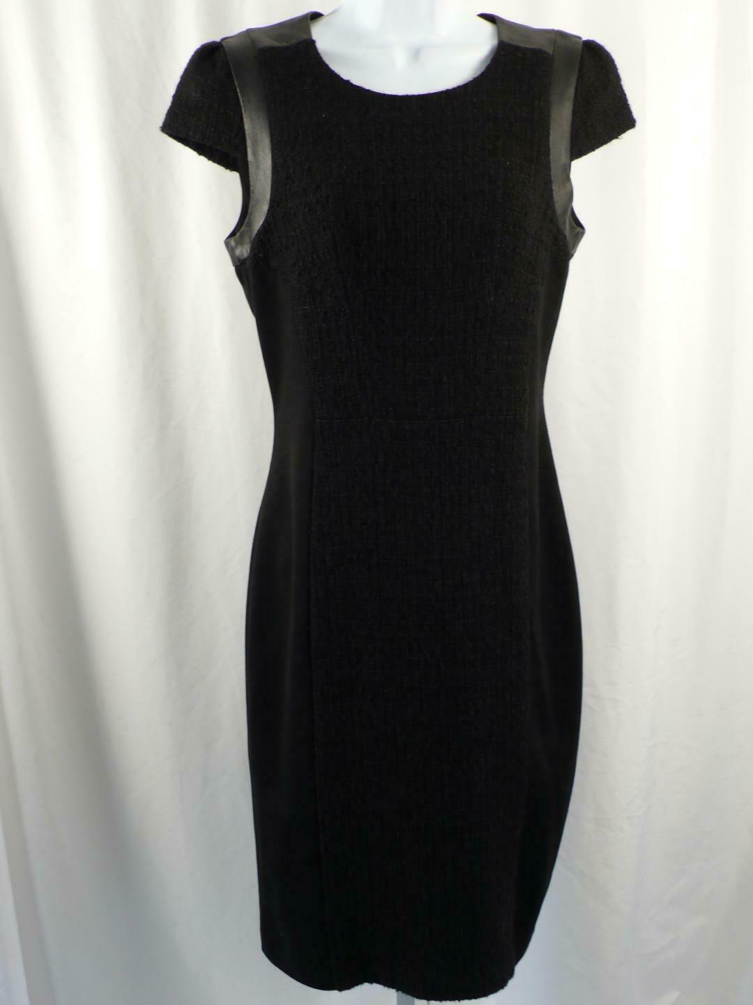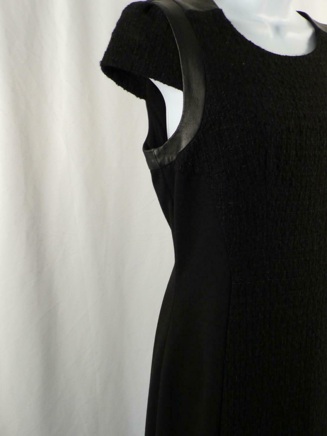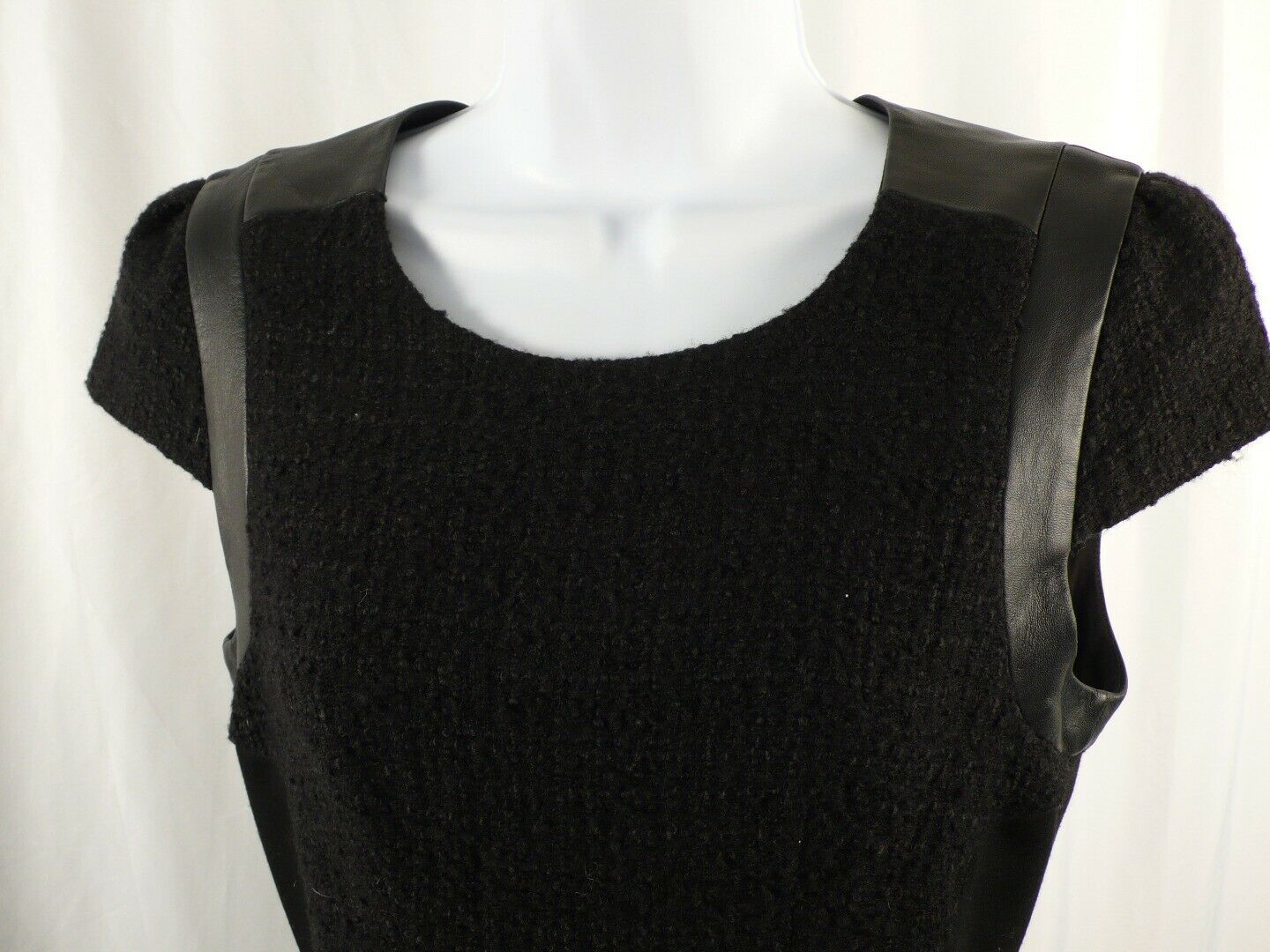 CLUB MONACO Black Wool Boucle Contrast Panels Leather Trim Dress Sz 4