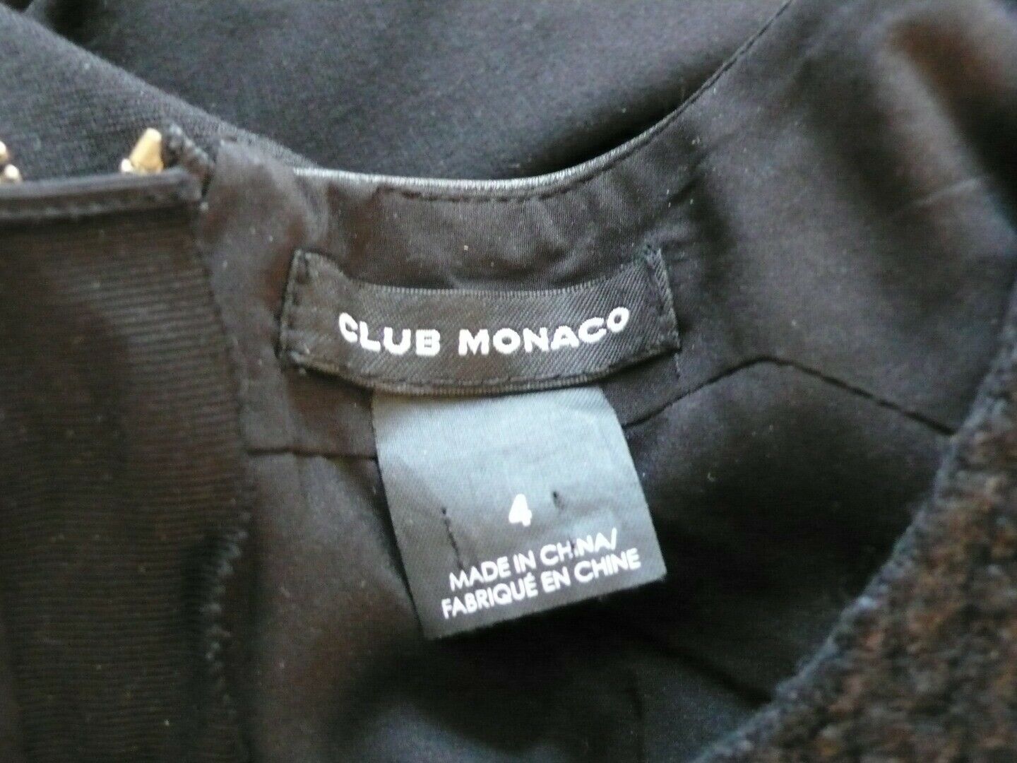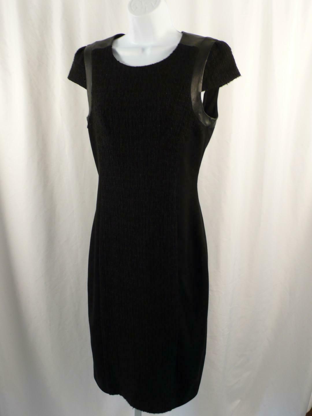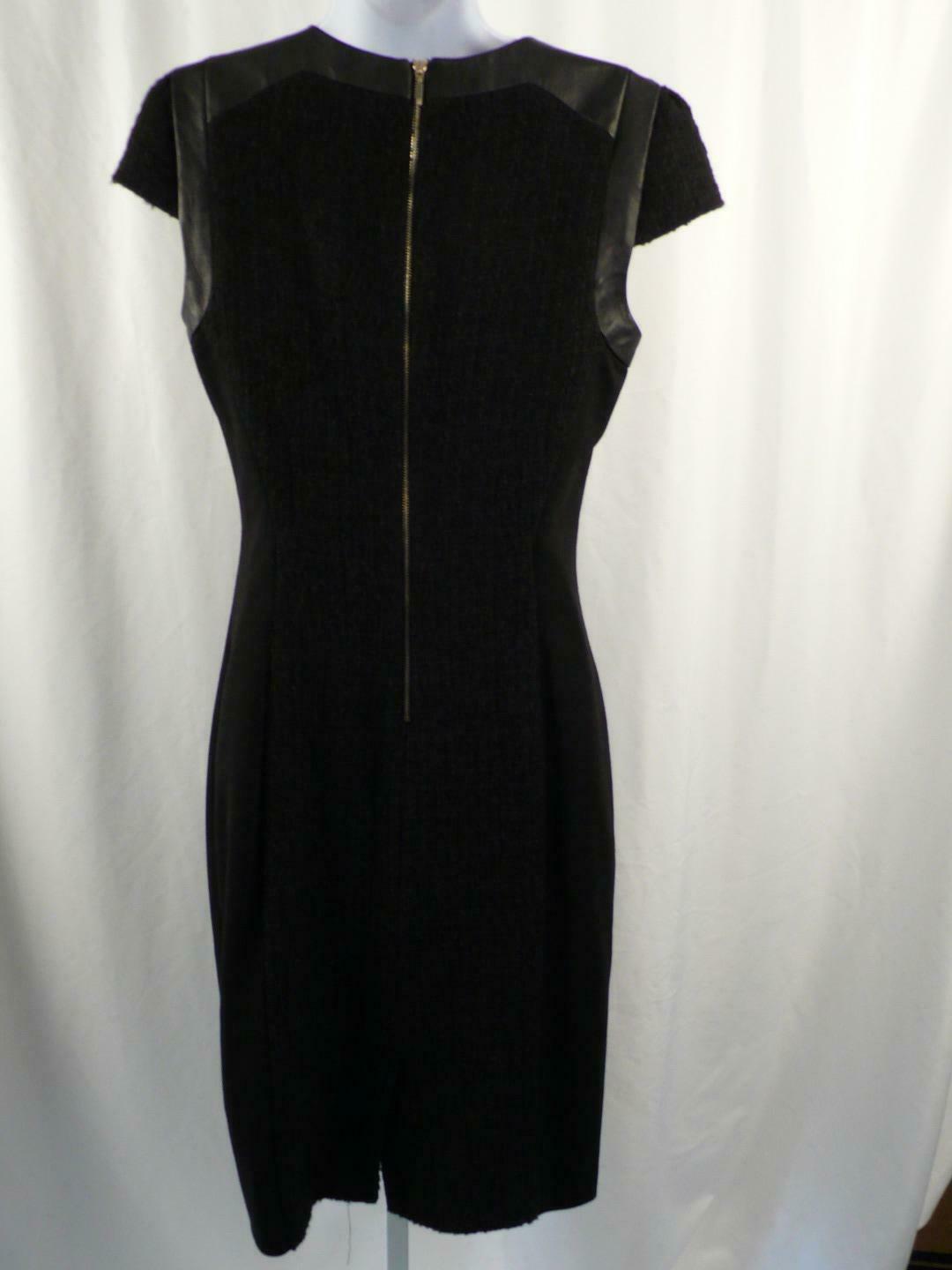 CLUB MONACO Black Wool Boucle Contrast Panels Leather Trim Dress Sz 4