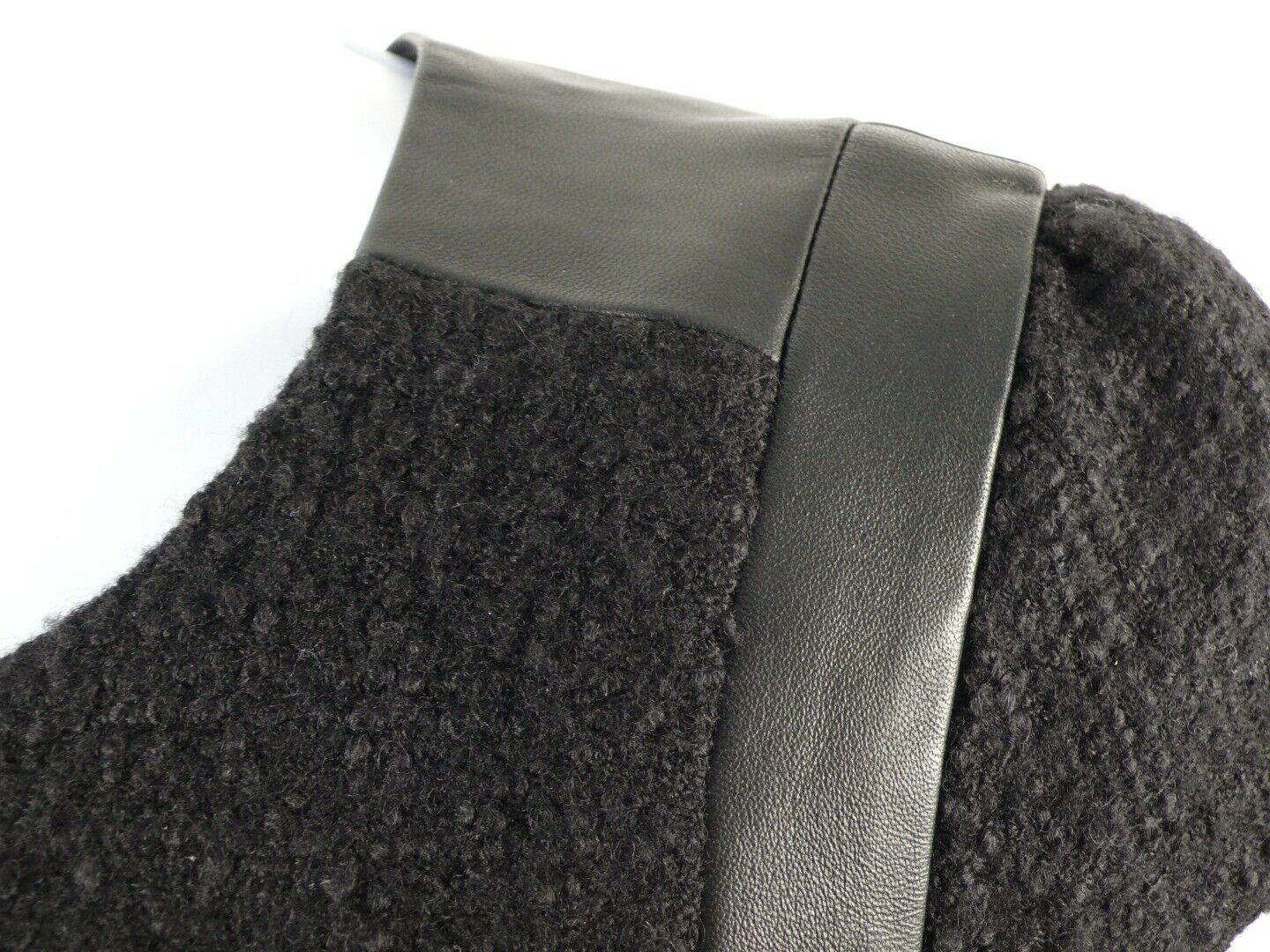 CLUB MONACO Black Wool Boucle Contrast Panels Leather Trim Dress Sz S/P