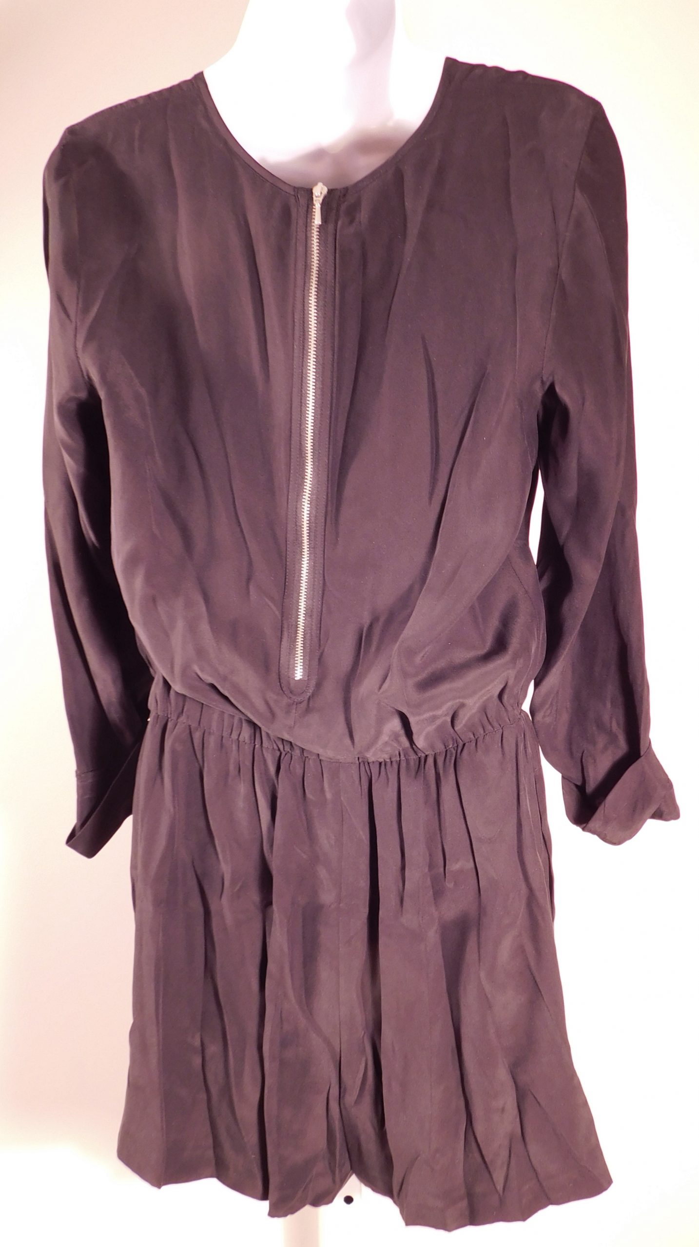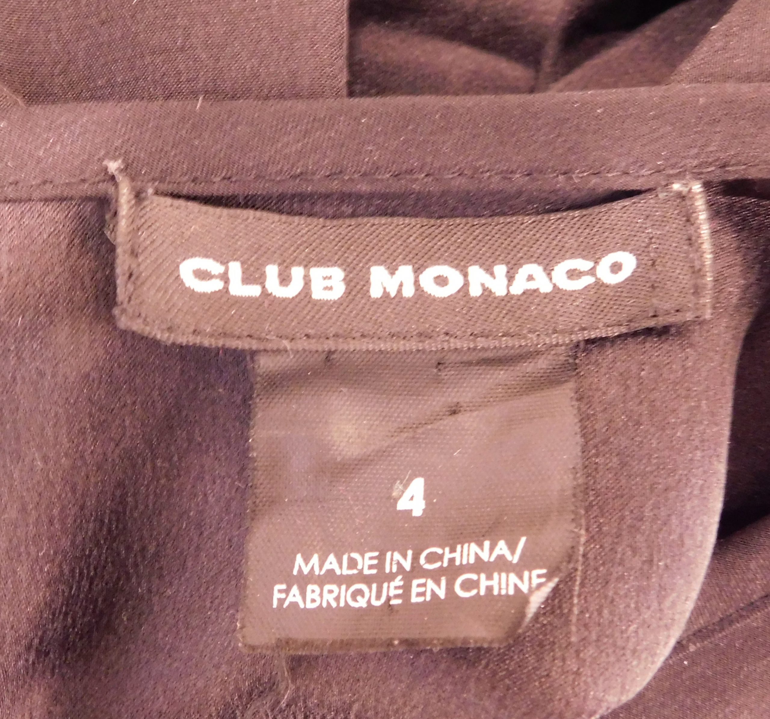 CLUB MONACO Women’s Black Silk 3/4 Rolled Exposed Back Zip Romper Shorts Sz 4
