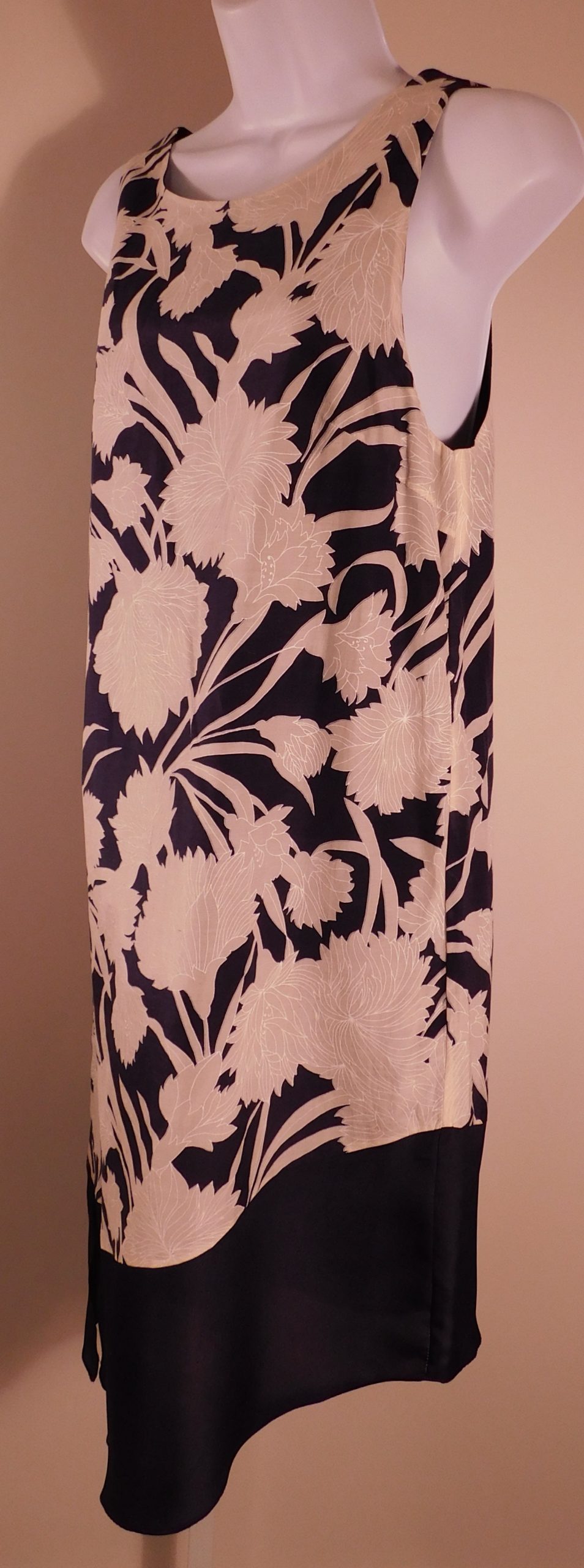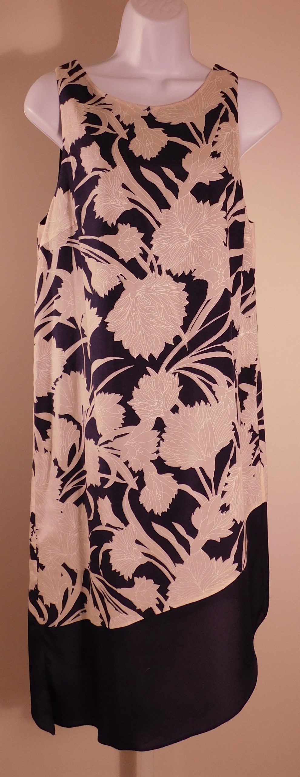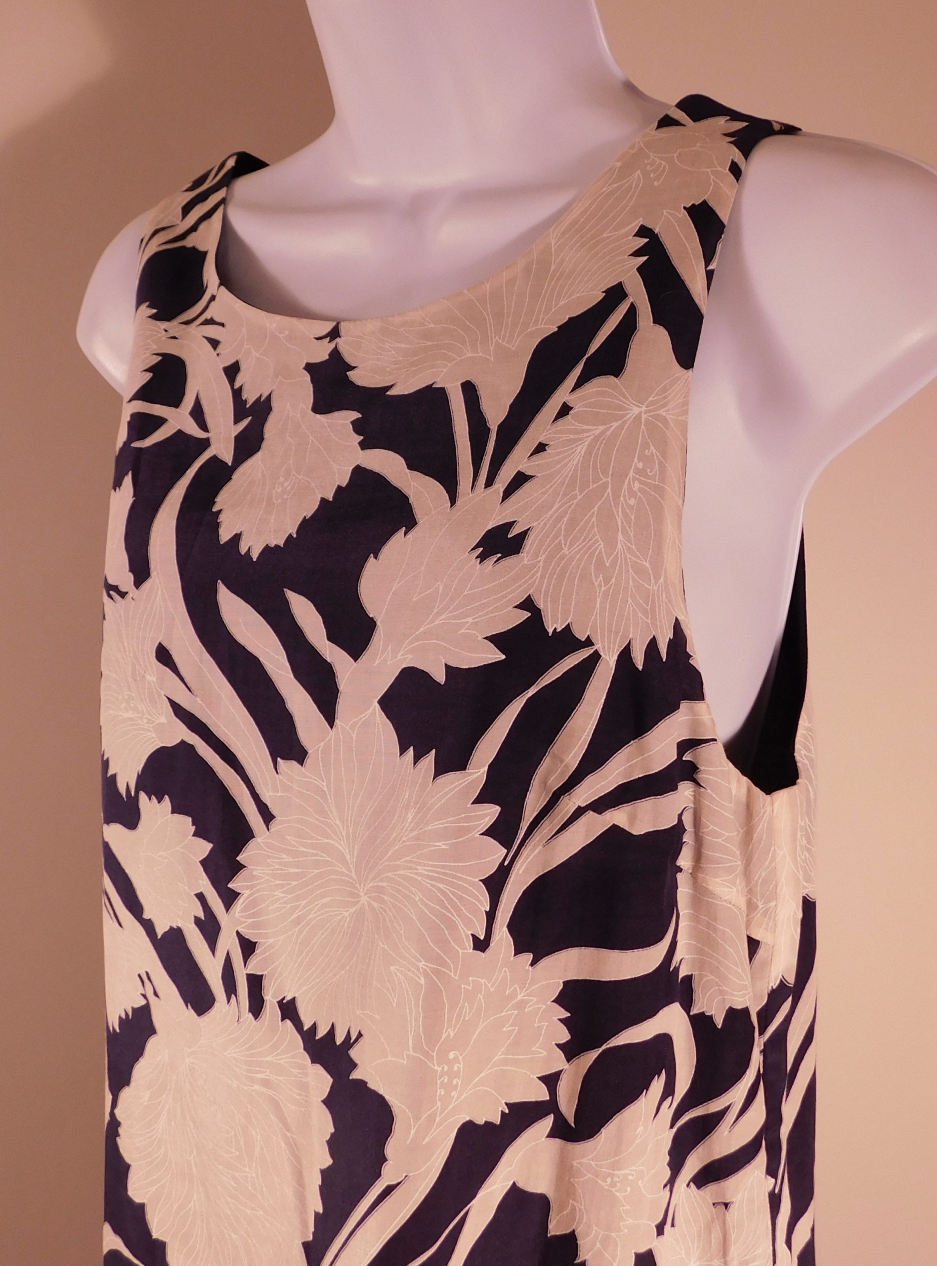 CLUB MONACO Women’s Navy Blue & Taupe Floral Sleeveless Cotton/Silk Shift Dress Sz 6