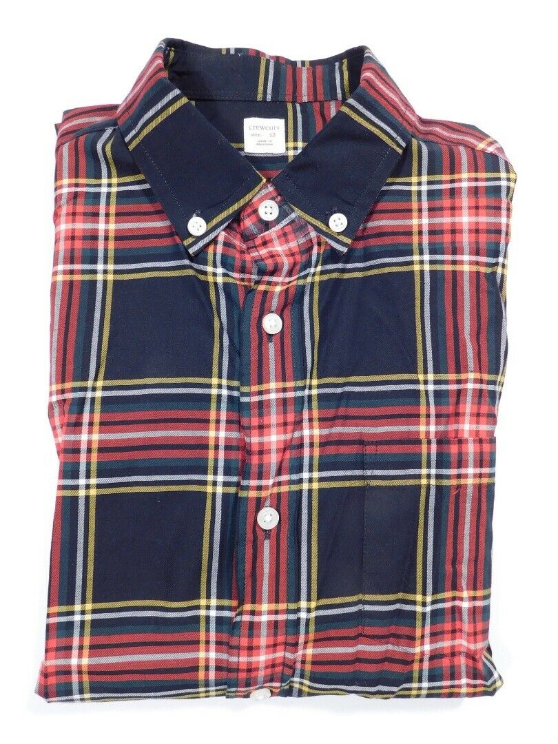 CREWCUTS J CREW NWOT Boys Black Red Green Plaid Button Front Cotton Shirt Sz 12