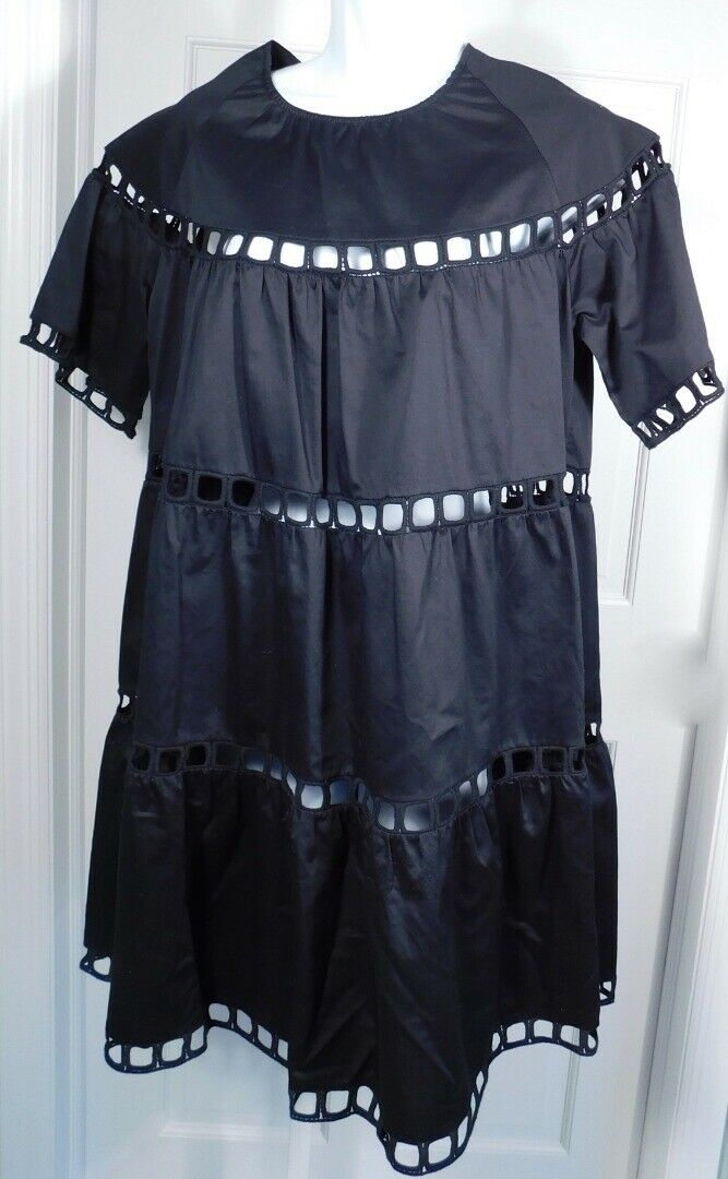 CYNTHIA ROWLEY Black Postcard Eyelet Short Sleeve Cotton A-Line Dress Sz S $325