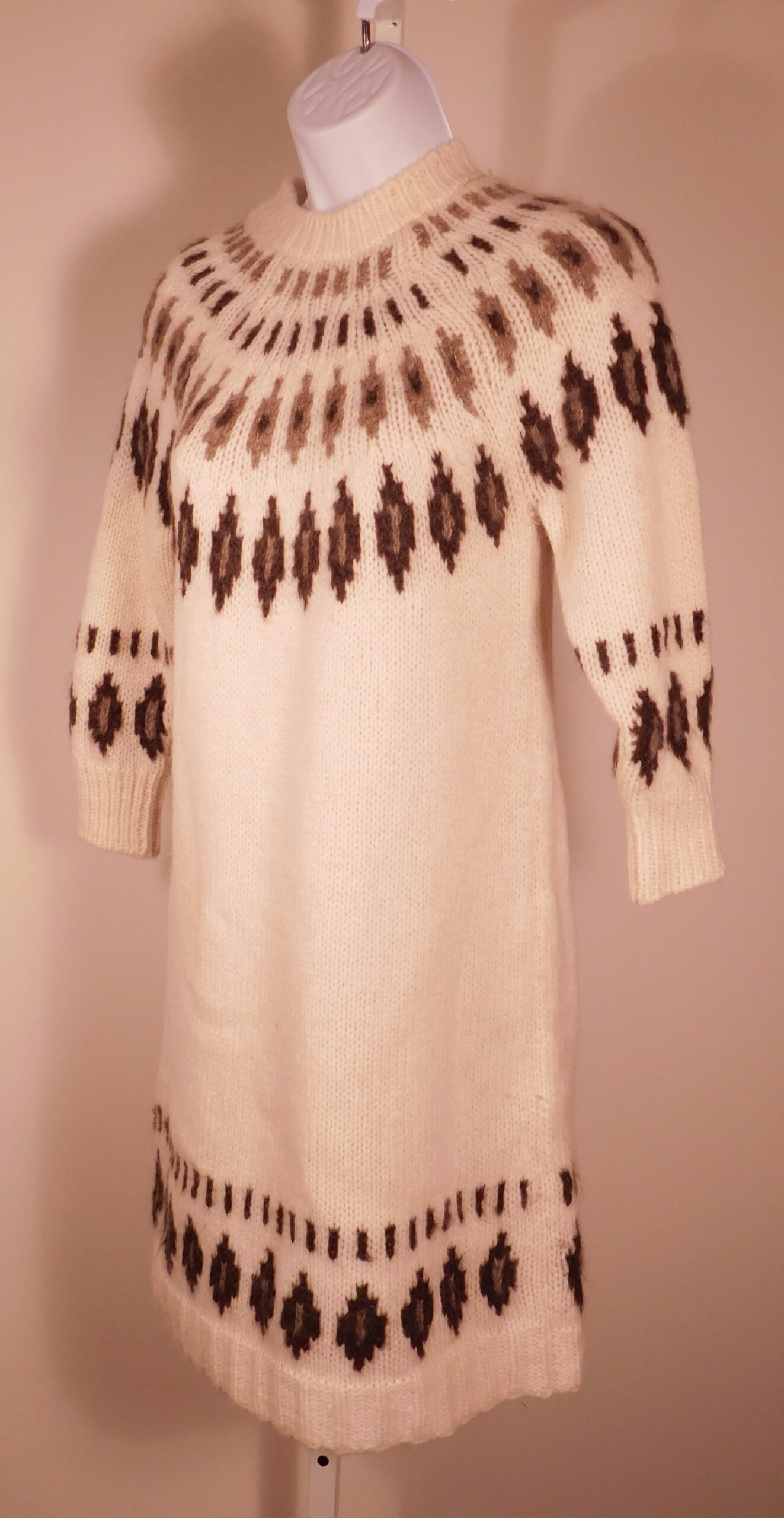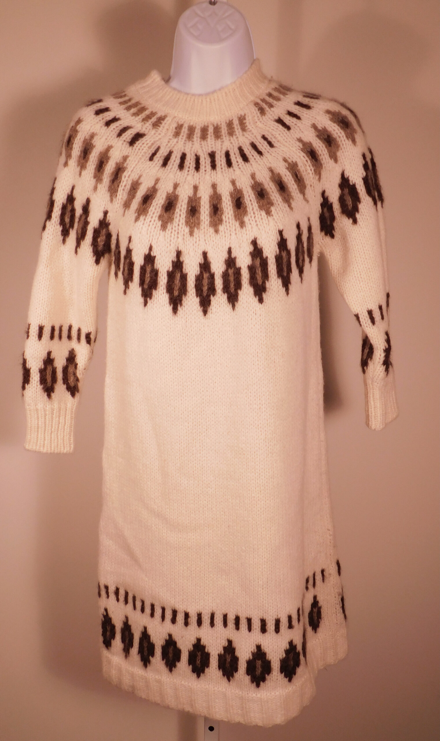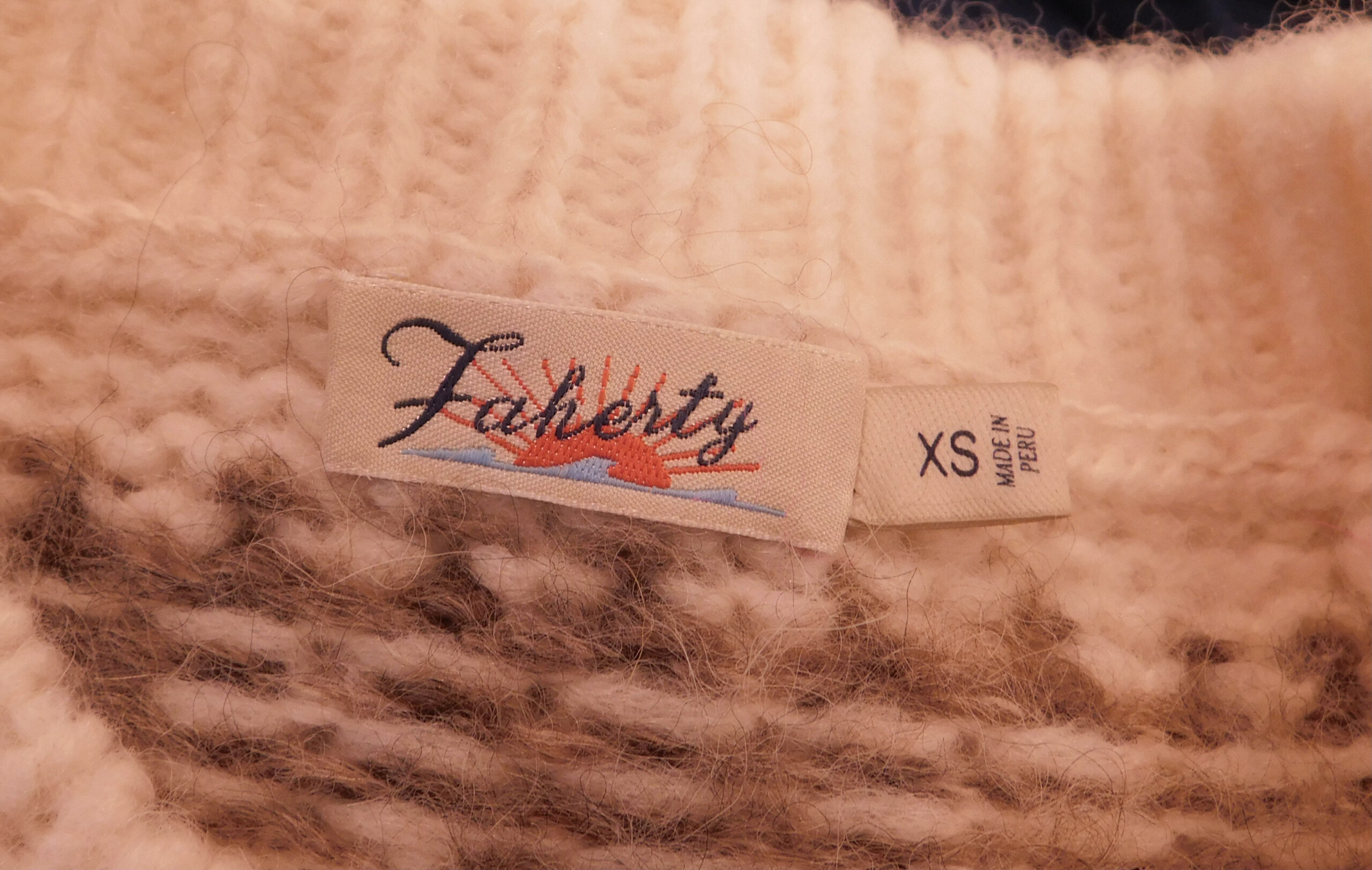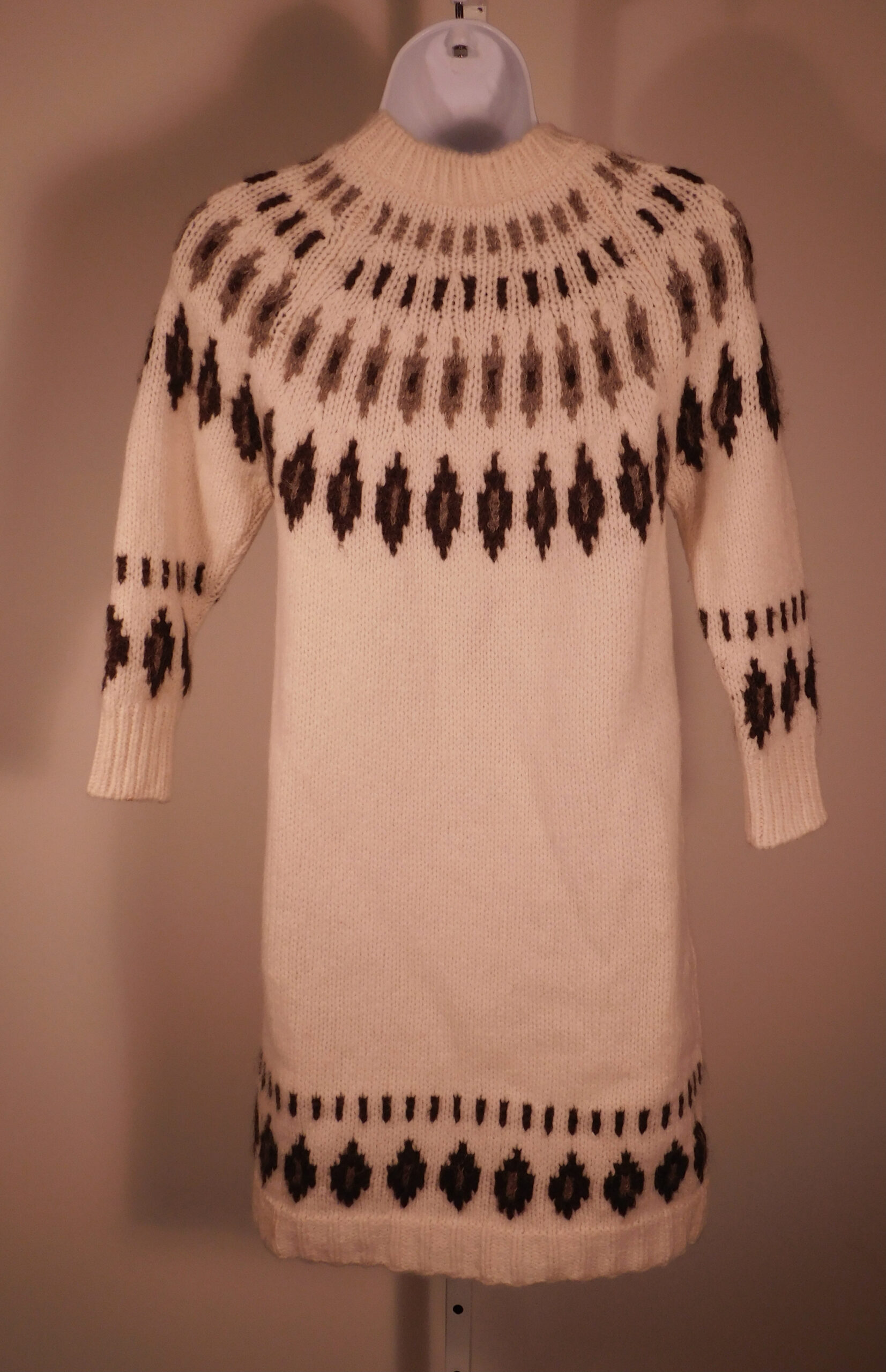 FAHERTY Women’s Ivory Brown Long Sleeve Sweater Dress Sz XS ($198)