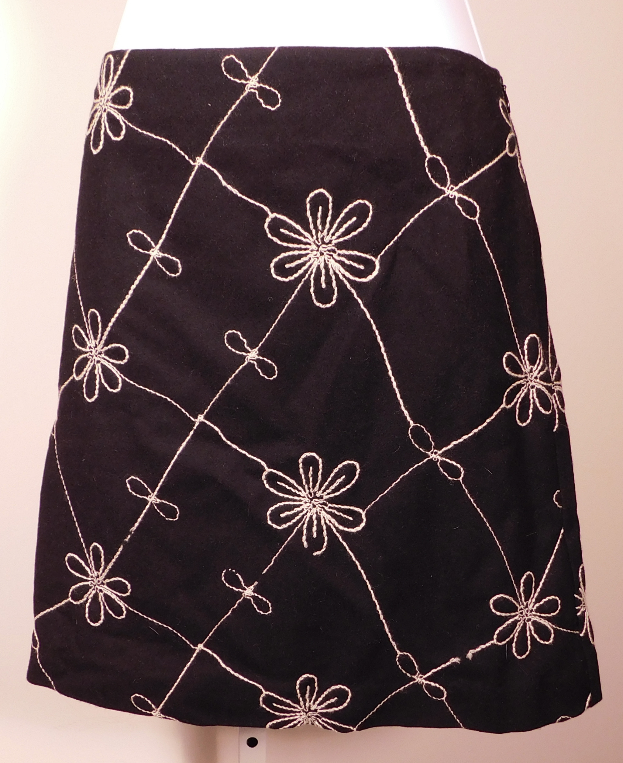 FASHIONISTA Women’s Black Embroidered Wool Mini Skirt Sz 8