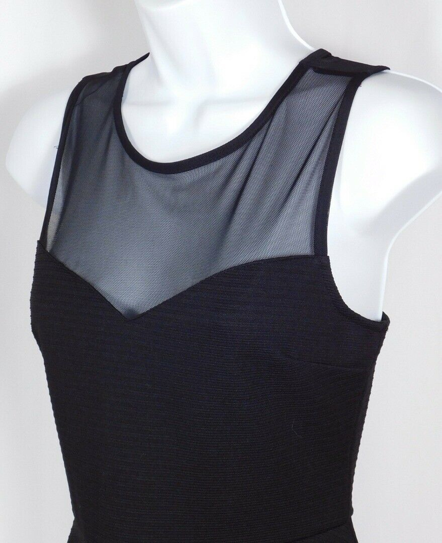 FOREVER 21 Black Sheer Shoulder Sleeveless Fit & Flare Textured Dress Sz M
