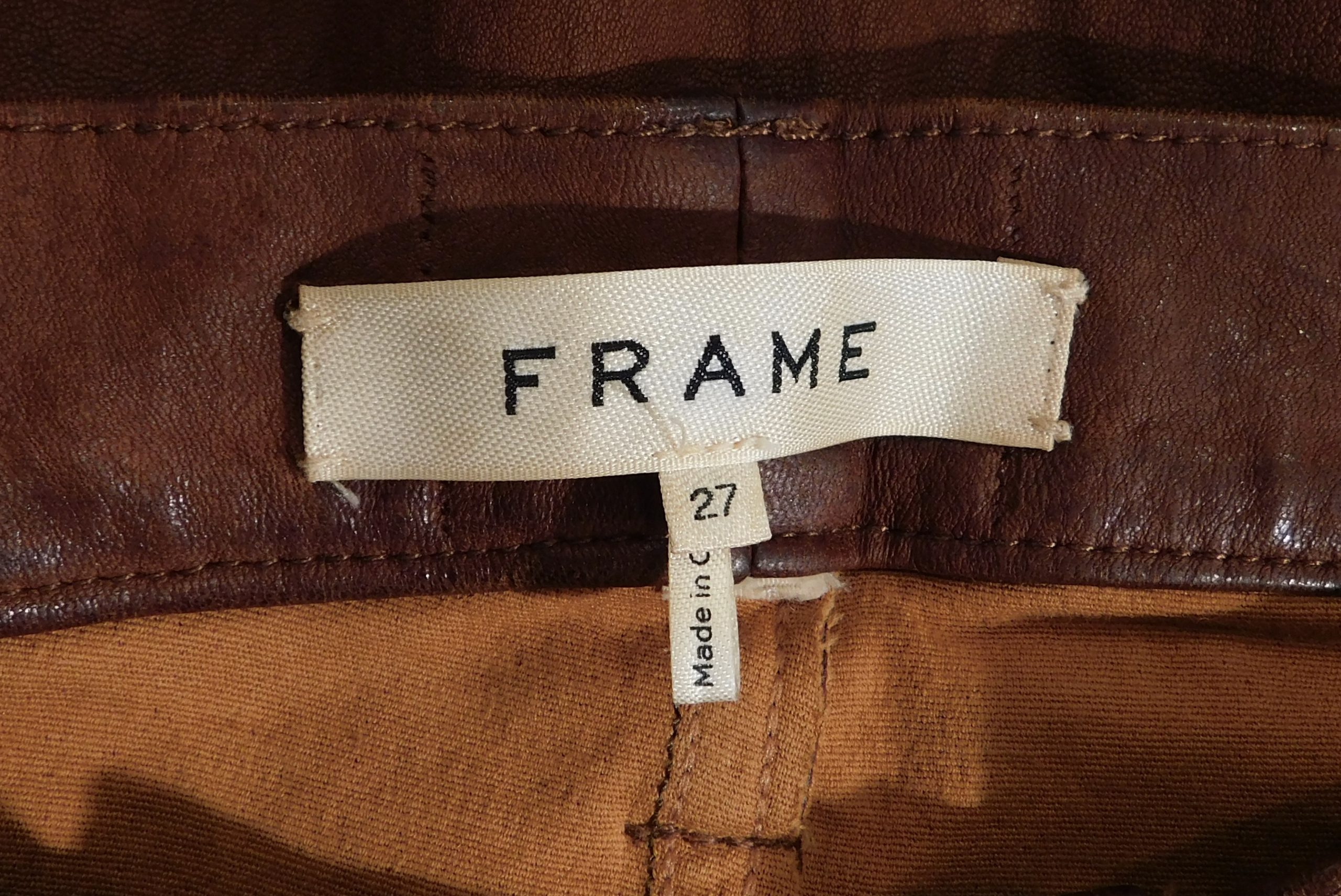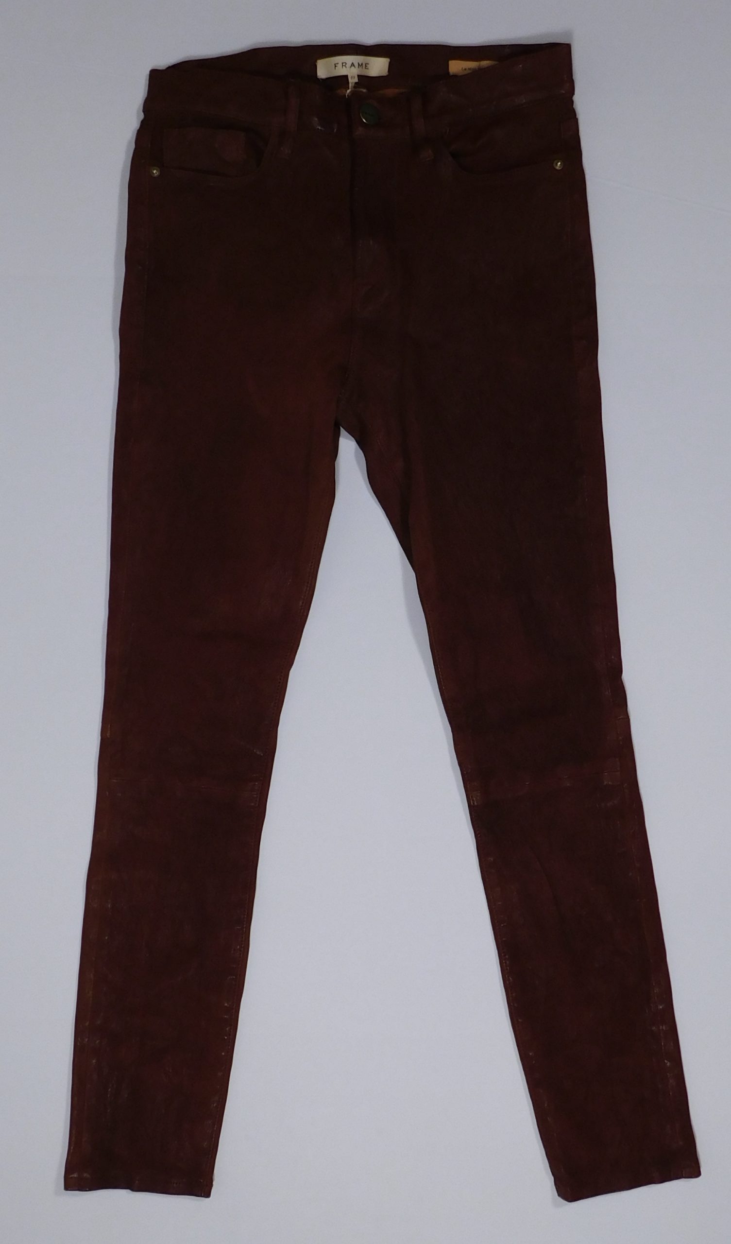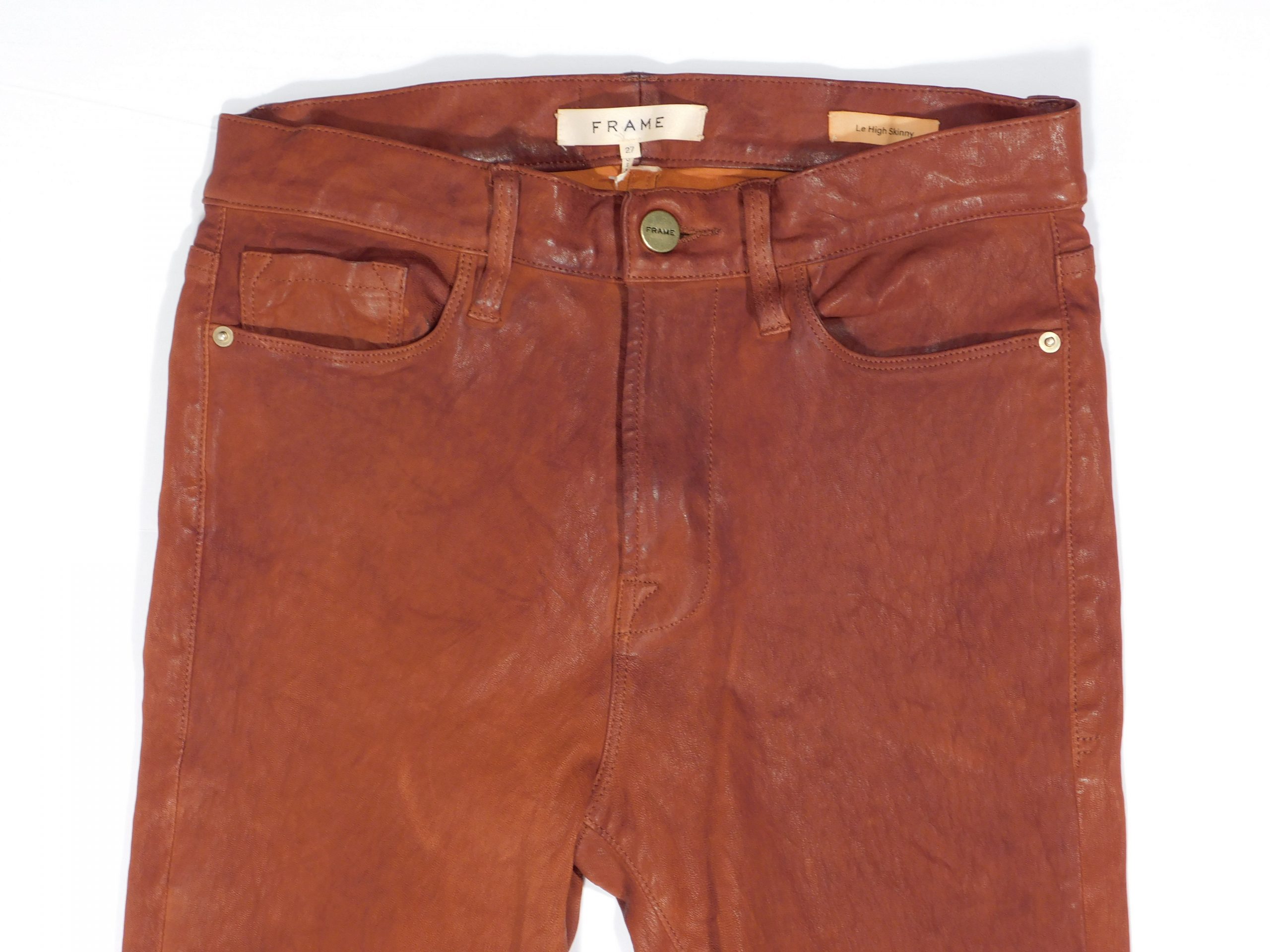 FRAME Women’s Cognac Lamb Leather Le High Skinny Ankle Pant Sz 27 ($950)