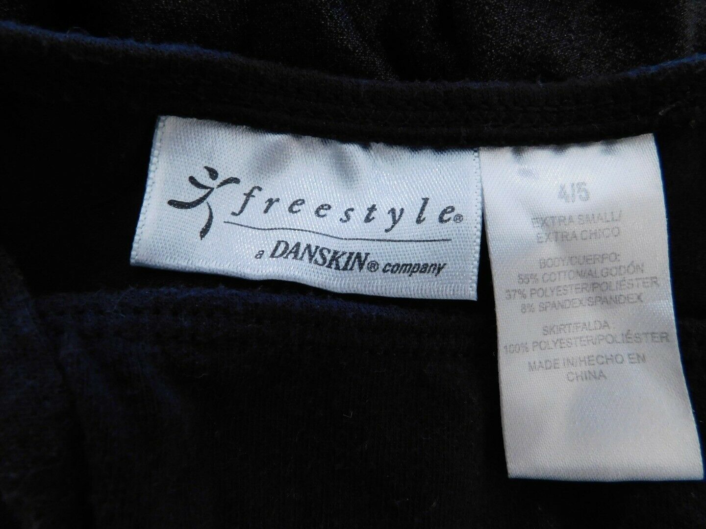 FREESTYLE DANSKIN Girls Black Cotton Stretch Skirted Sleeveless Leotard Sz 4/5