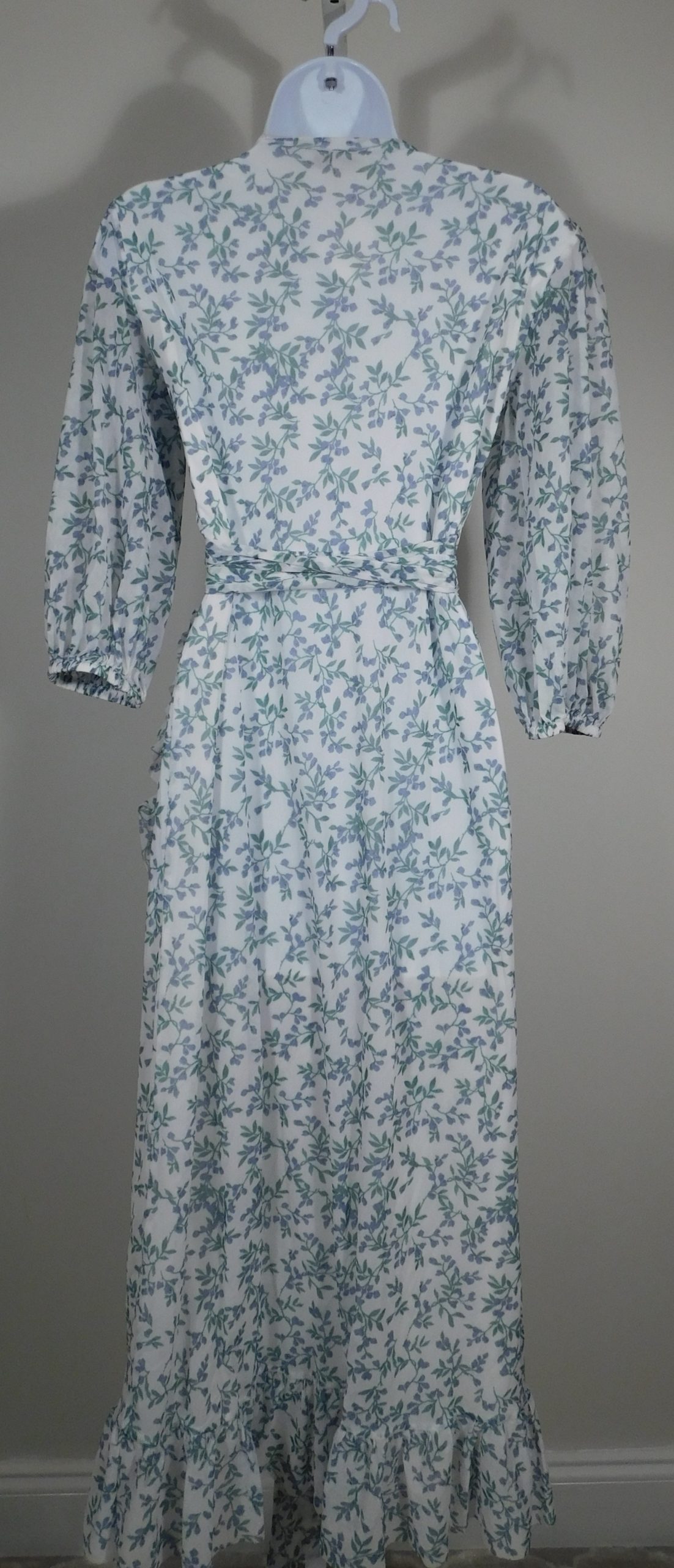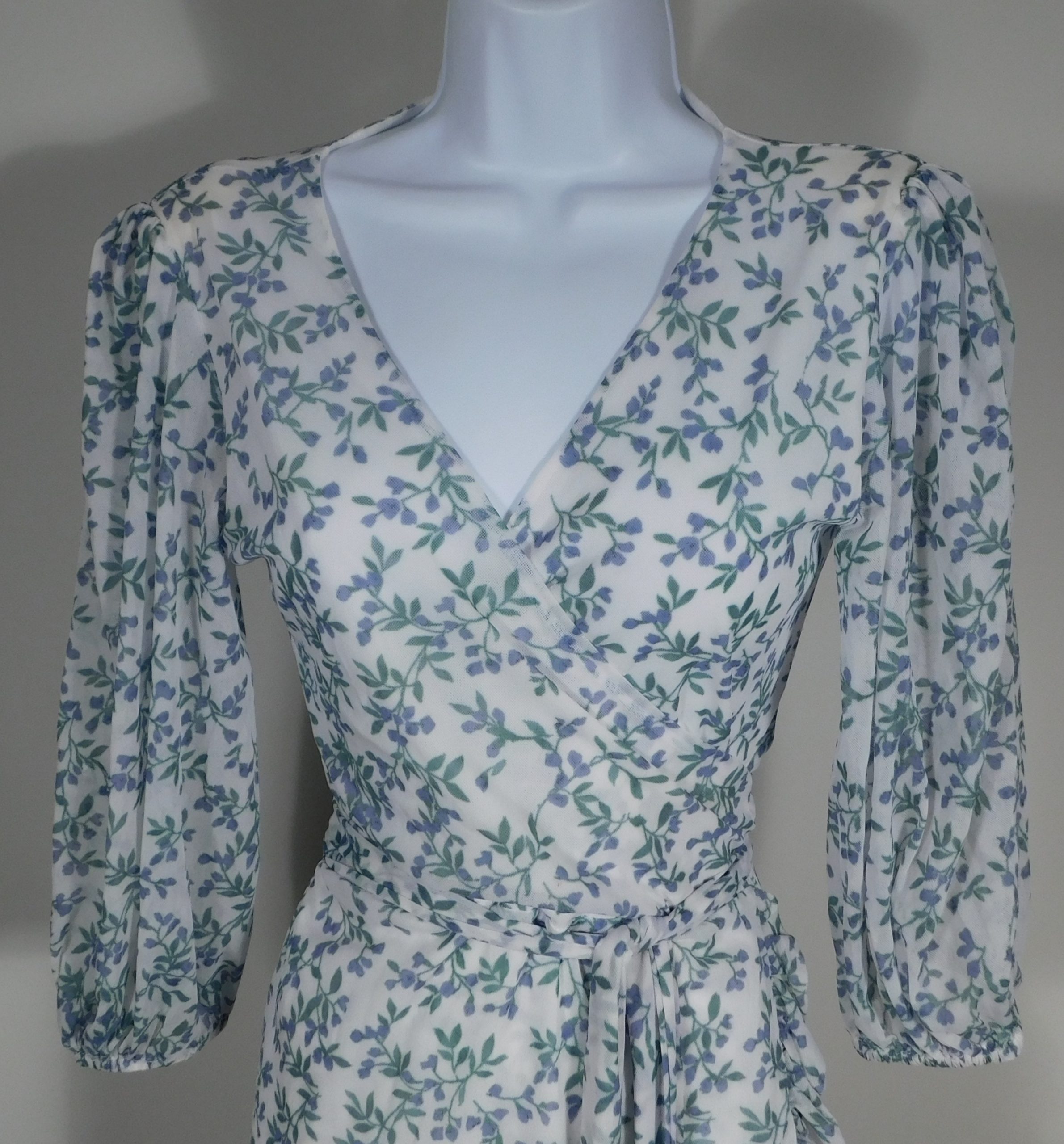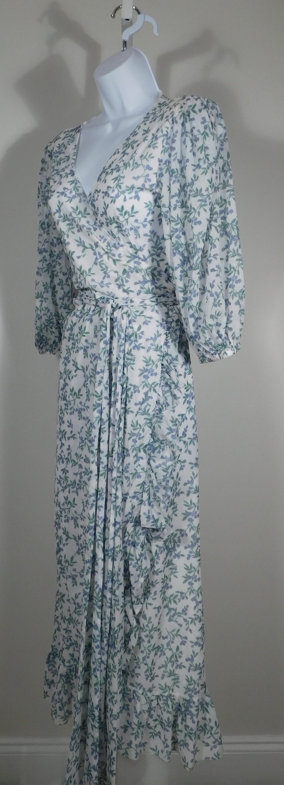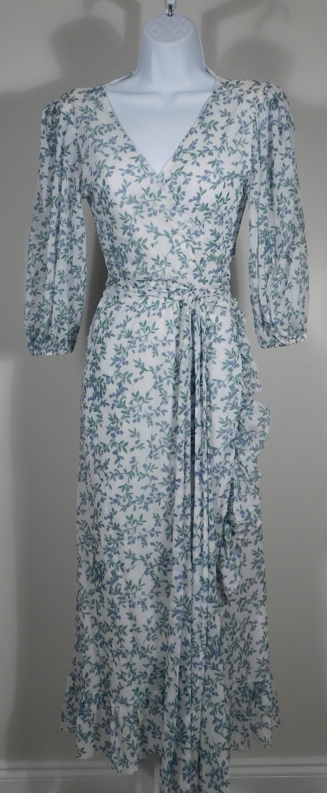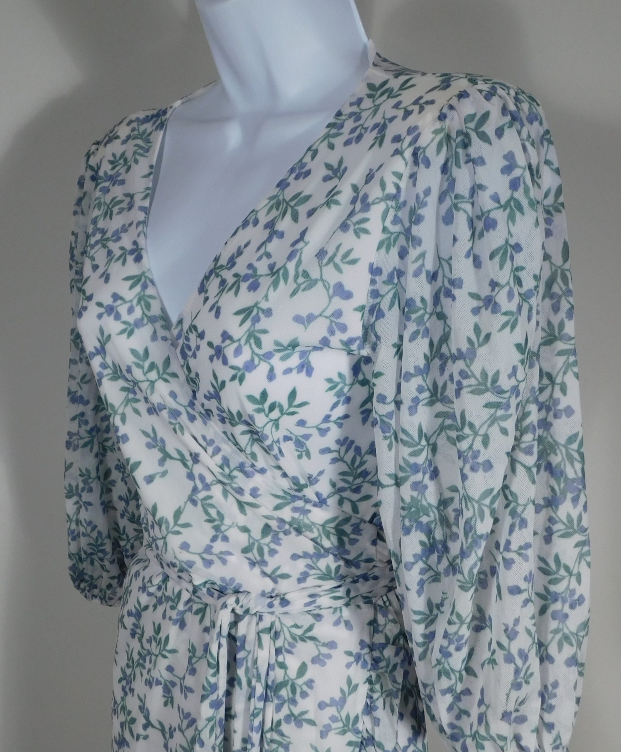 GANNI Tilden Floral-Print 3/4 Sleeve Mesh Wrap Dress Sz 38