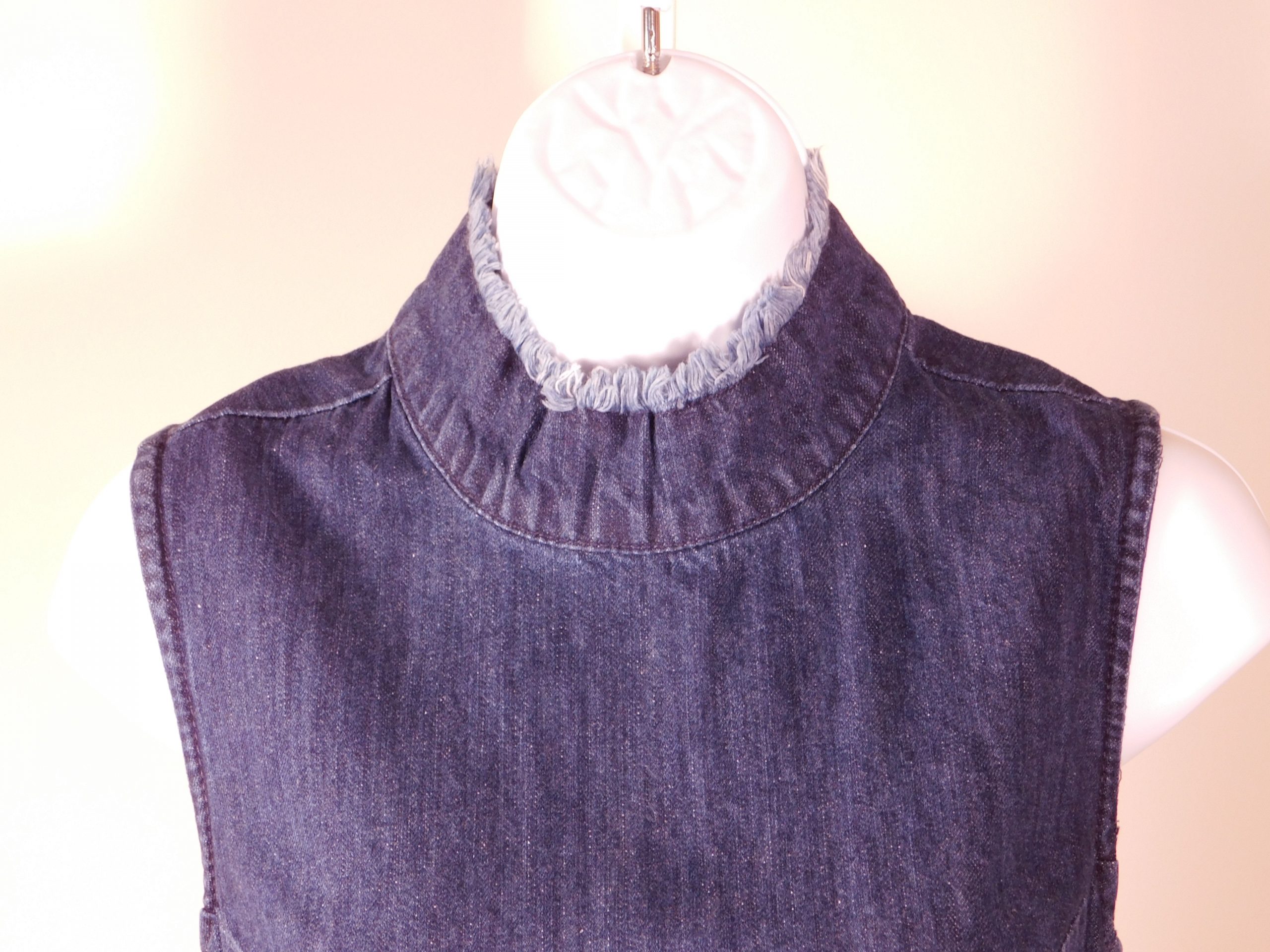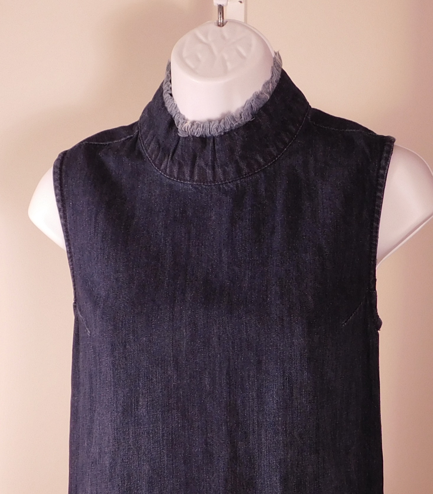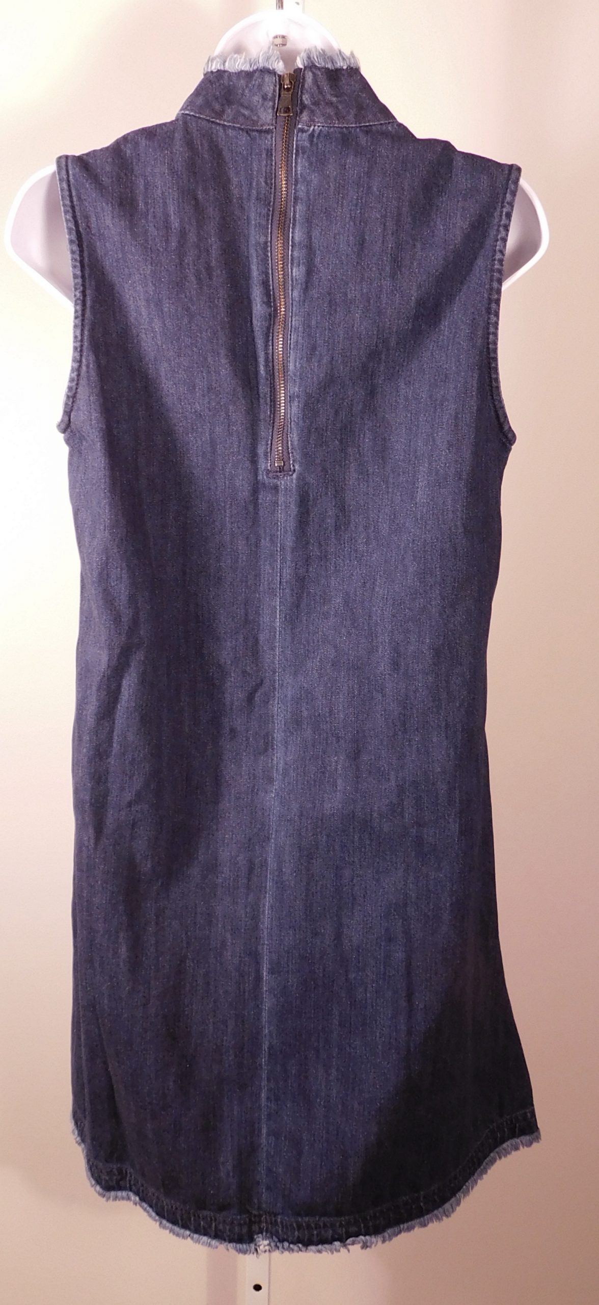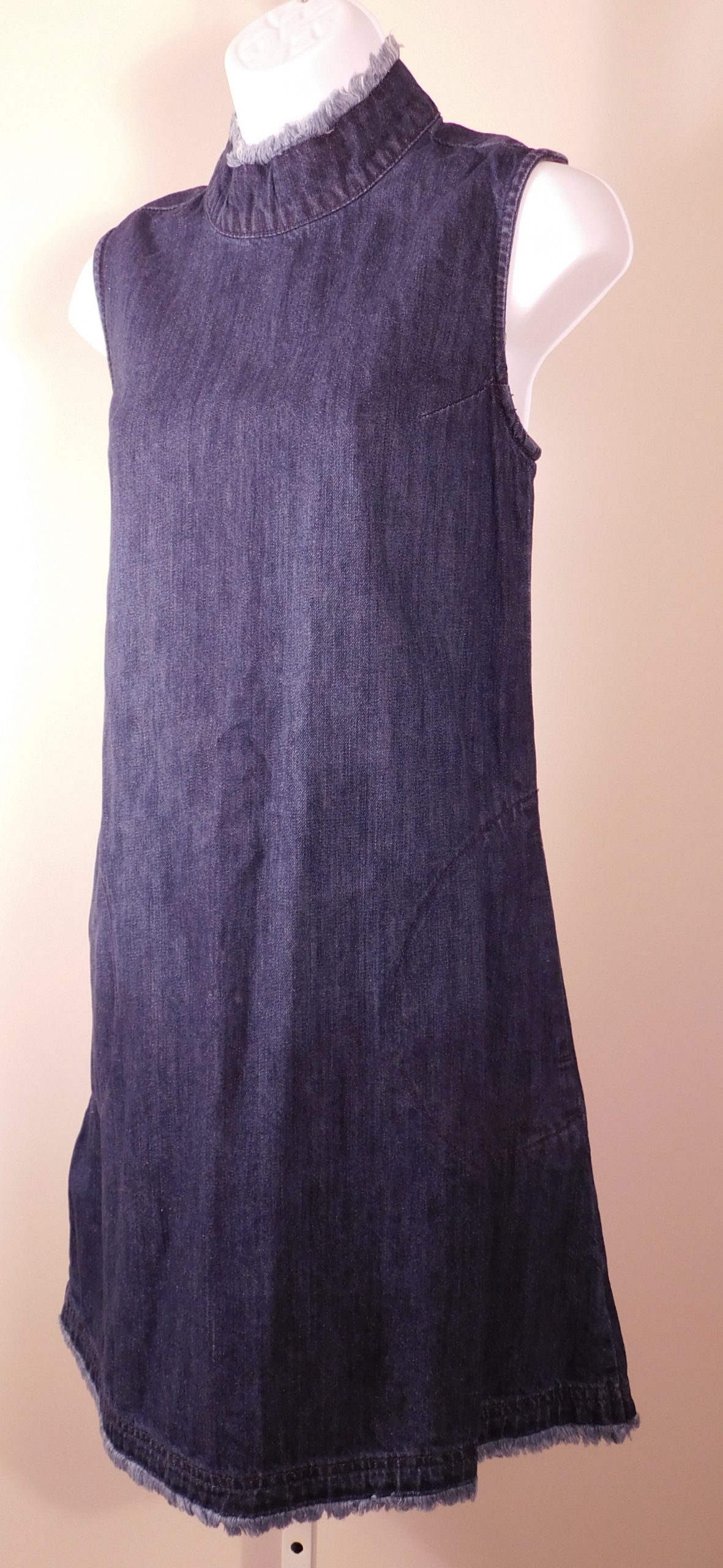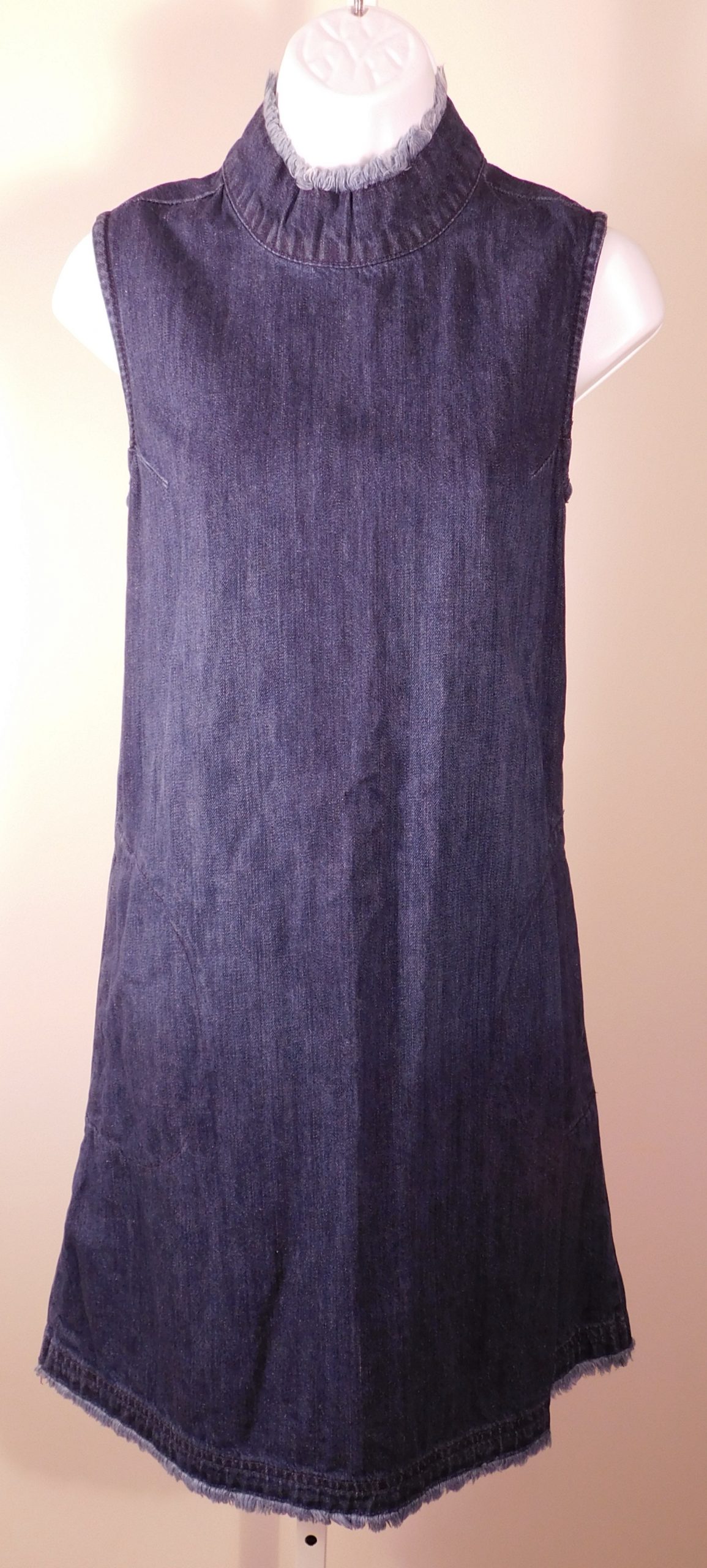 GAP Women’s Dark Wash Blue Cotton Denim Sleeveless High Neck Unfinished Hem Shift Dress Sz S
