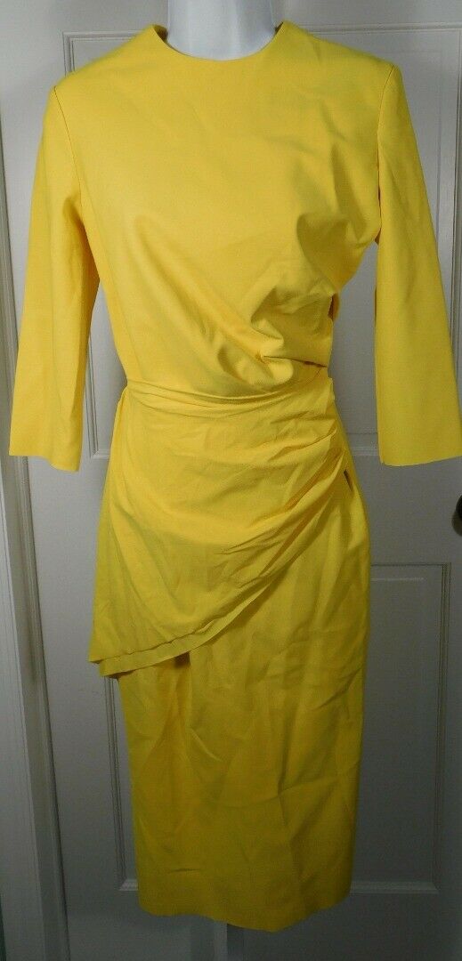GRETA CONSTANTINE Yellow Scoop Neck 3/4 Sleeve Gathered Waist Lewis Dress Sz M