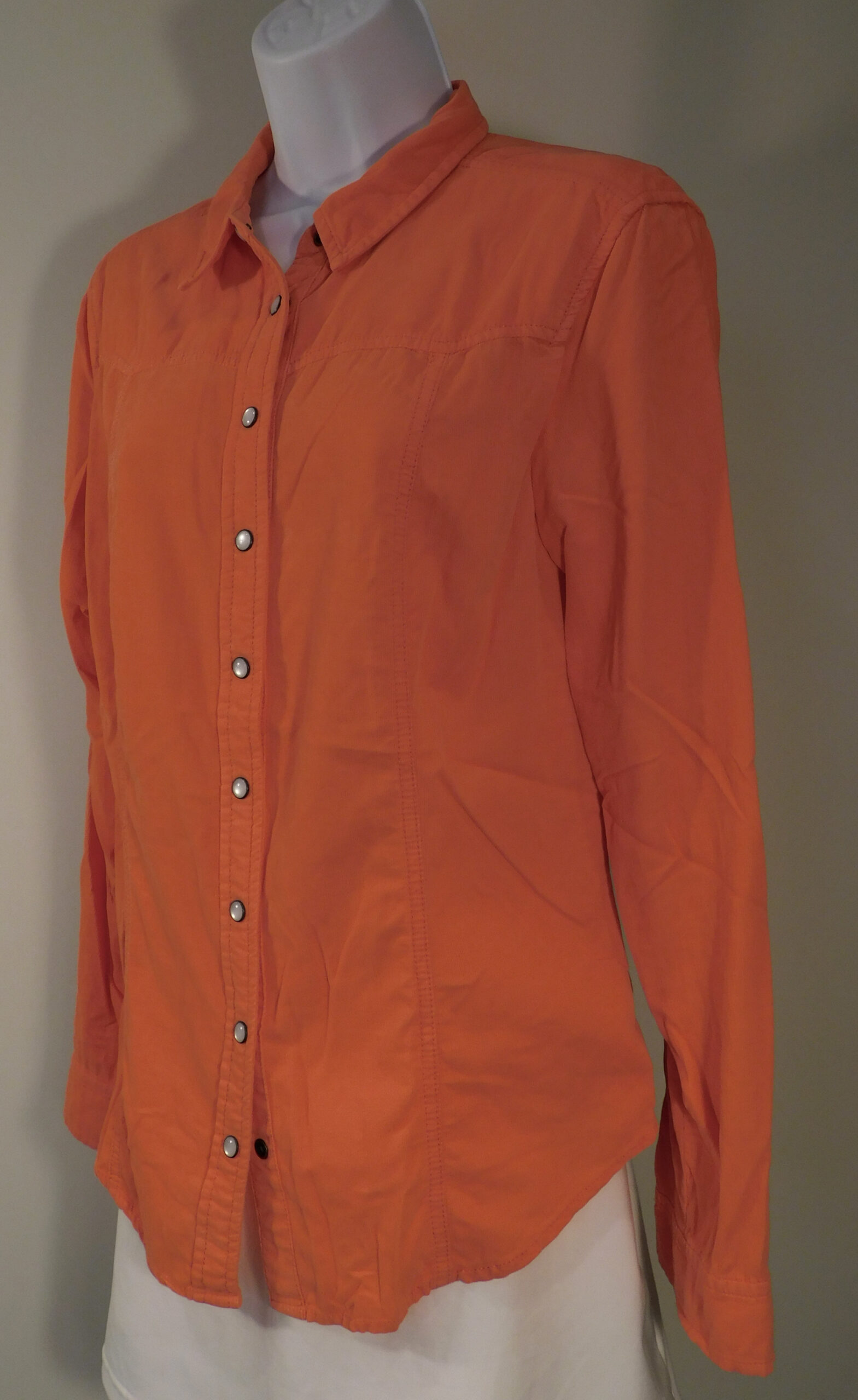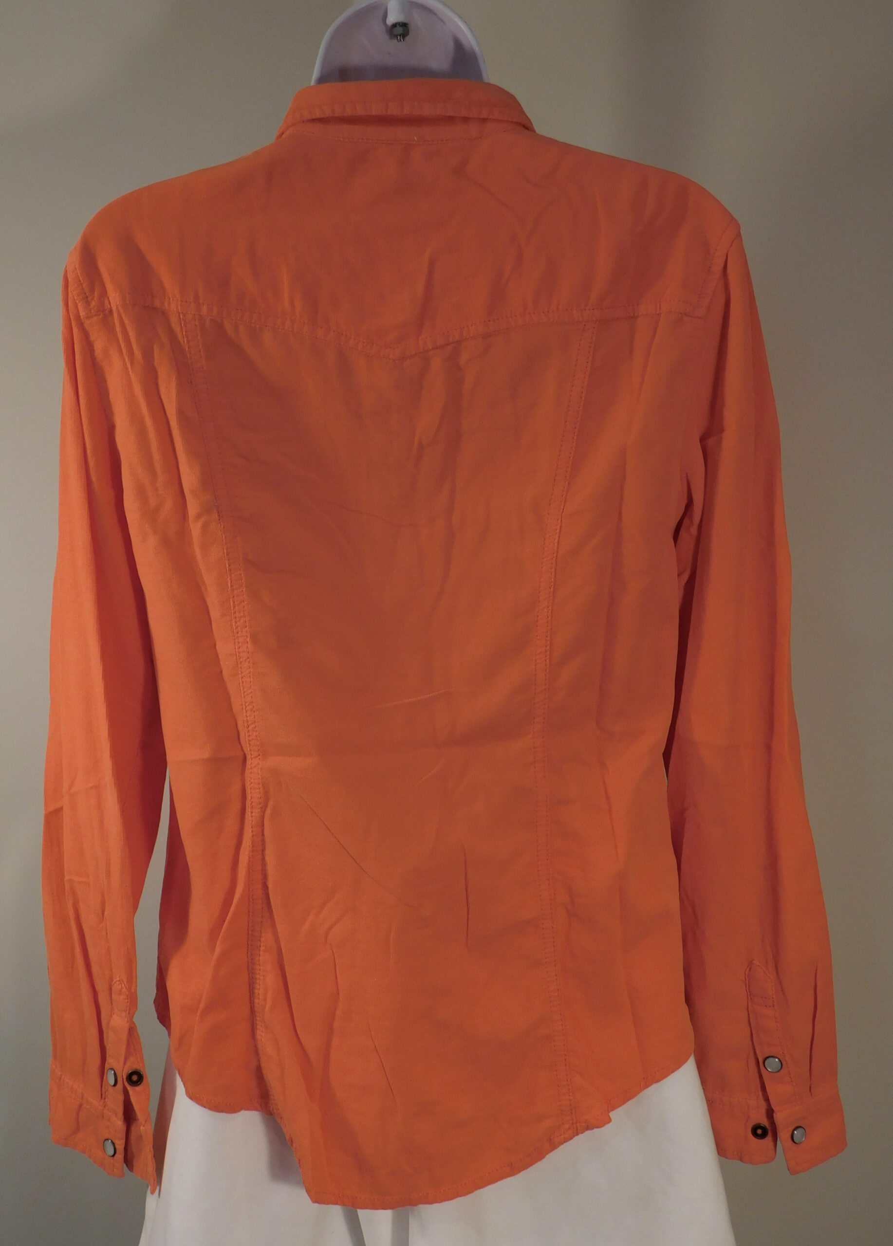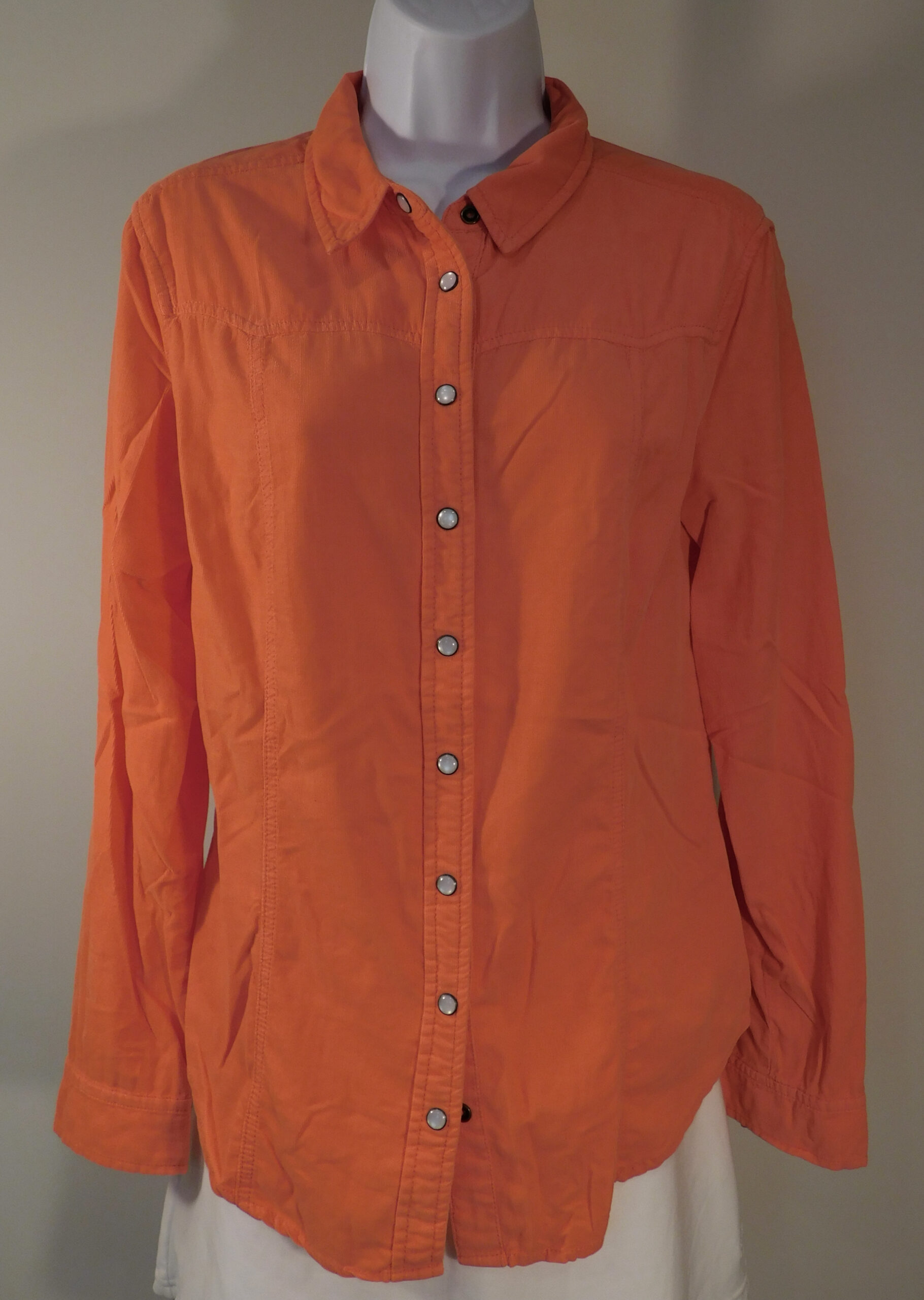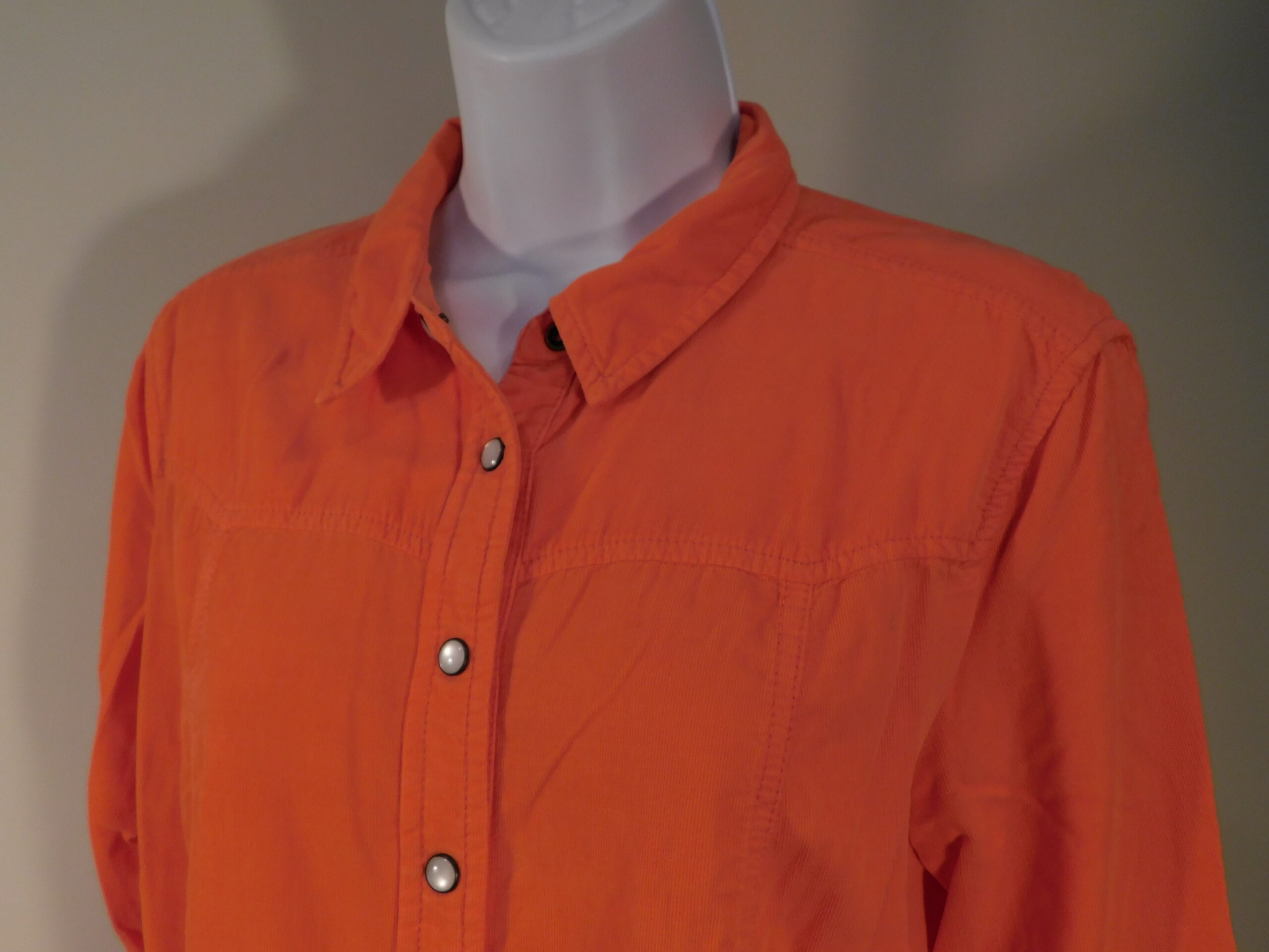HOLDING HORSES ANTHROPOLOGIE Women’s Orange Cotton Corduroy Snap Front Long Sleeve Blouse Sz 6
