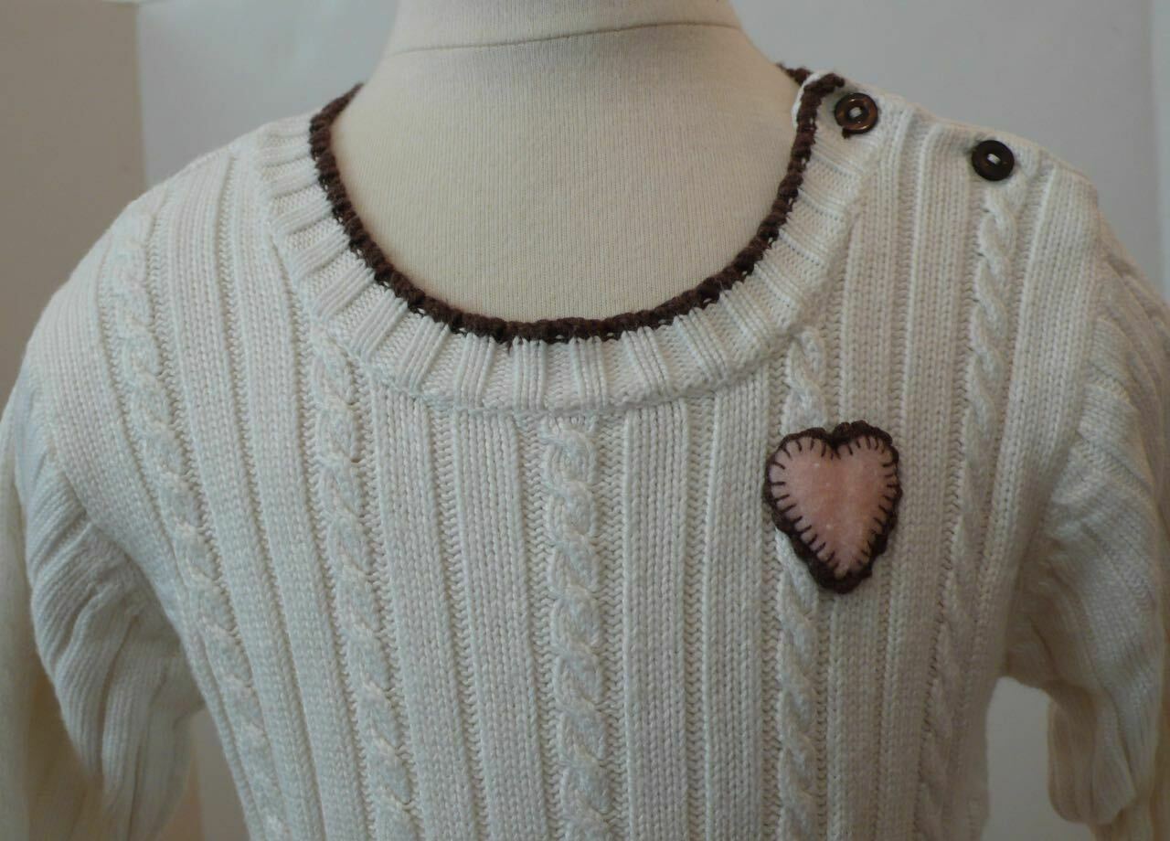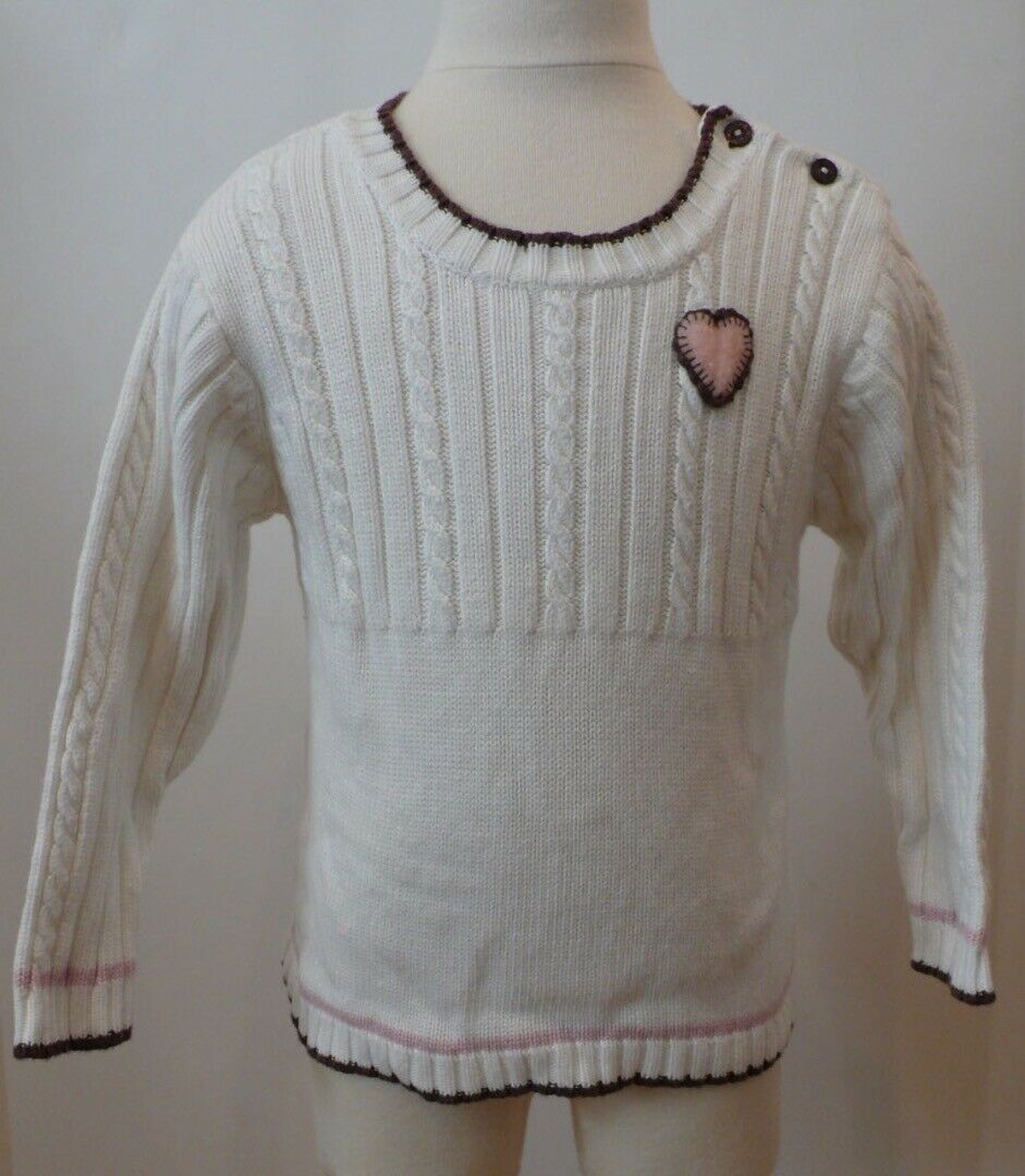 HONEYROO Girls White Sweater with Pink Heart on front Sz 18-24months