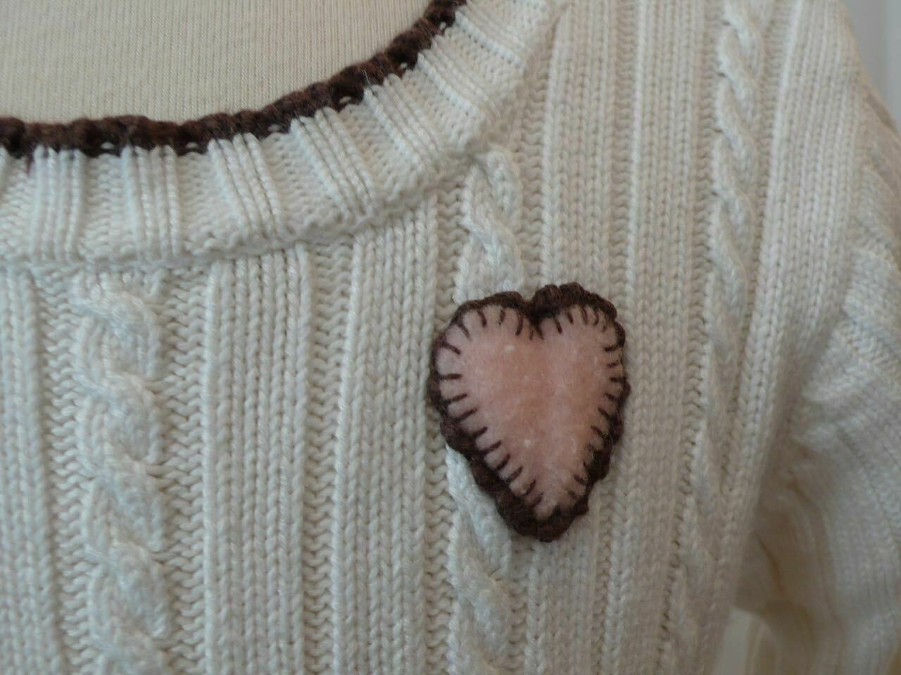 Pink with brown trim heart embroidered on chest