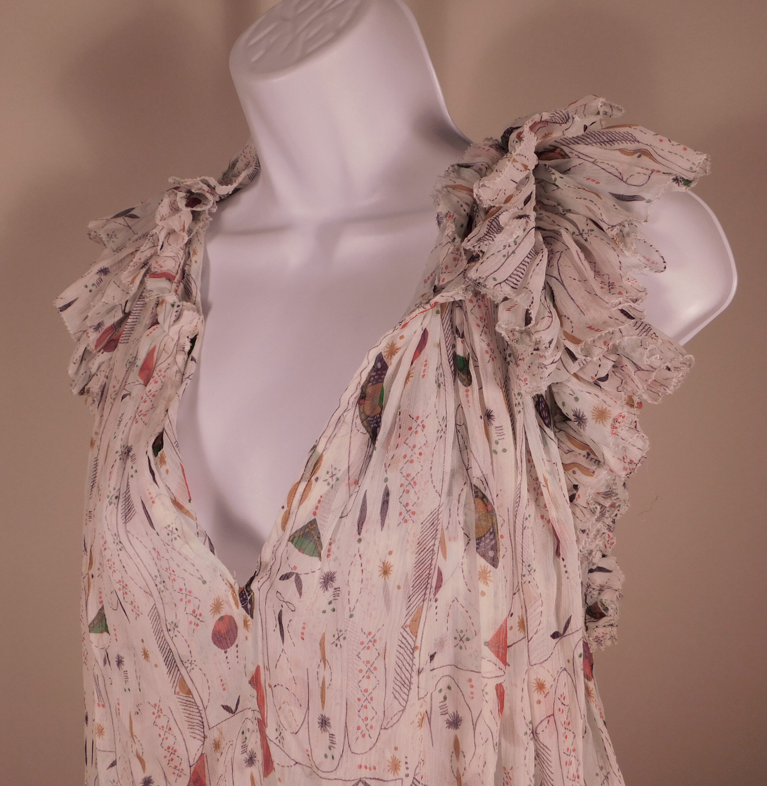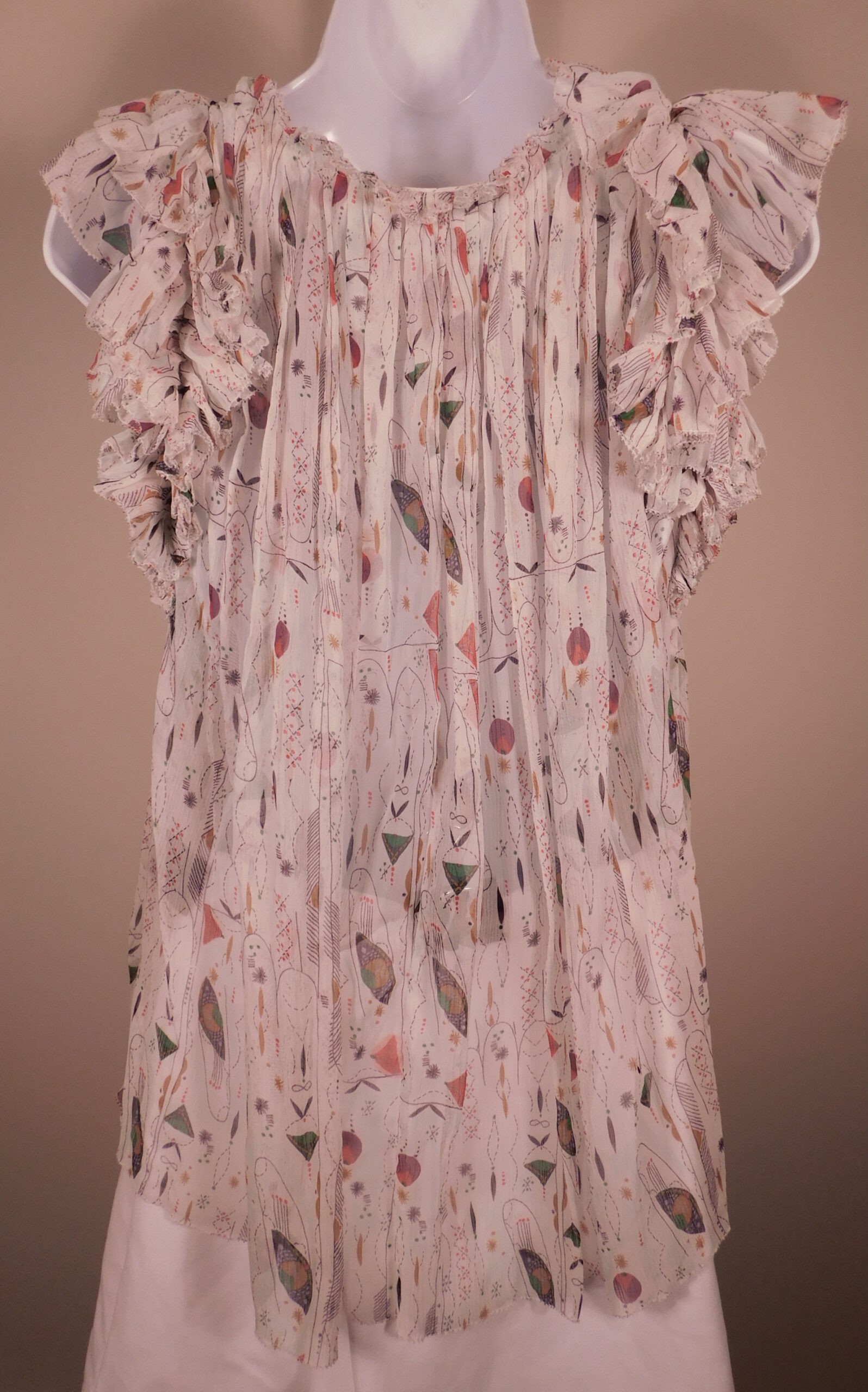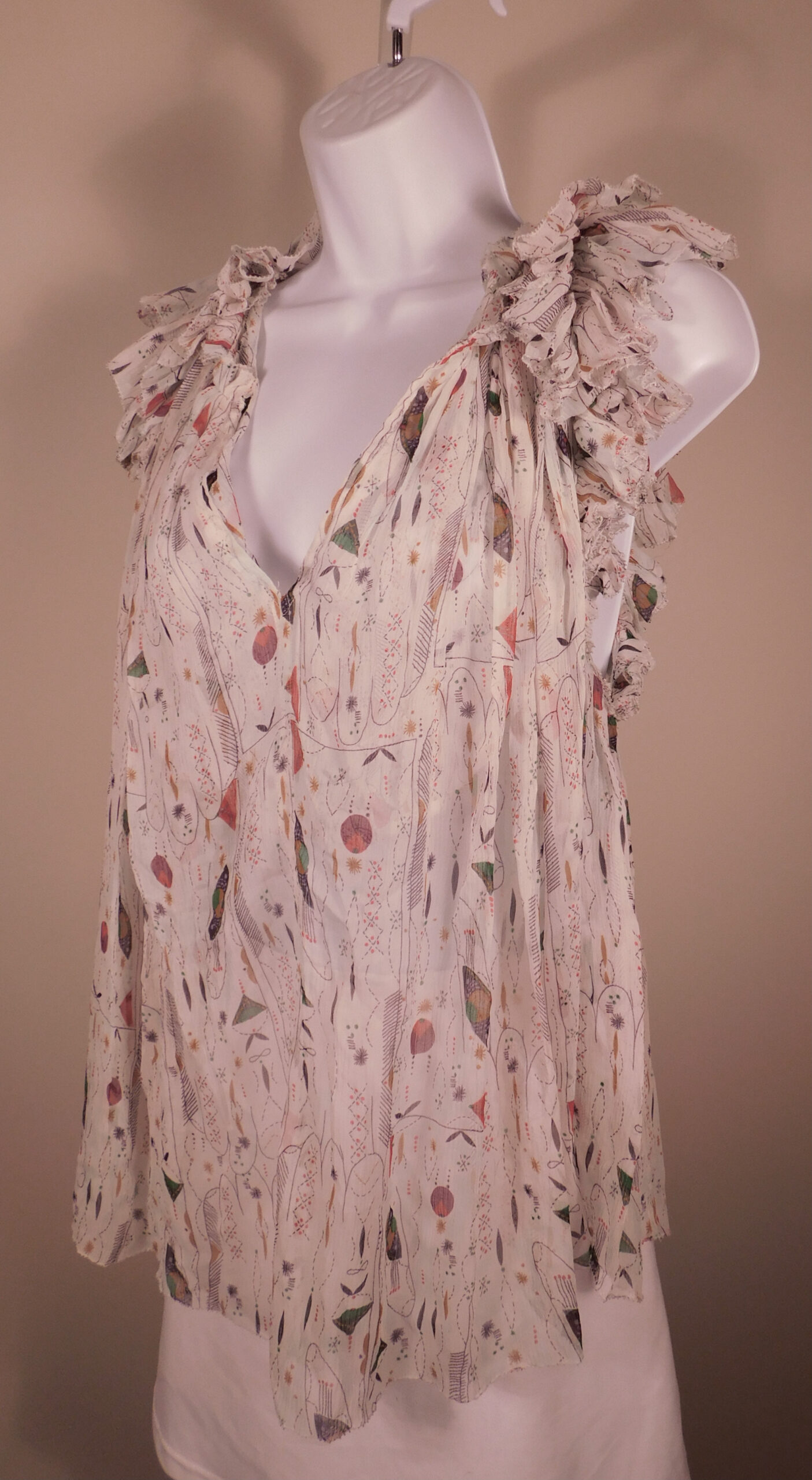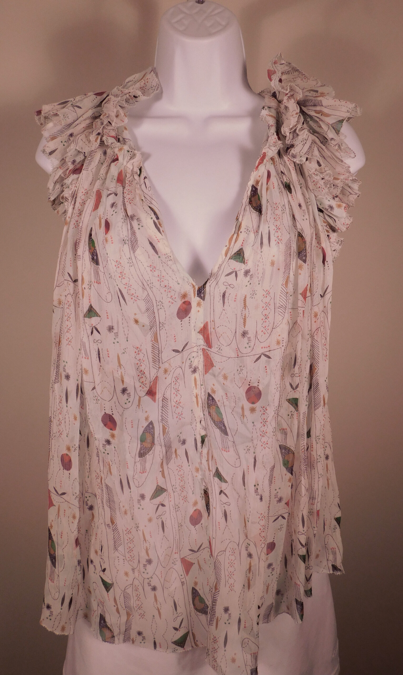 ISABEL ETOLIE MARANT Women’s White Print Silk Tissue Fabric V-Neck Blouse Shirt Sz 36 ($290)