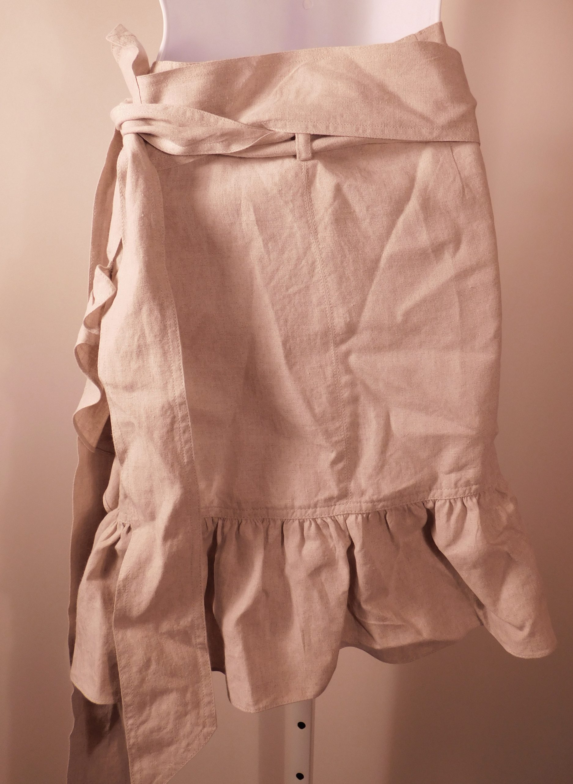 ISABEL MARANT ETOILE Women’s Tan Linen Faux Wrap Ruffle Trim Skirt Sz 38 ($395)