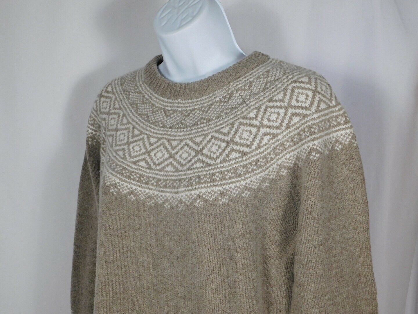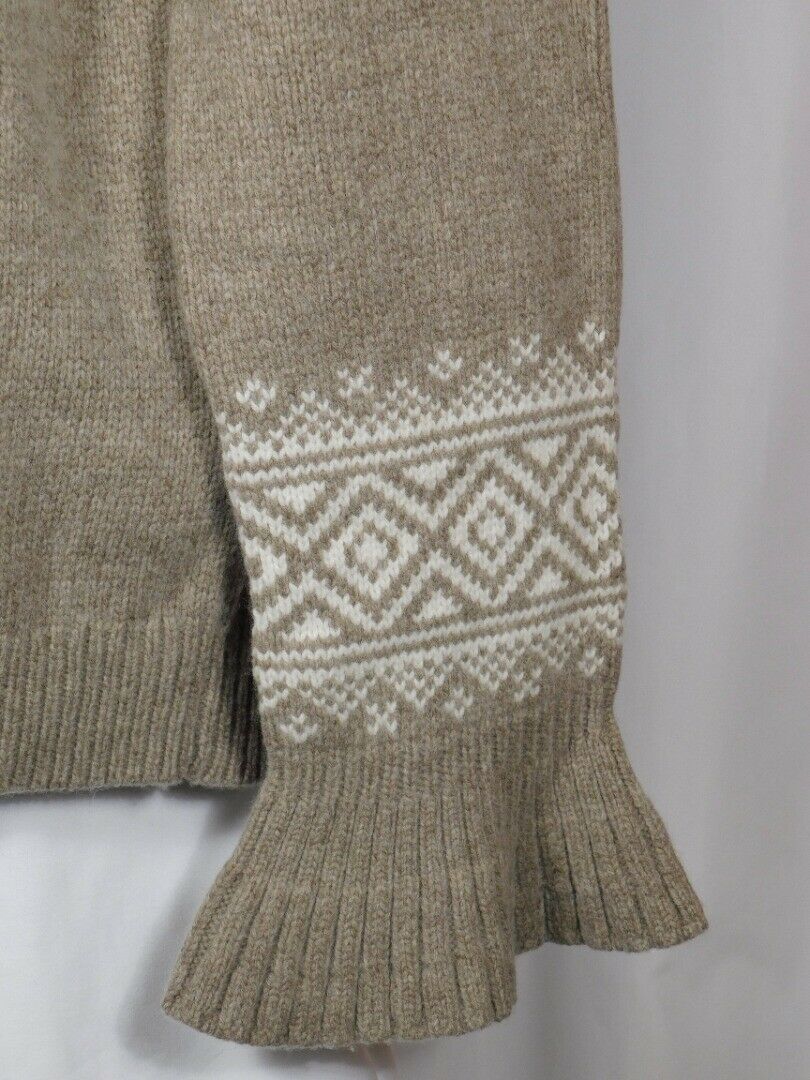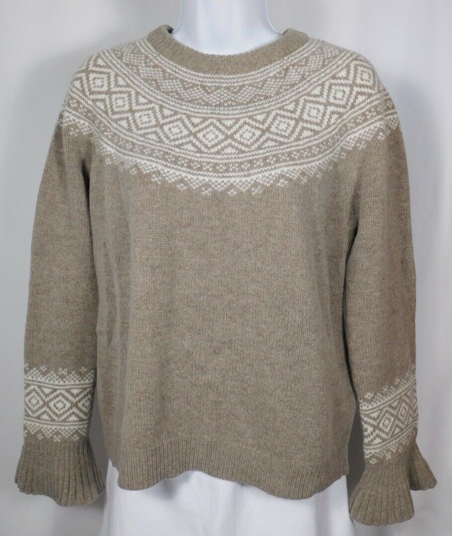 J CREW Women’s Tan Ivory Fair Isle Soft Wool Flutter Cuff Sweater Sz M