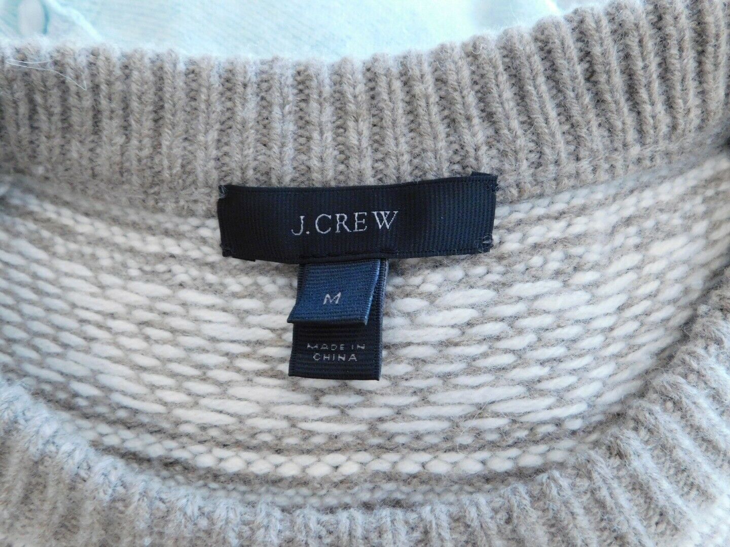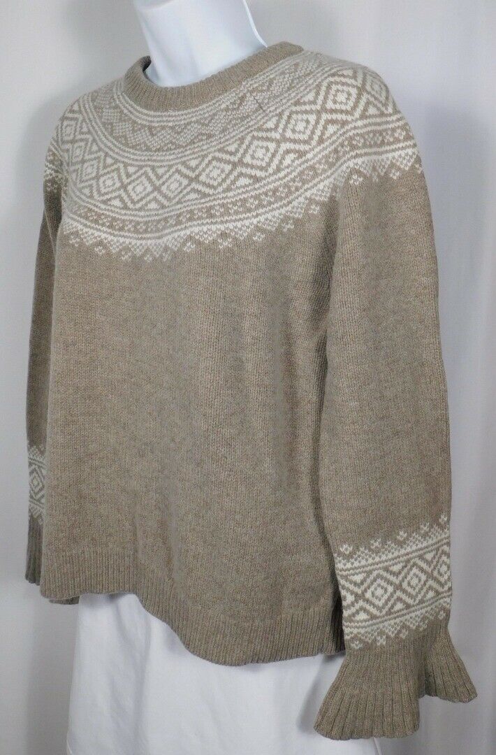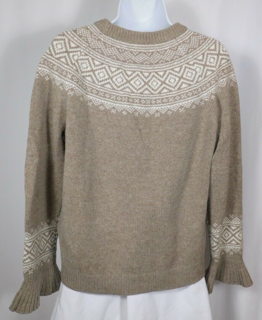 J CREW Women's Tan Ivory Fair Isle Soft Wool Flutter Cuff Sweater Sz M