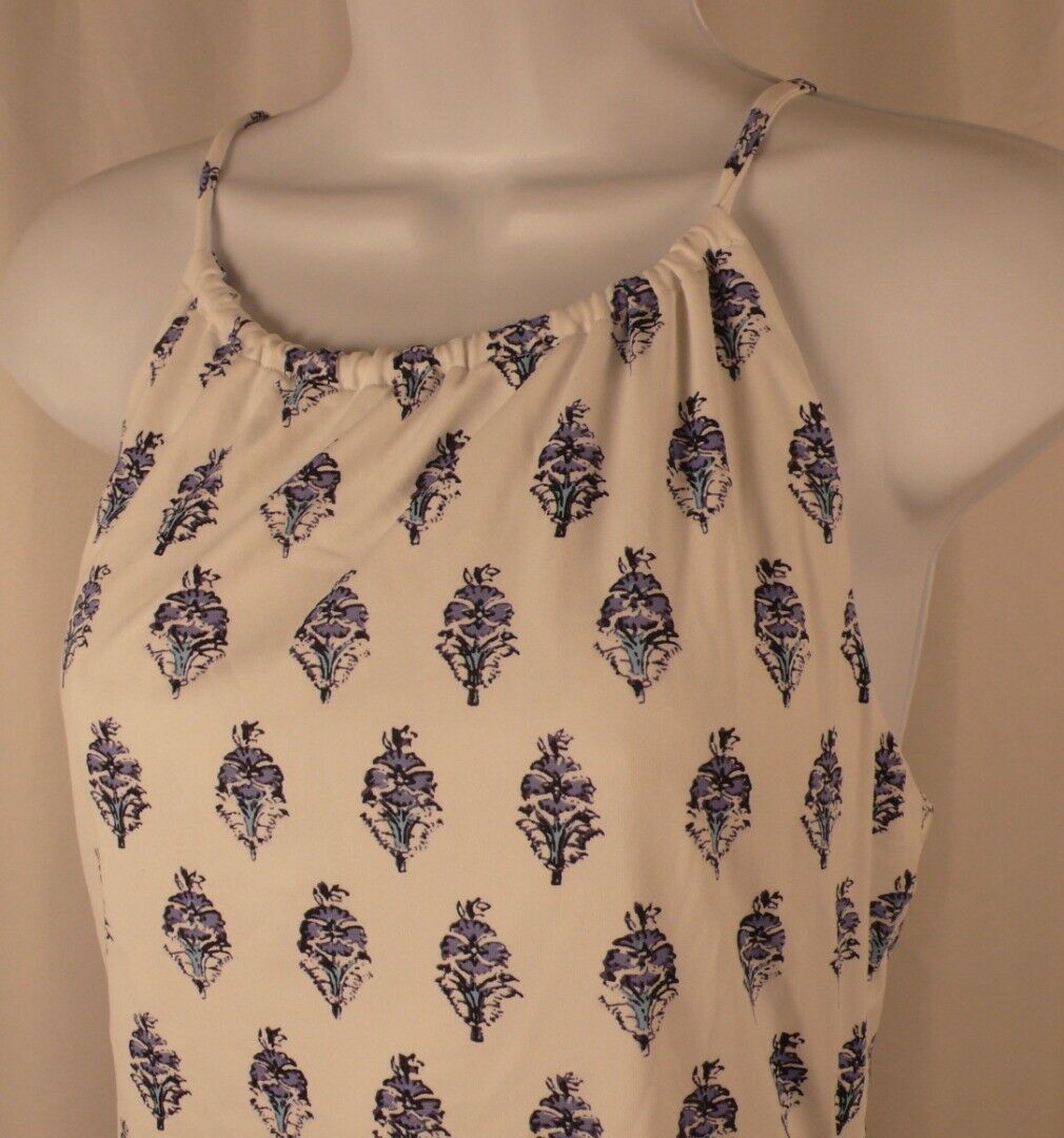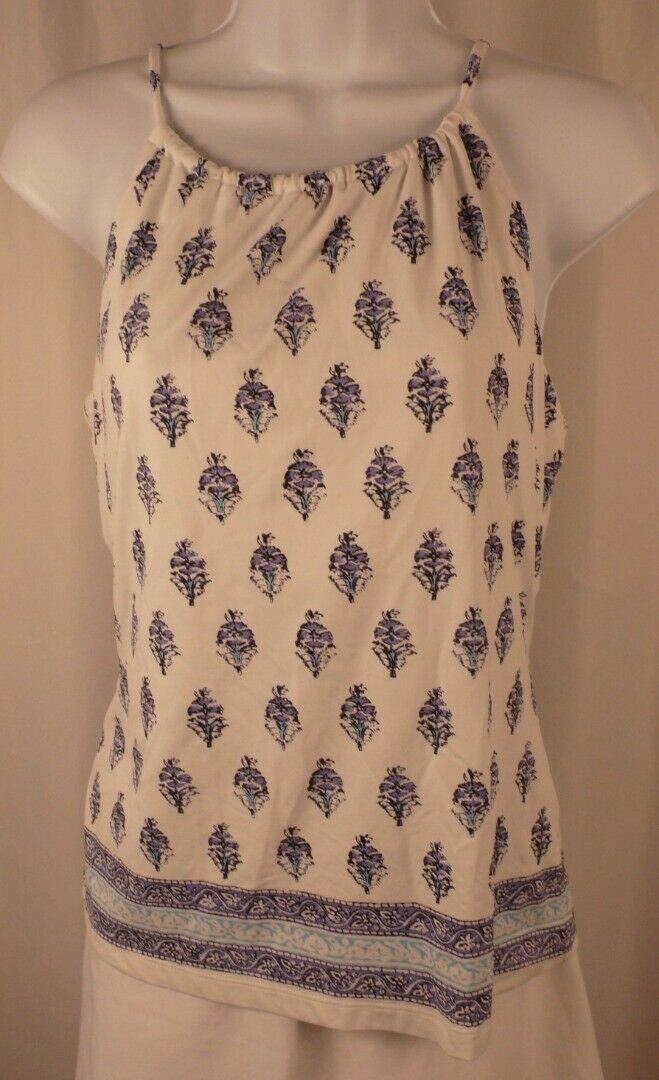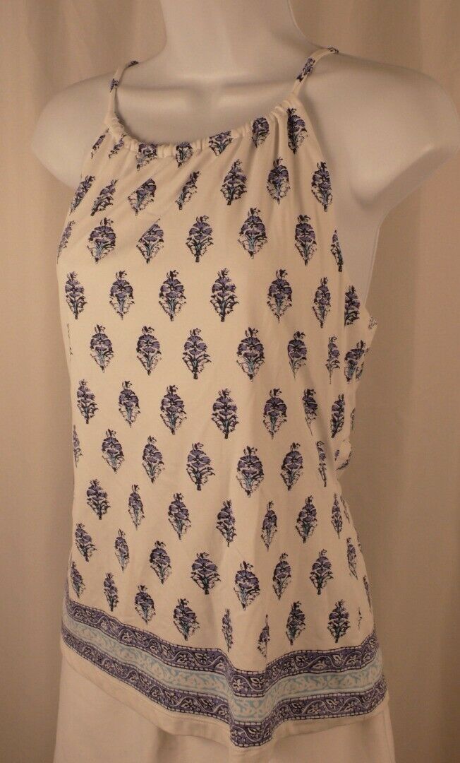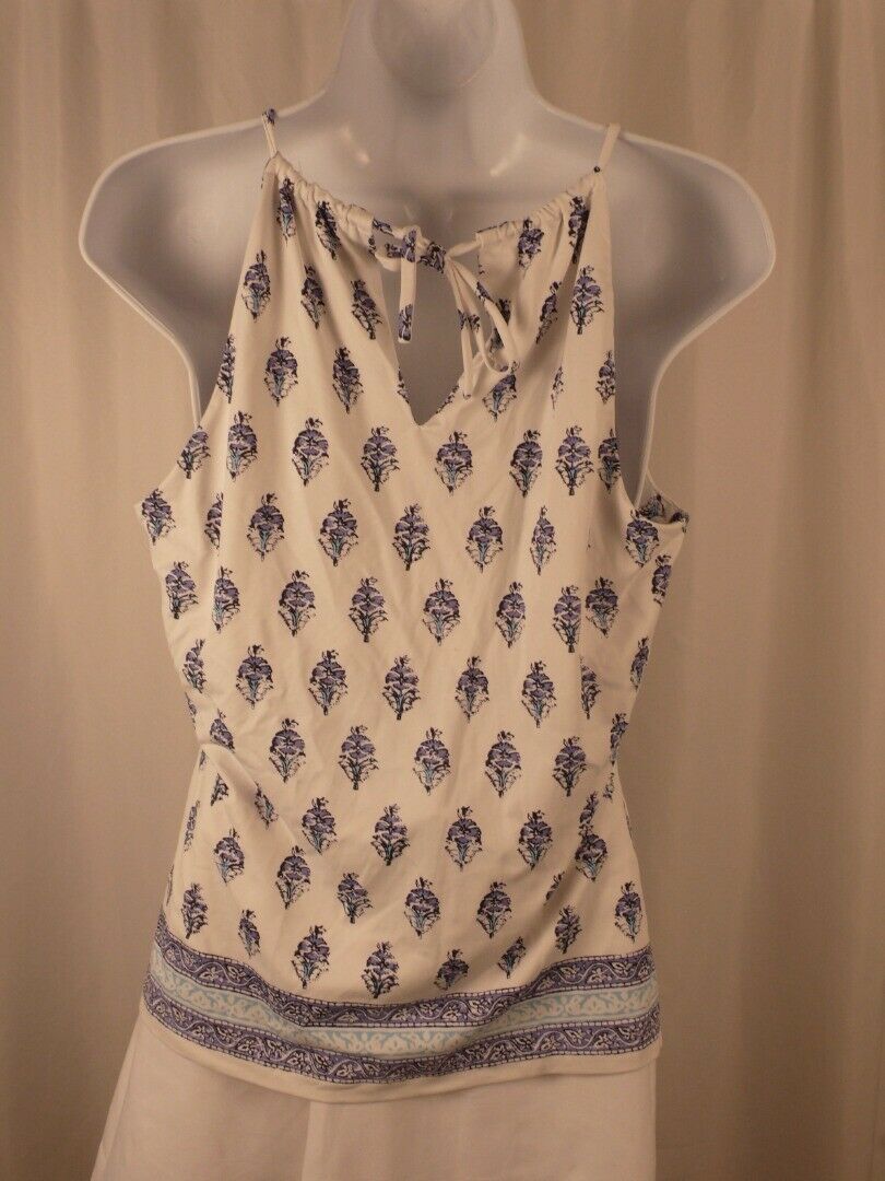 J MCLAUGHLIN Blue & White Floral Tie Back Sleeveless Blouse Sz M