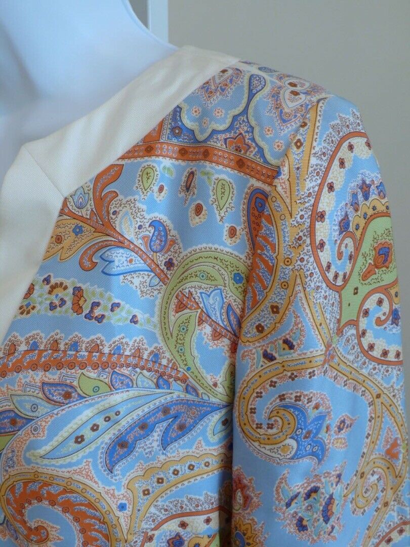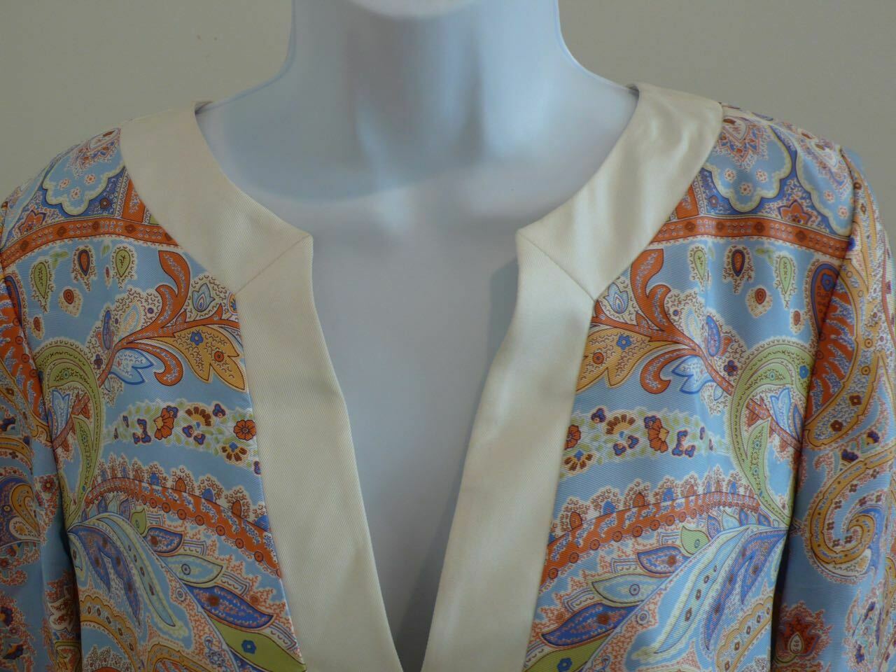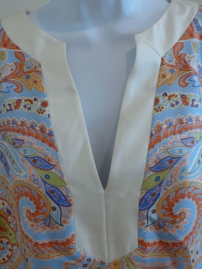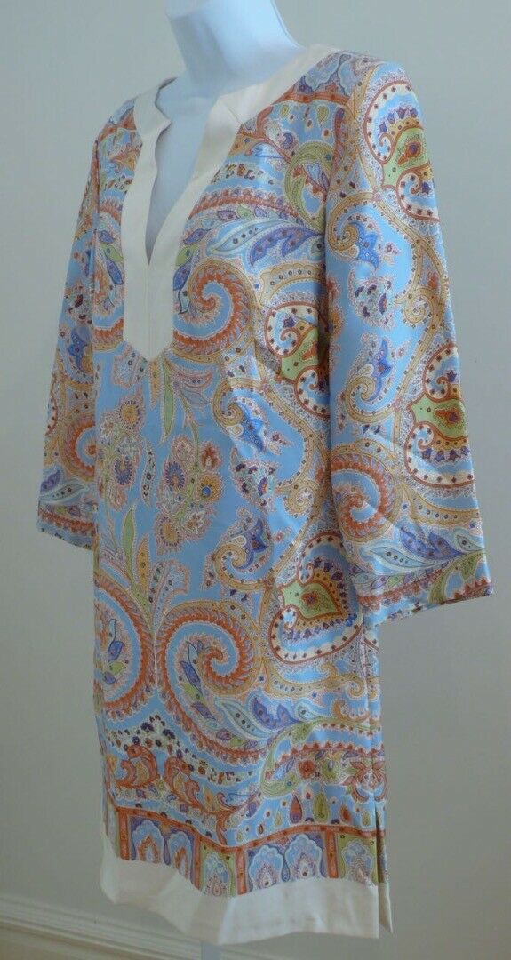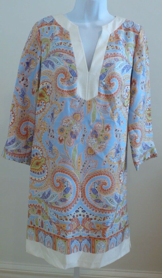 J.MCLAUGHLIN Light Blue Orange Green Paisley 3/4 Sleeve V-Neck Silk Dress Sz 2