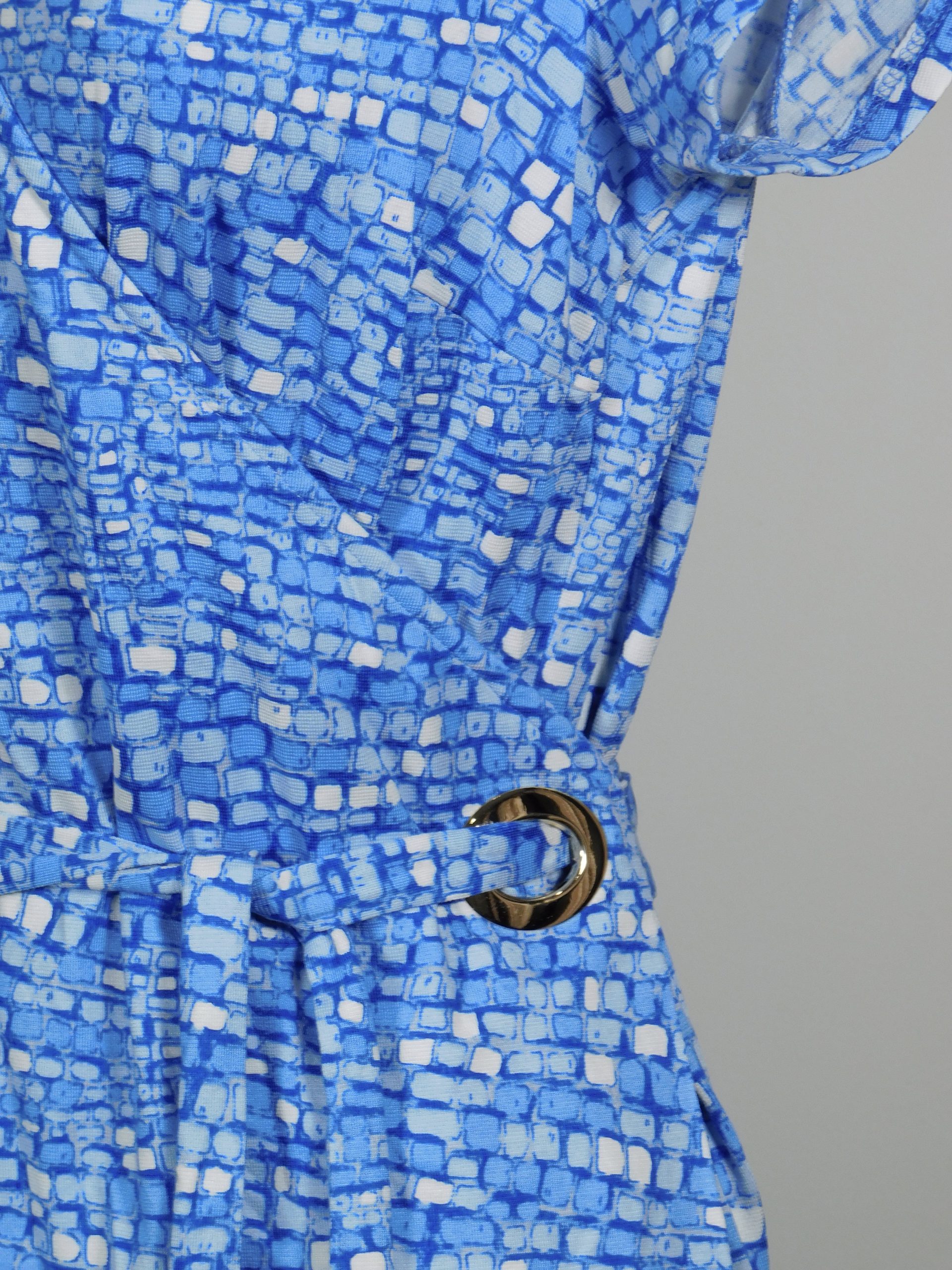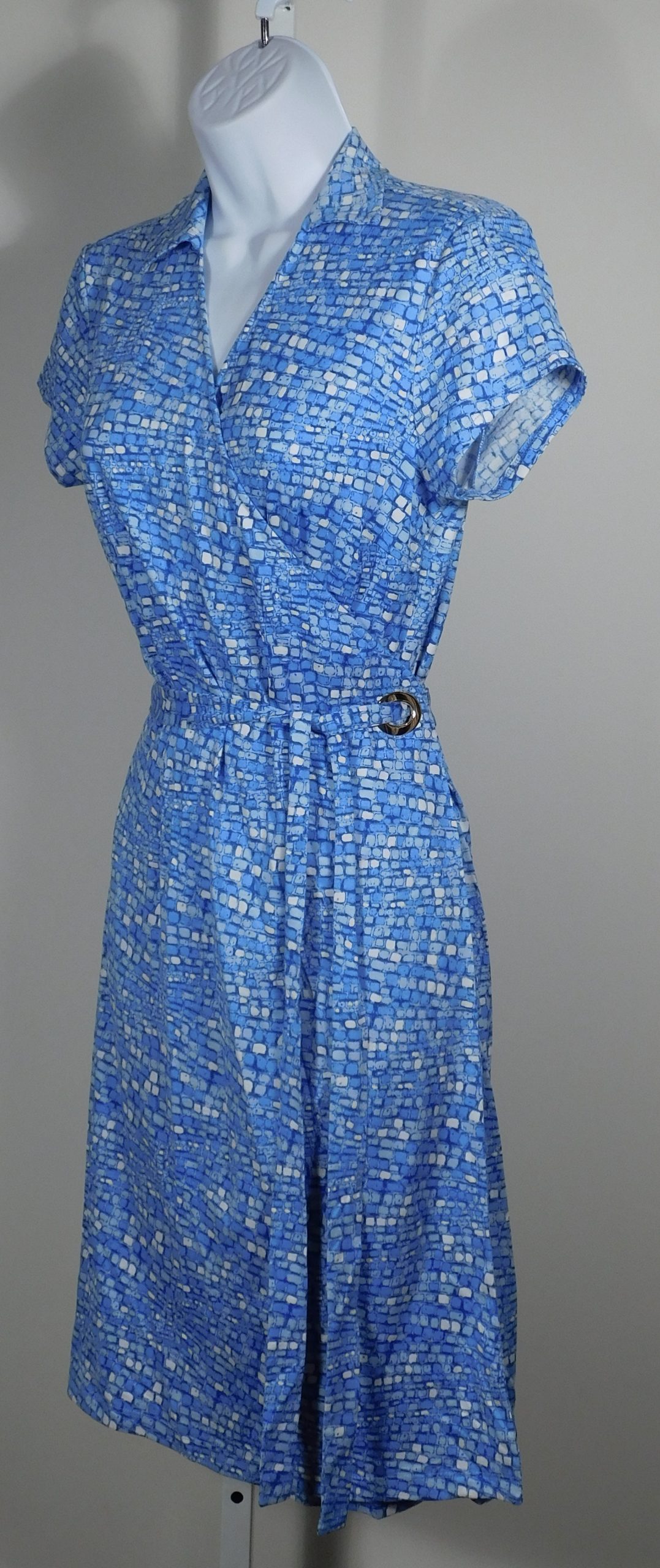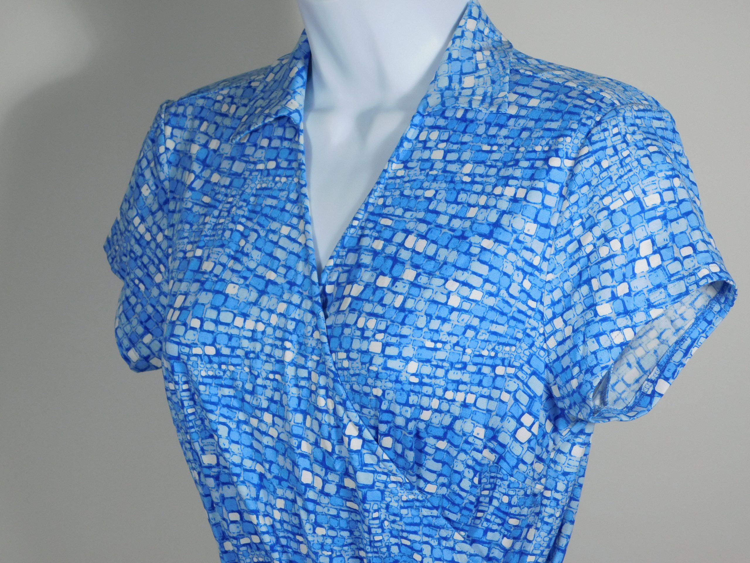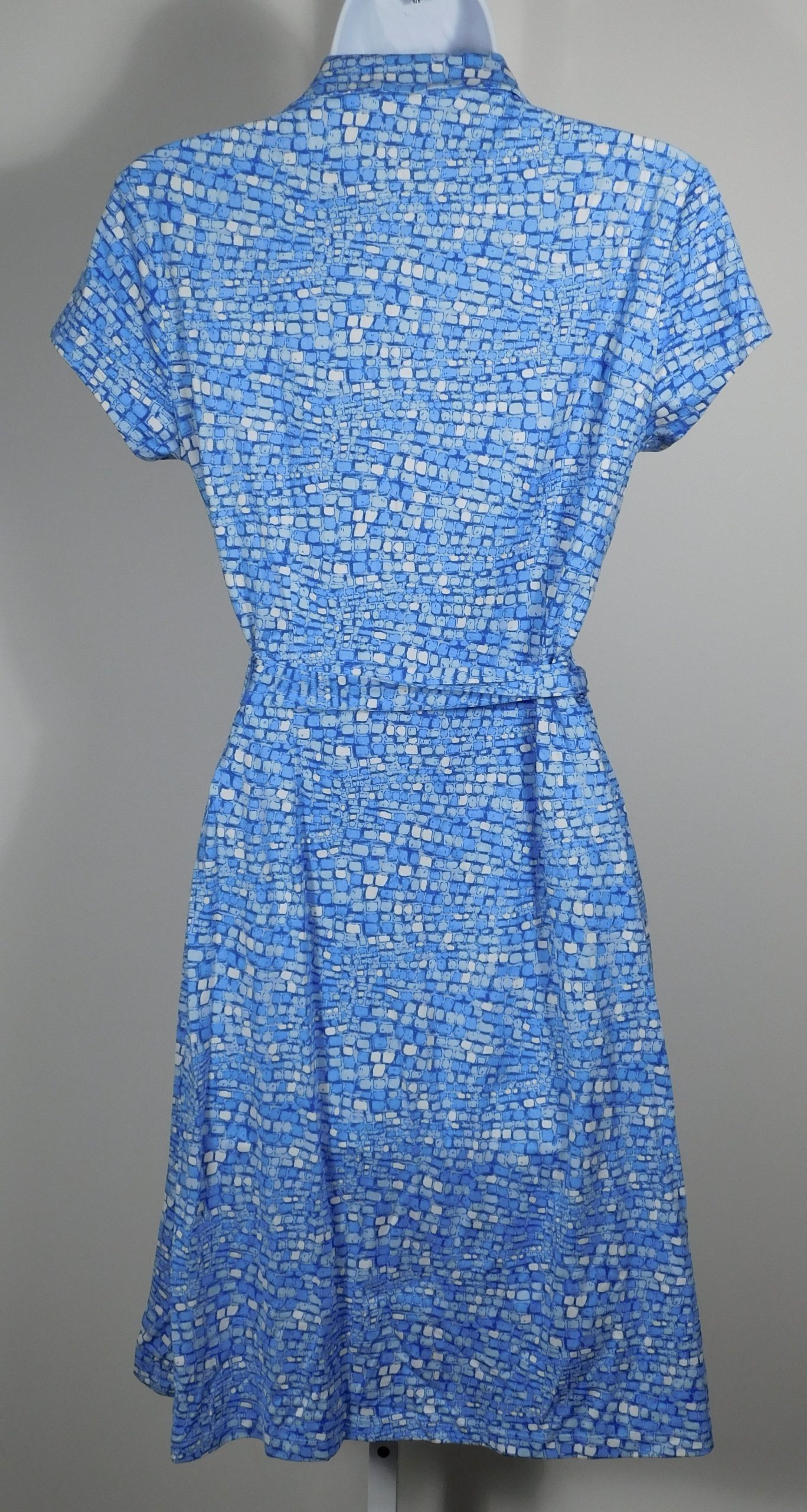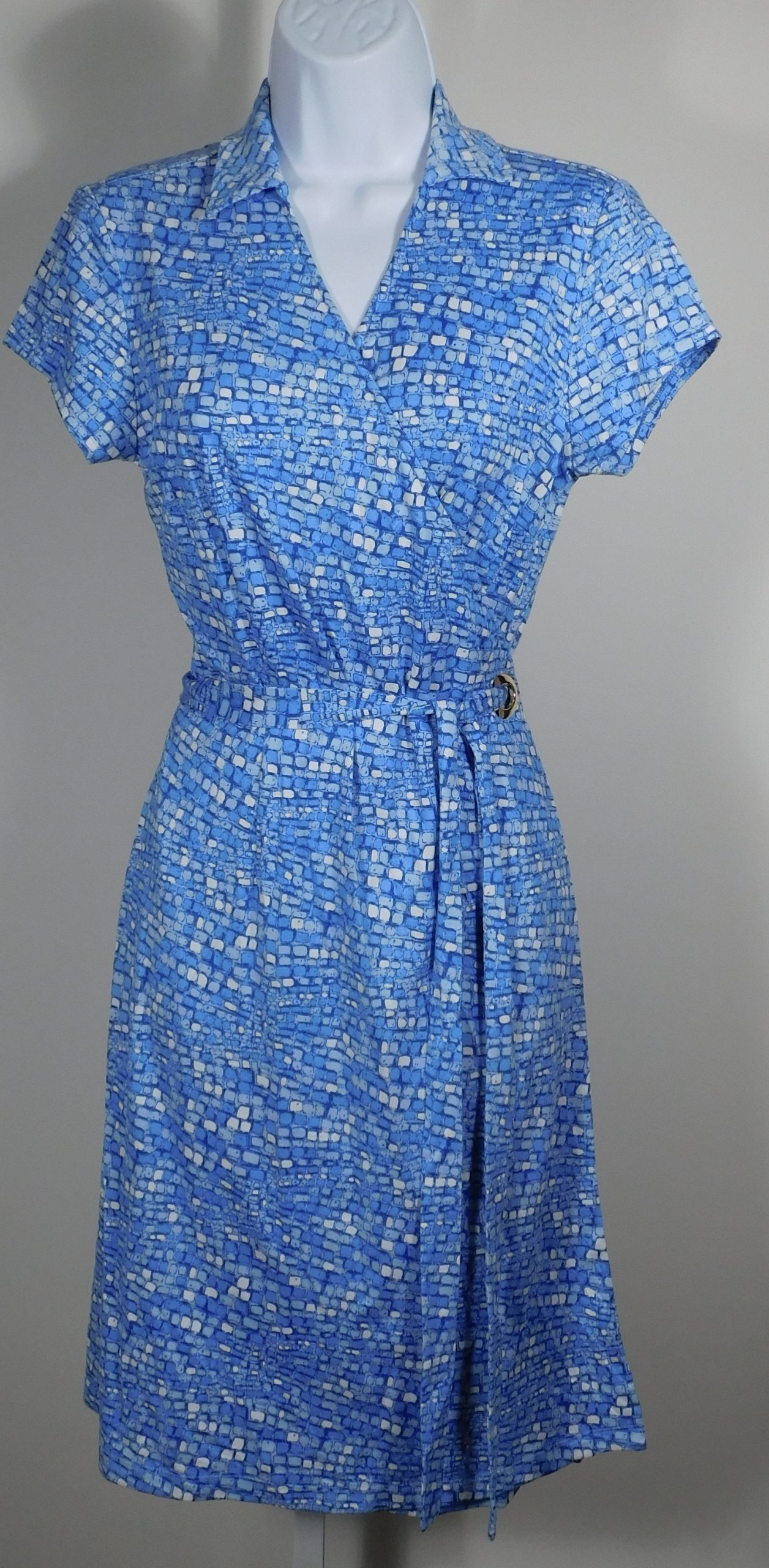 J MCLAUGHLIN Women’s Blue Turquoise Print Short Sleeve V-Neck Wrap Silk Knit Dress Sz S
