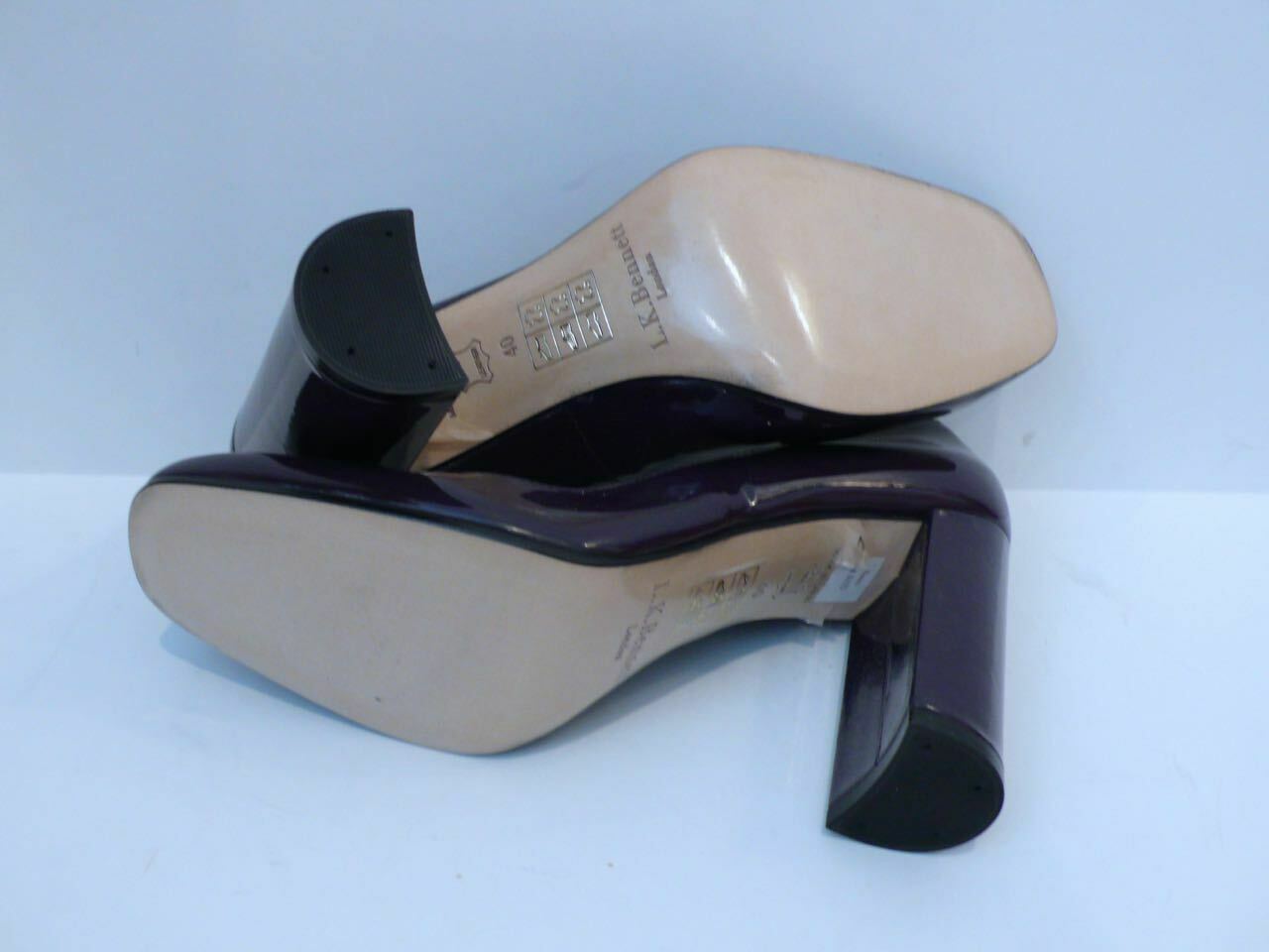 L K BENNETT Women’s Plum Patent Leather Block Heel Pump Shoes Sz 40