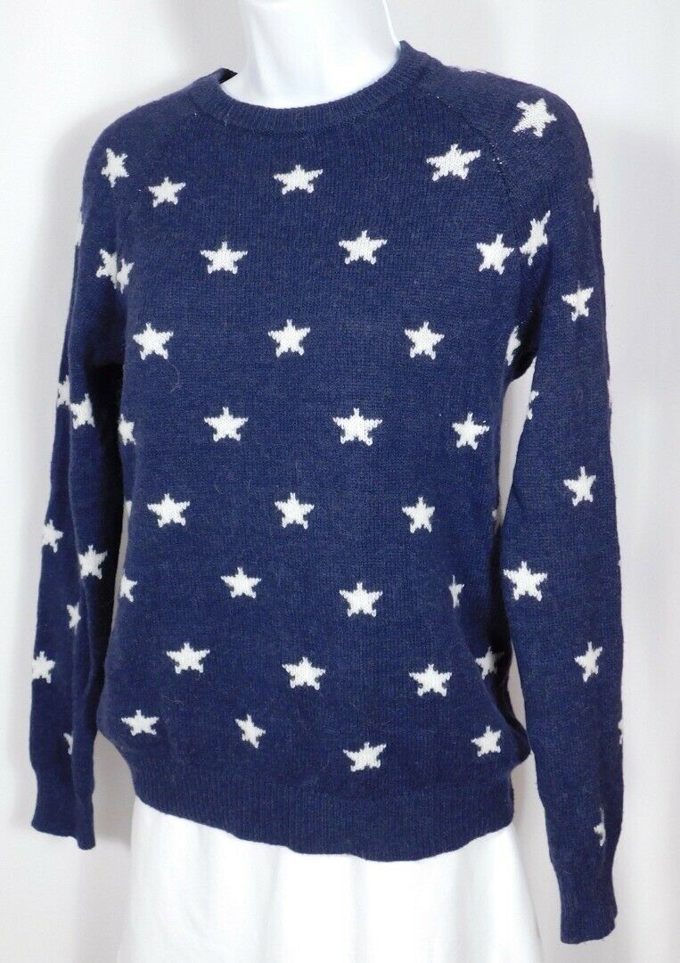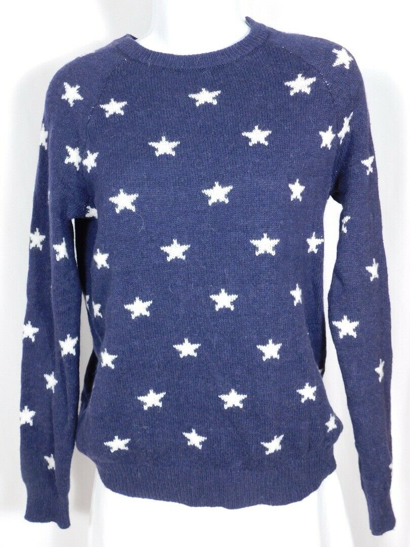 L.O.G.G. LABEL OF GRADED GOODS Women’s Blue W White Stars Crewneck Sweater Sz XS