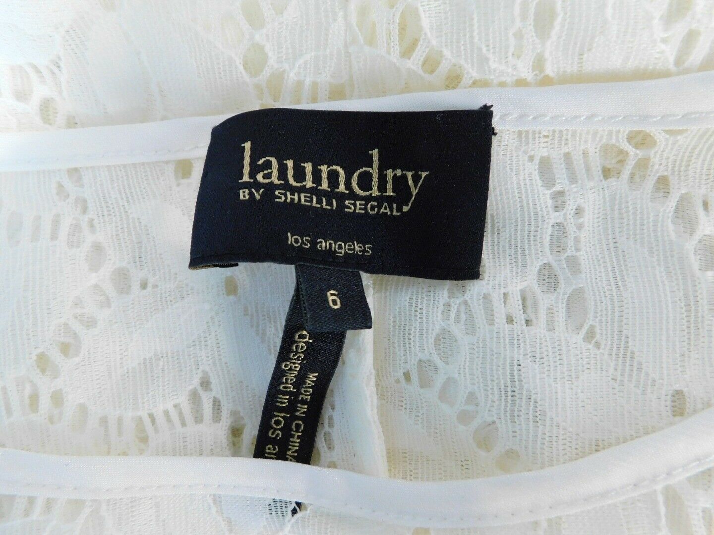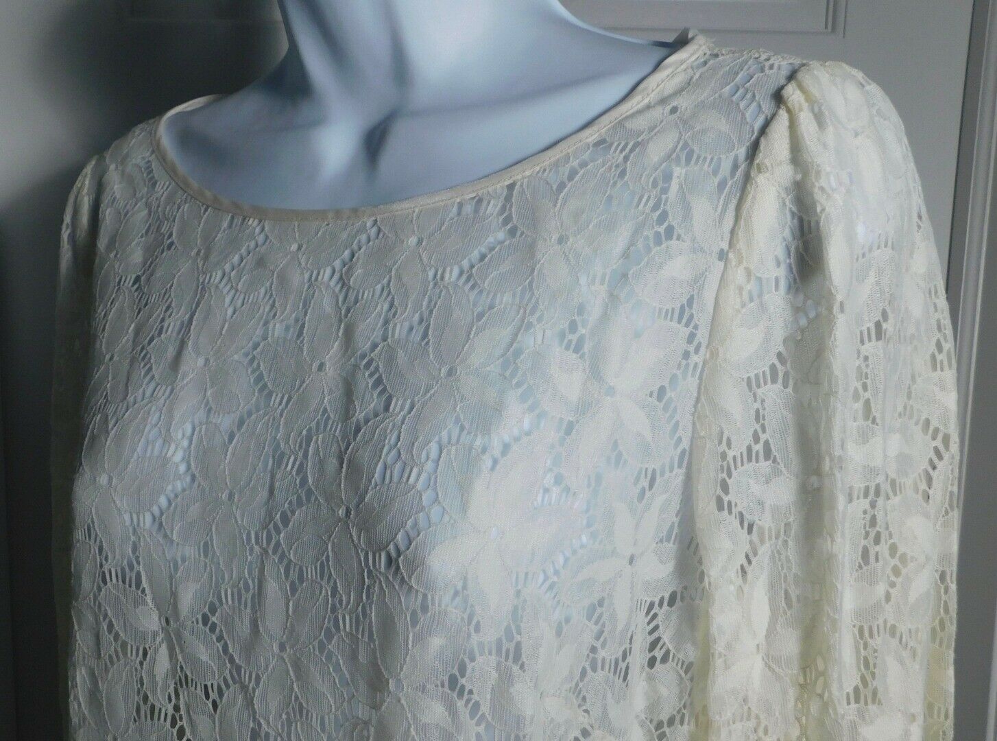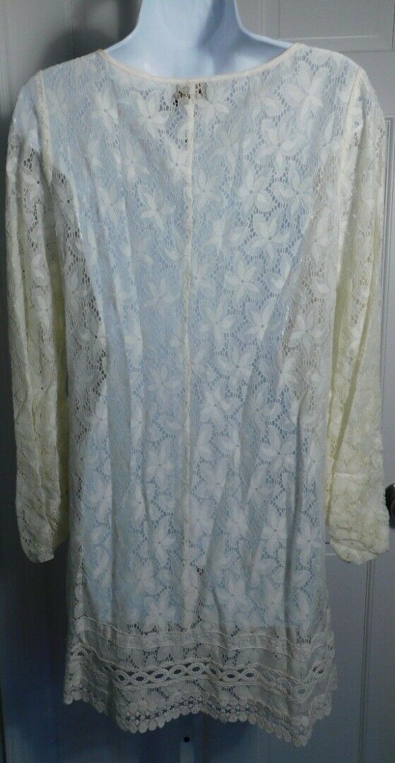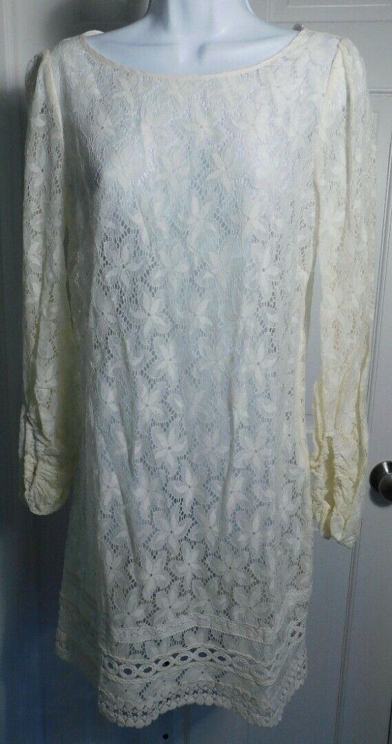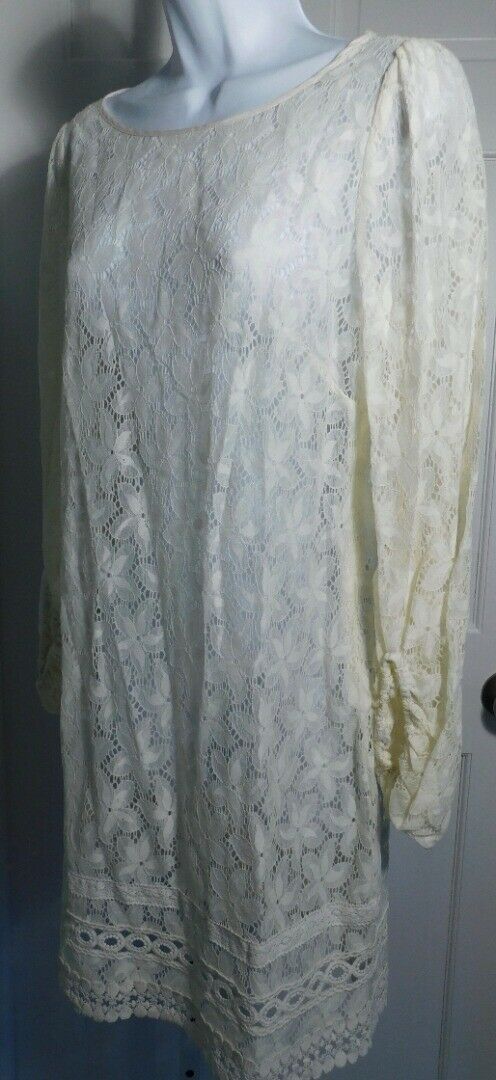 LAUNDRY BY SHELLI SEGAL Ivory Sheer Lace Long Sleeve Shift Dress Dress Sz 6