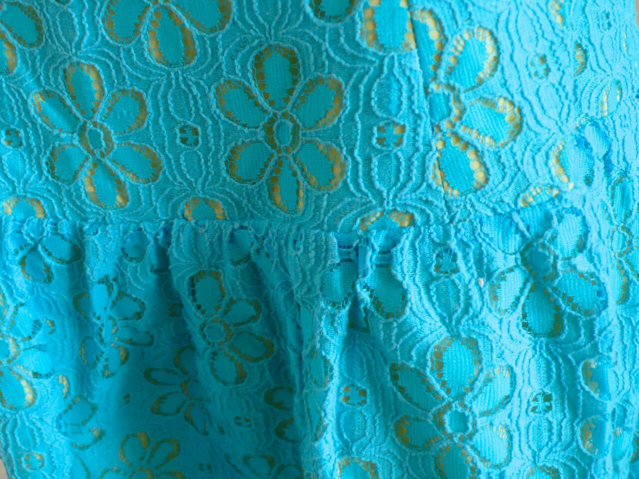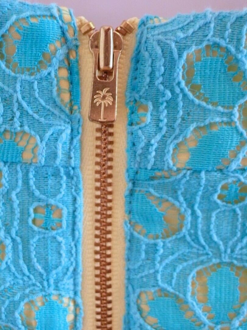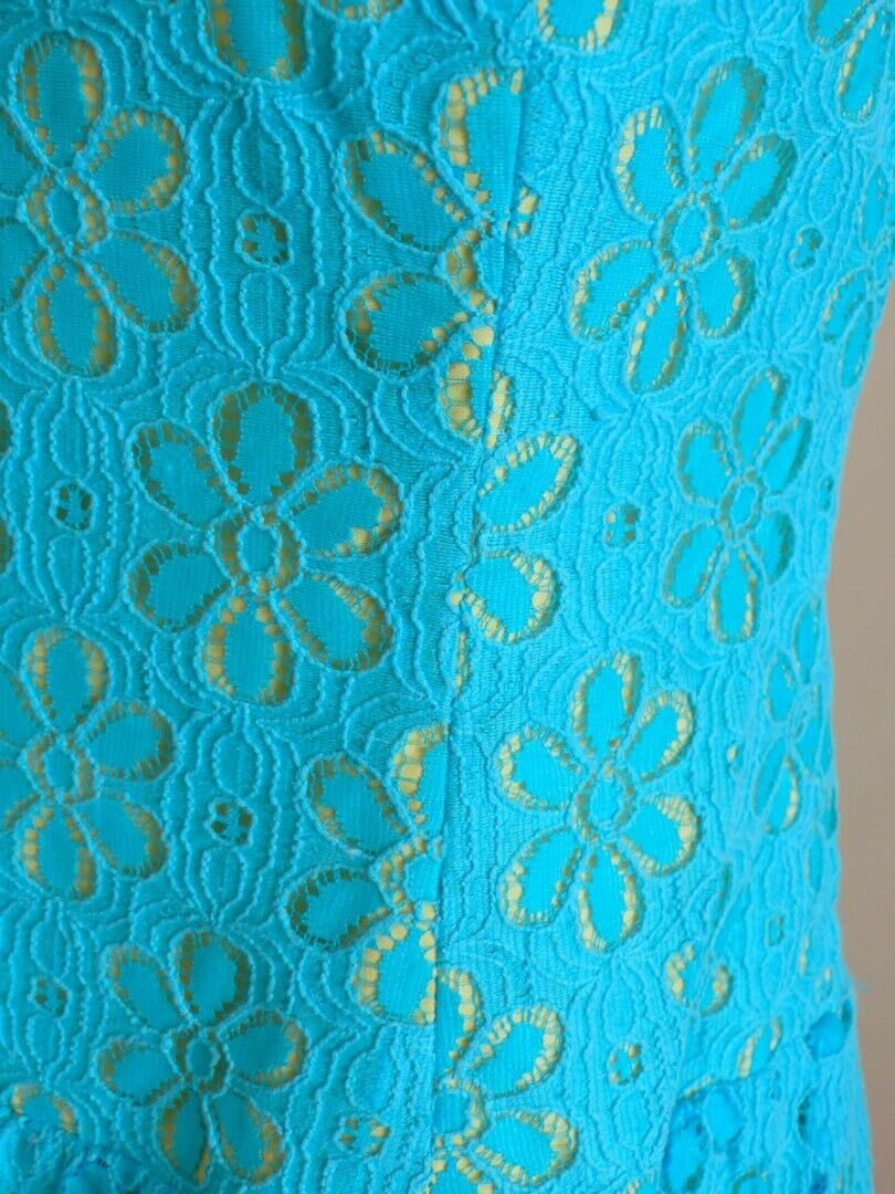 LILLY PULITZER Turquoise Floral Lace Overlay & Yellow Lined Strapless Dress Sz 4
