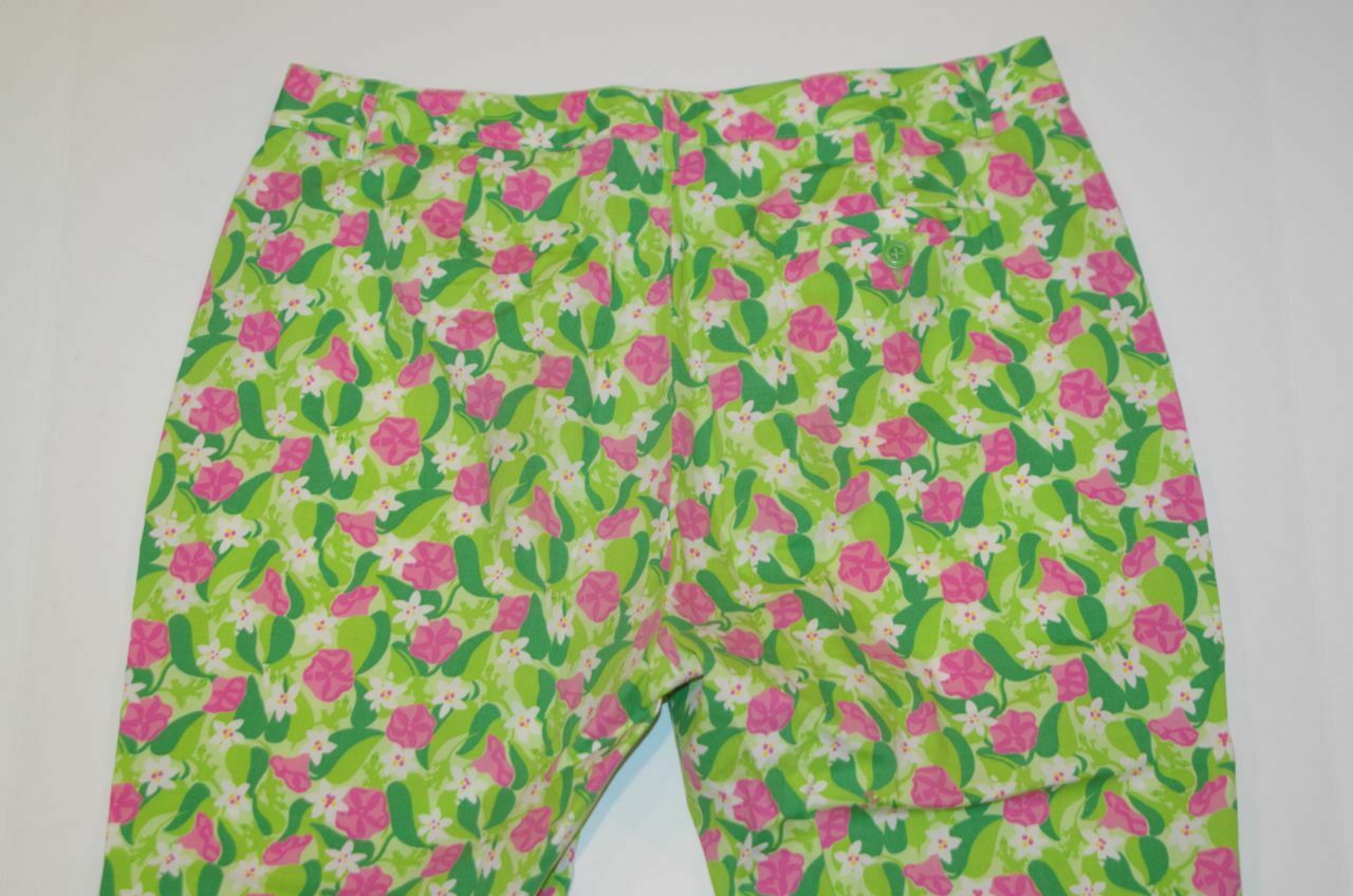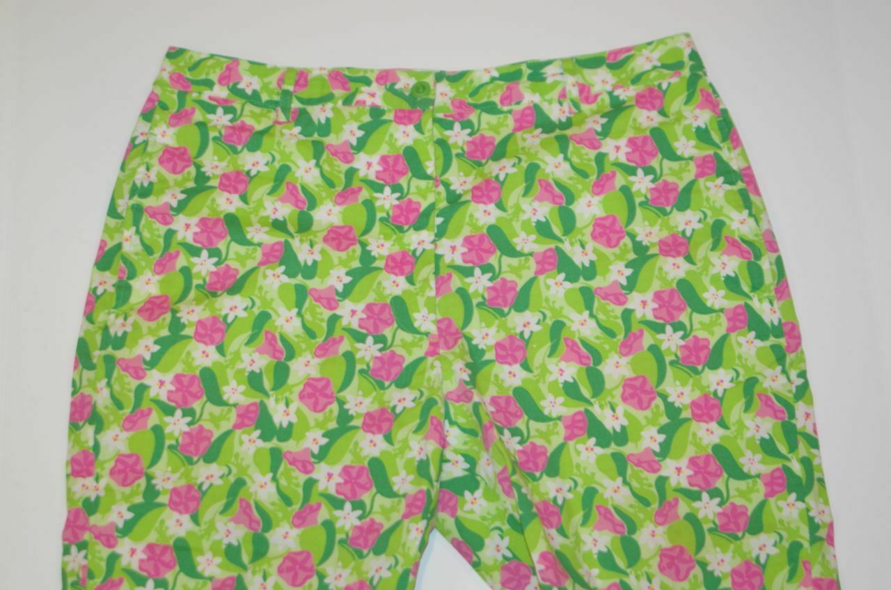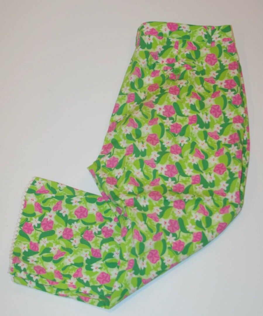 LILLY PULITZER Women's Green Pink Lilly Print Cotton Stretch Crop Pant Sz 8