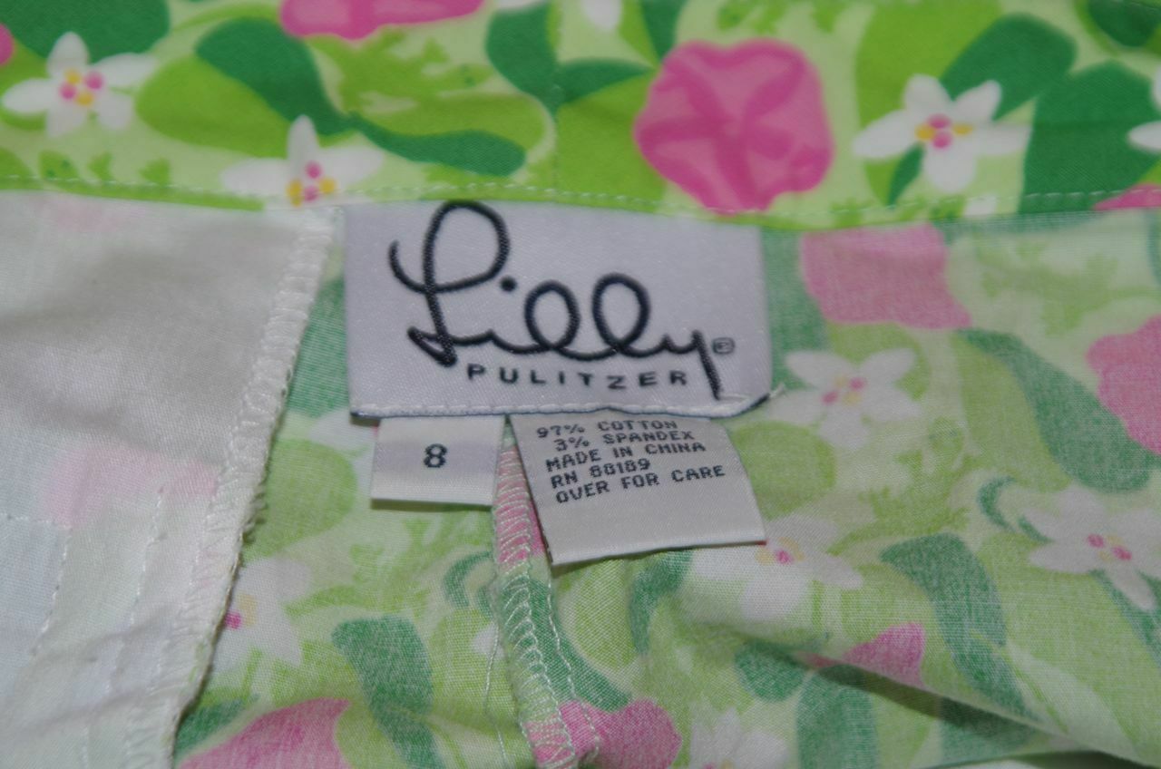 LILLY PULITZER Women’s Green Pink Lilly Print Cotton Stretch Crop Pant Sz 8