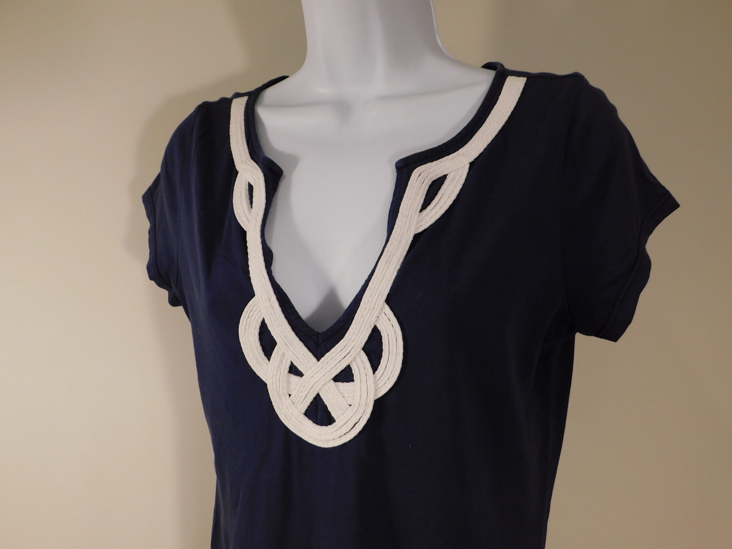 LILLY PULITZER Women’s Navy Blue White Trim V-Neck Cotton Knit Short Sleeve Dress Sz M
