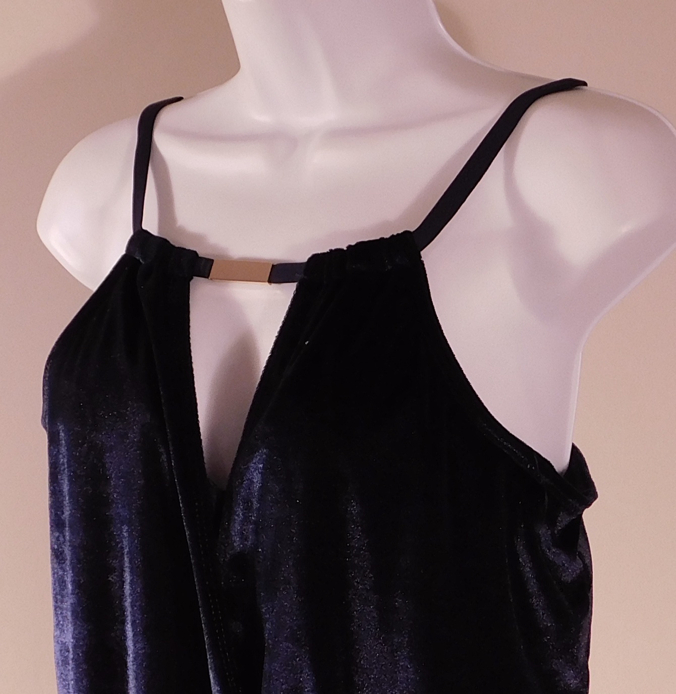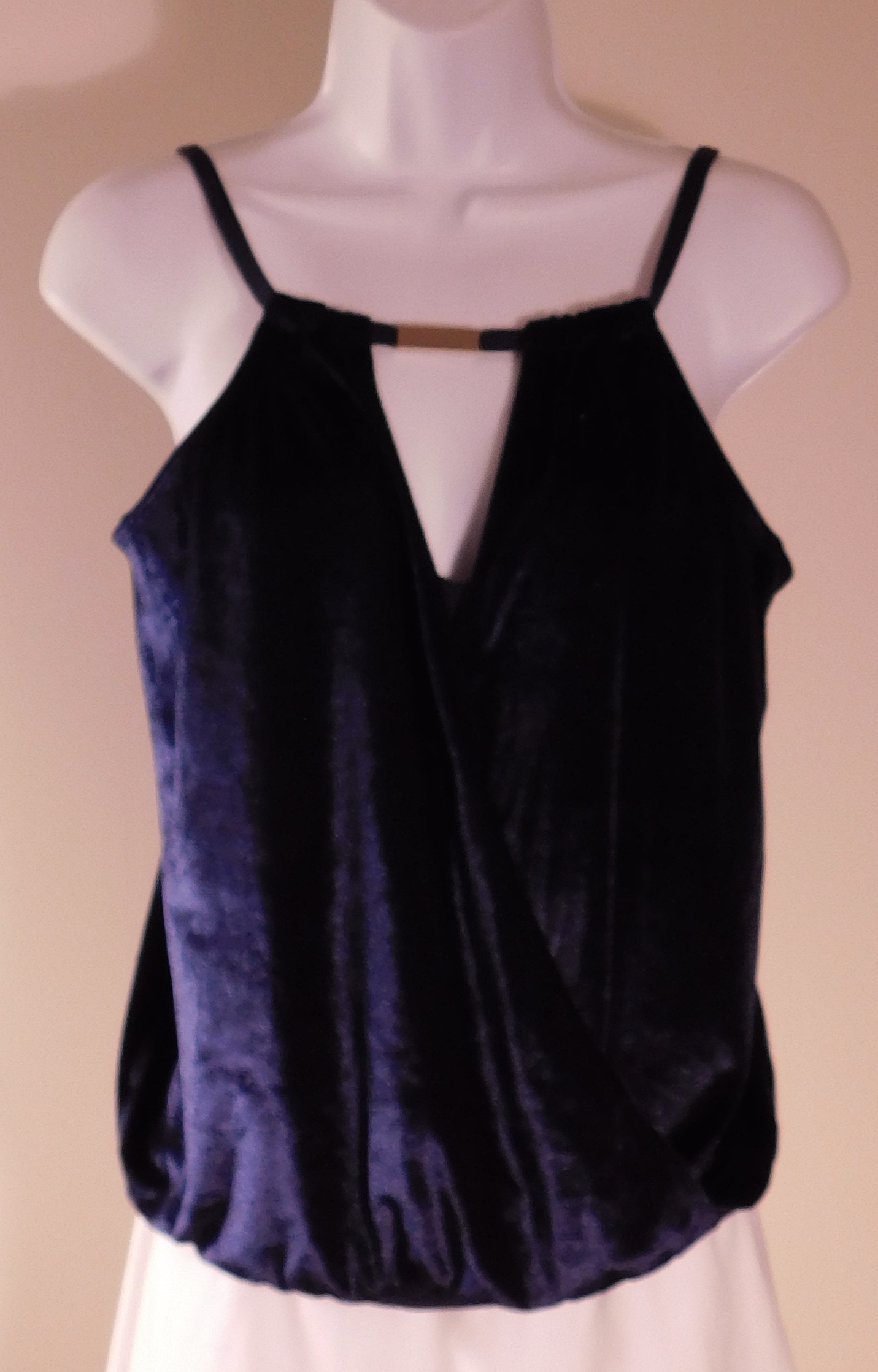 LUXE BY LISA VOGEL NWT Women’s Blue Halter Draped-Keyhole Velvet Tankini Swim Top Sz M ($98)