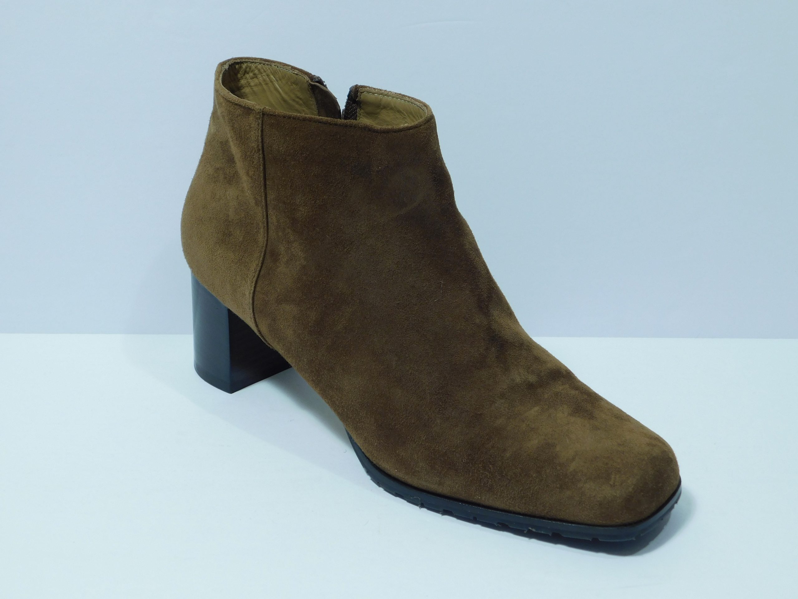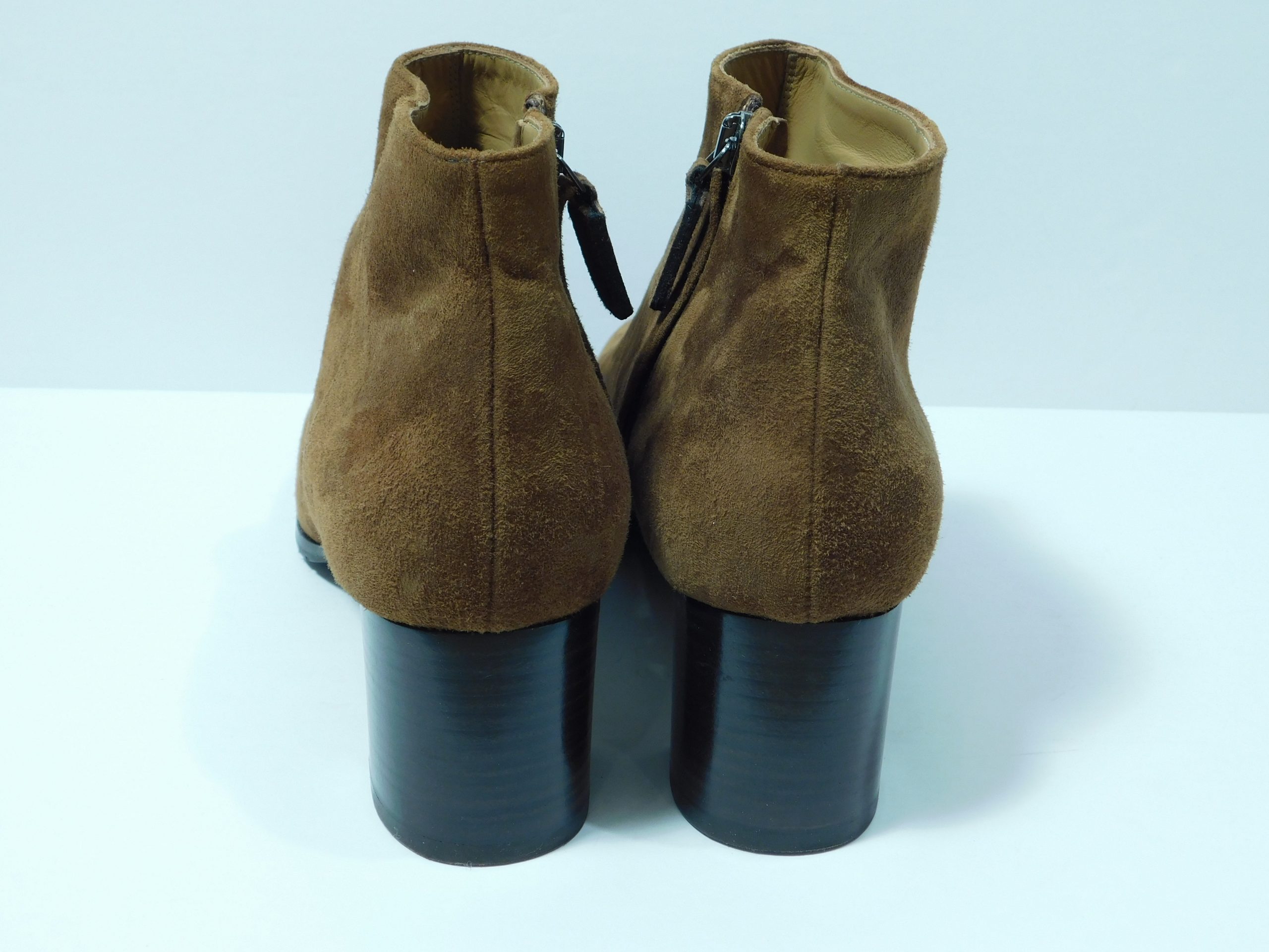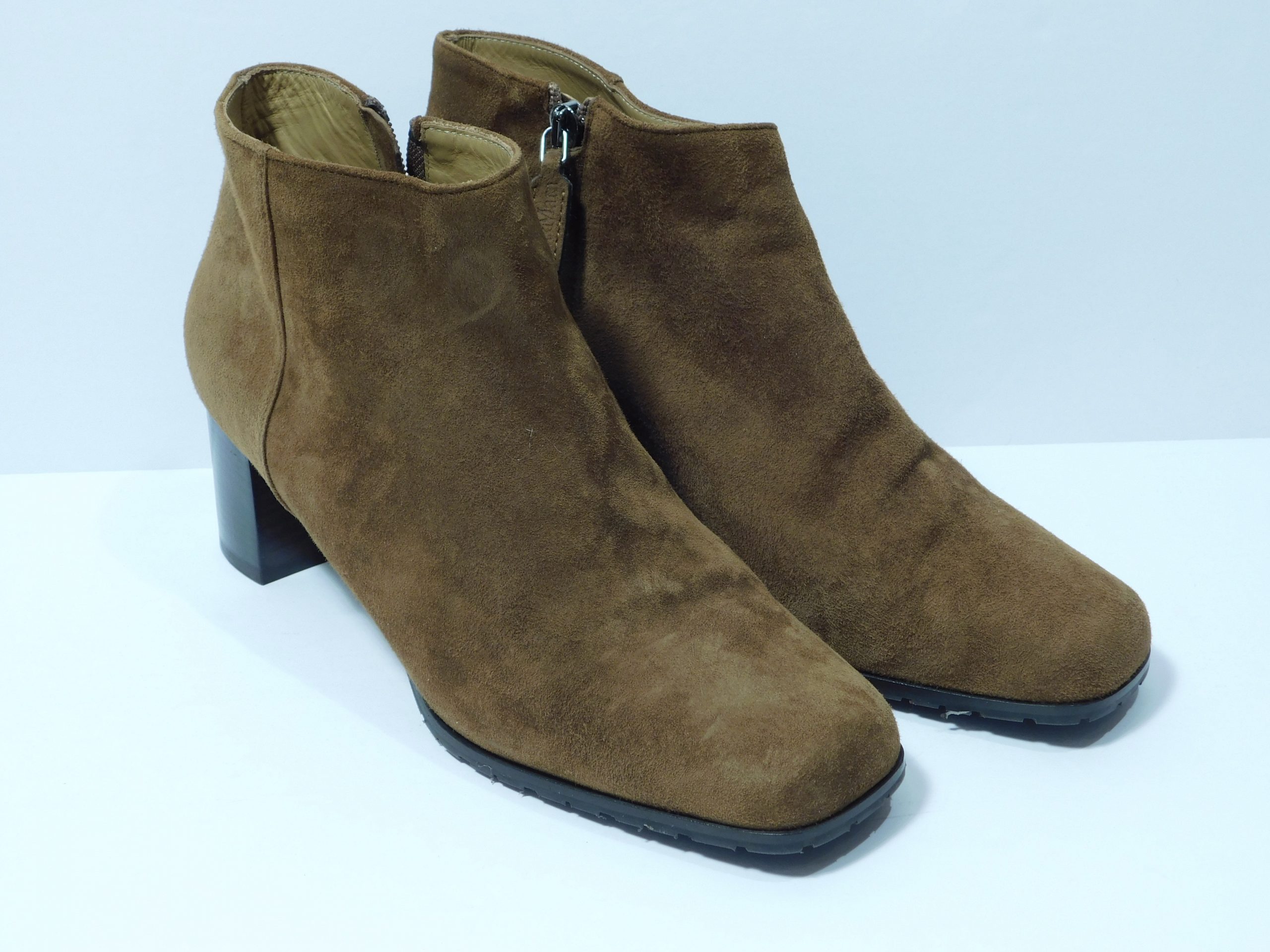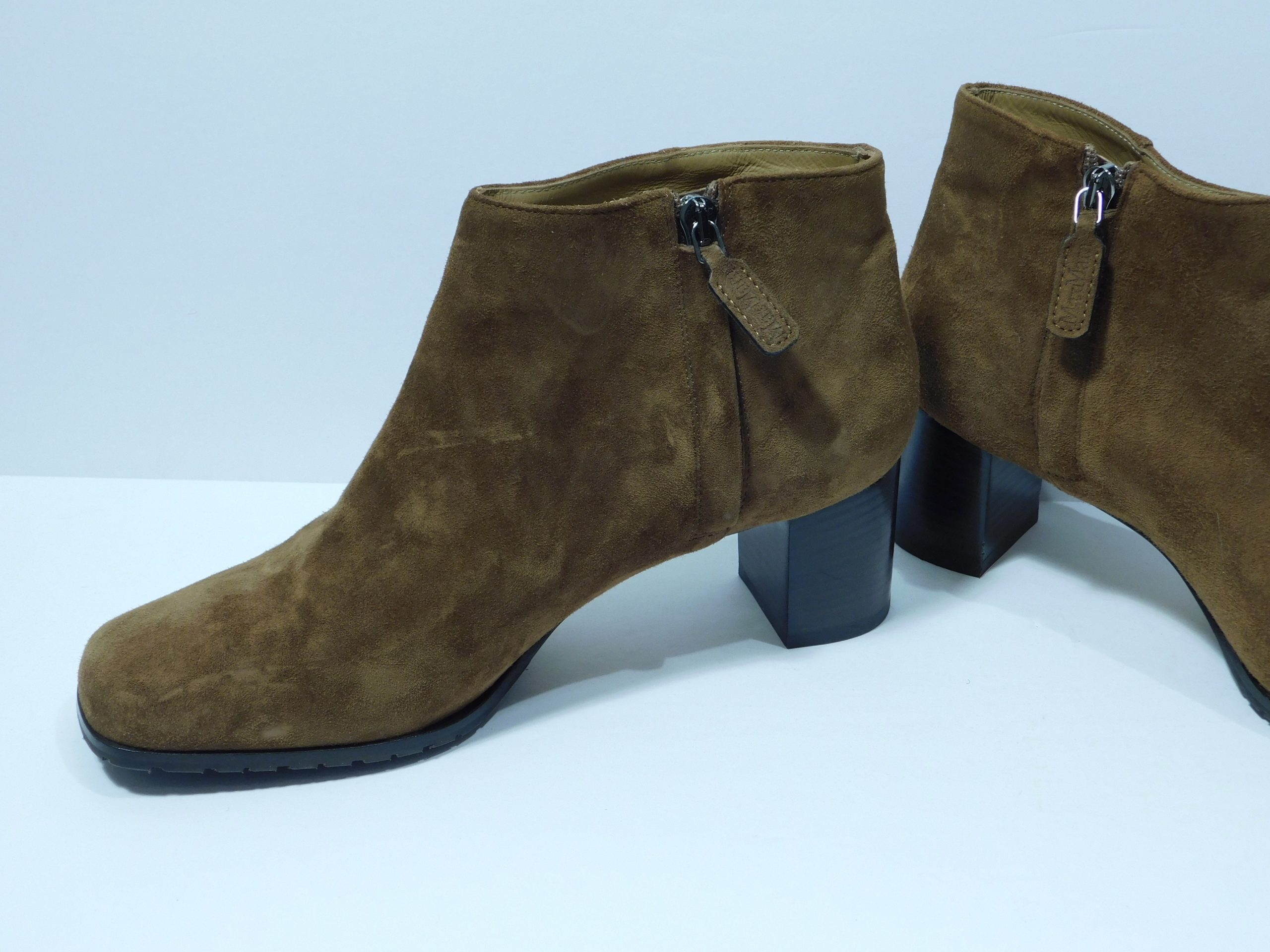 MAX MARA Brown Suede Round-Toe Block Heel Side Zip Booties Sz 39.5 ($695)