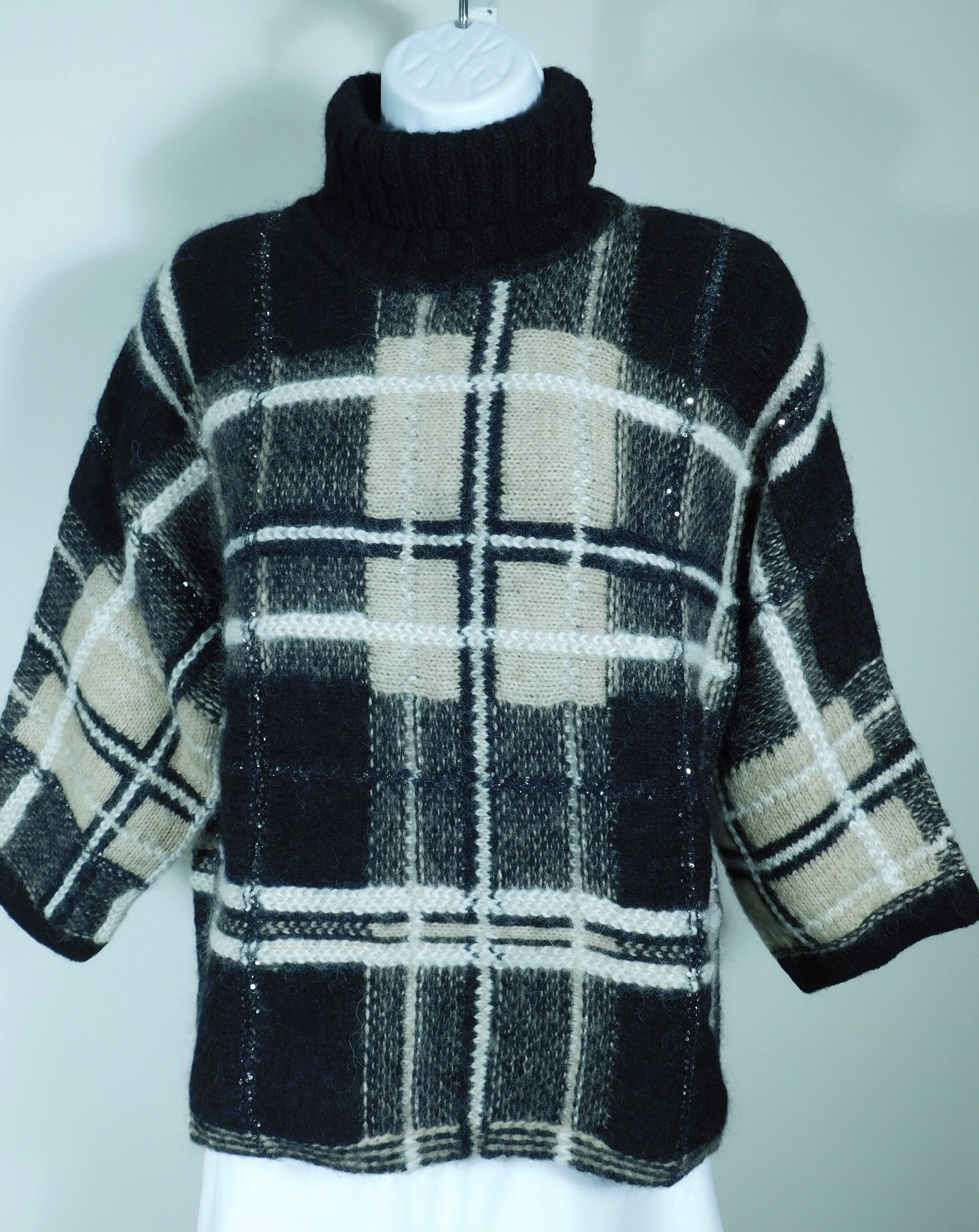 MAX MARA STUDIO Women’s Black Plaid Mohair Wool 3/4 Sleeve Turtleneck Sweater Sz S